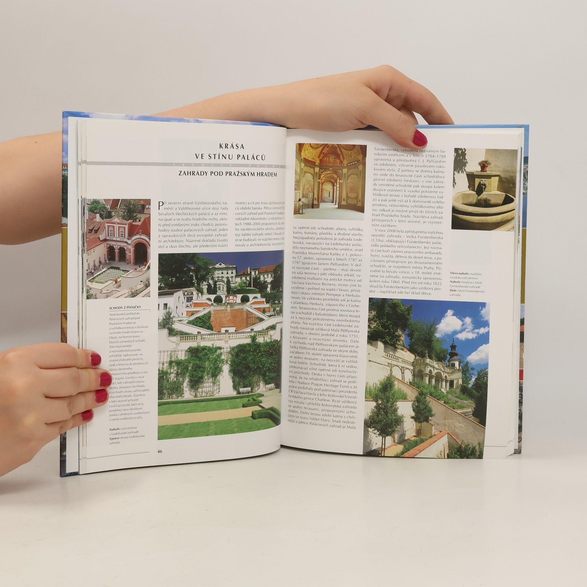 Exkluzivní obrazová publikace představuje nejkrásnější, nejvýznamnější a nejzajímavější architektonické, kulturní, historické i přírodní pozoruhodnosti Prahy. Je sestavena jako poznávací procházka: čtenáře zasvěceně provádí městem. První kroky vedou do srdce českého království, do korunovační komory Chrámu sv. Víta. Postupně objevujeme celé město - klenot české gotiky Pražský hrad a jeho Palácové zahrady, Královský letohrádek... Postupně poznáváme celé město, jeho paláce, kostely, kláštery a zajímavé měšťanské domy. Z dávné historie se přeneseme do minulého století; obdivujeme kubistické domy, další a další stavební skvosty své doby...