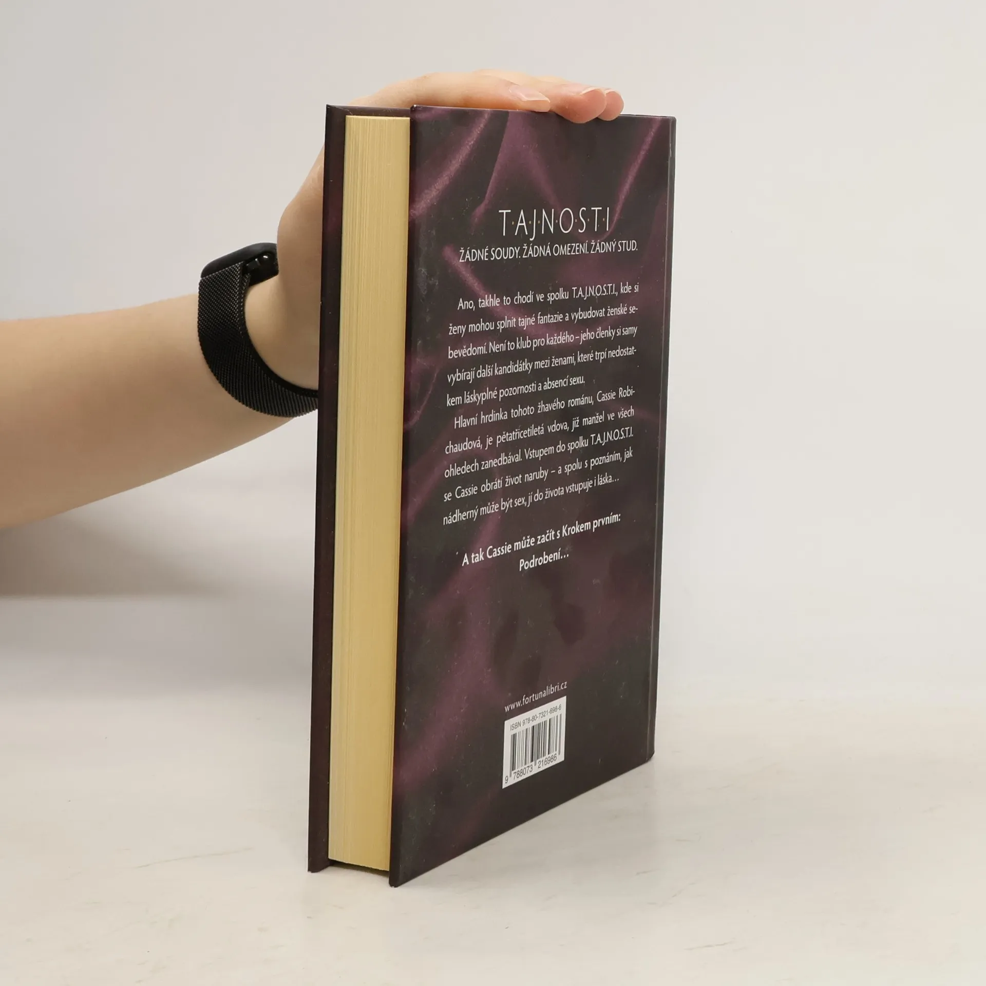 Žádné soudy. Žádná omezení. Žádný stud. Ano, takhle to chodí ve spolku T.A.J.N.O.S.T.I., kde si ženy mohou splnit tajné fantazie a vybudovat ženské sebevědomí. Není to klub pro každého – jeho členky si samy vybírají další kandidátky, mezi těmi, které trpí nedostatkem láskyplné pozornosti a absencí sexu. Hlavní hrdinka tohoto žhavého románu, Cassie Robichaudová, je pětatřicetiletá vdova, již manžel ve všech ohledech zanedbával. Vstupem do spolku T.A.J.N.O.S.T.I. se Cassie obrátí život naruby – spolu s poznáním, jak nádherný může být sex jí do života vstupuje i láska. A tak Cassie může začít s Krokem prvním: Podrobení…