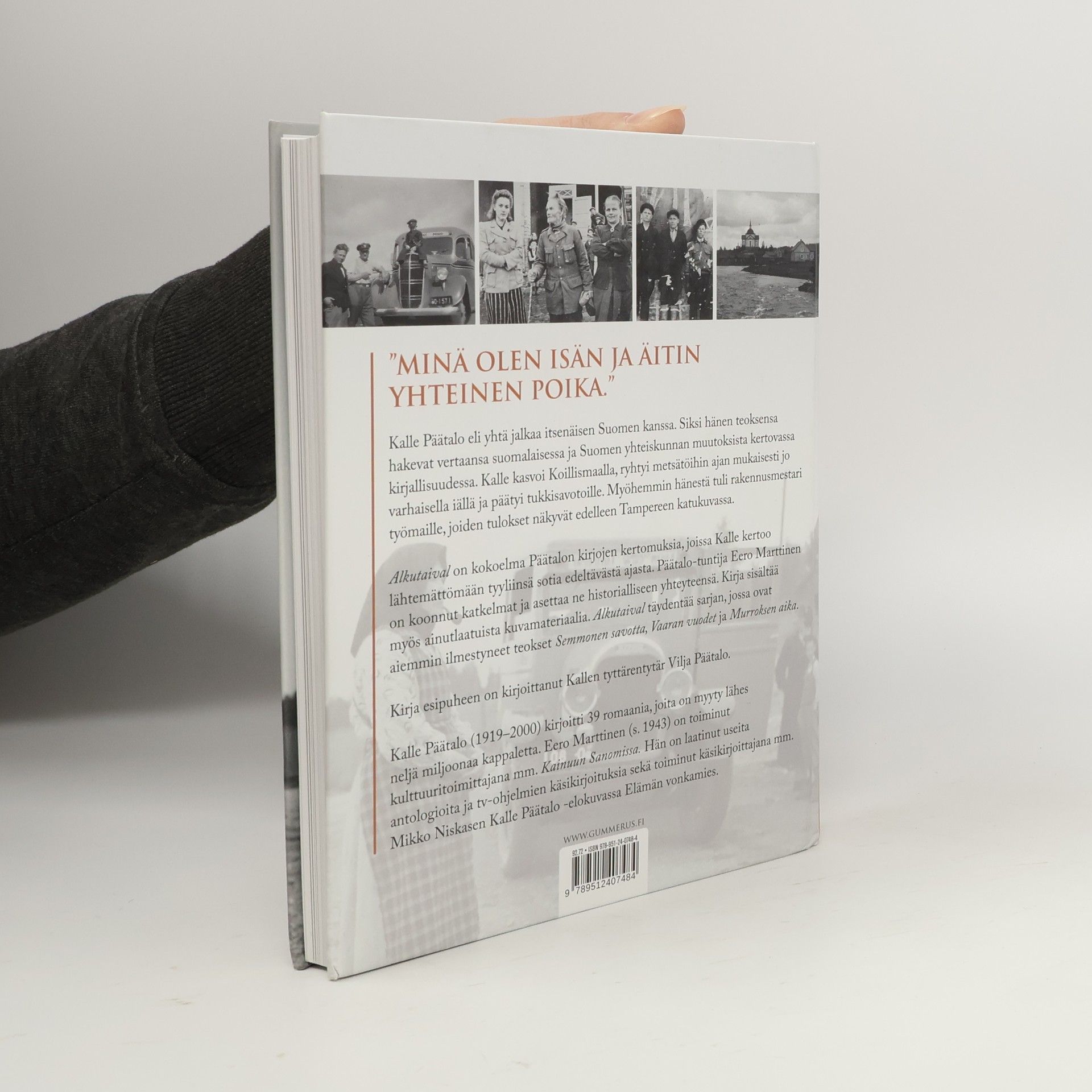 Kalle Päätalo eli yhtä jalkaa itsenäisen Suomen kanssa. Siksi hänen teoksensa hakevat vertaansa suomalaisten ja Suomen yhteiskunnan muutoksista kertovassa kirjallisuudessa. Kalle kasvoi Koillismaalla, ryhtyi metsätöihin ajan mukaisesti jo varhaisella iällä, päättyi tukkisavotoille. Myöhemmin hänestä tuli rakennusmestari työmaille, joiden tulokset näkyvät edelleen Tampereen katukuvassa.Alkutaival on kokoelma Päätalon kirjojen kertomuksia, joissa Kalle kertoo lähetämättömään tyyliinsä sotia edeltävästä ajasta ja ihmisistä taroinoissa, jotka nyt voi nähdä agraari-Suomen idyllisenä mielenmaisemana. Päätalo-tuntija Eero Marttinen on koonnut katkelmat ja asettaa ne historialliseen yhteyteensä.Alkutaival täydentää kirjojen Semmonen savotta, Vaaran vuodet ja Murroksen aika aloittaman sarjan.