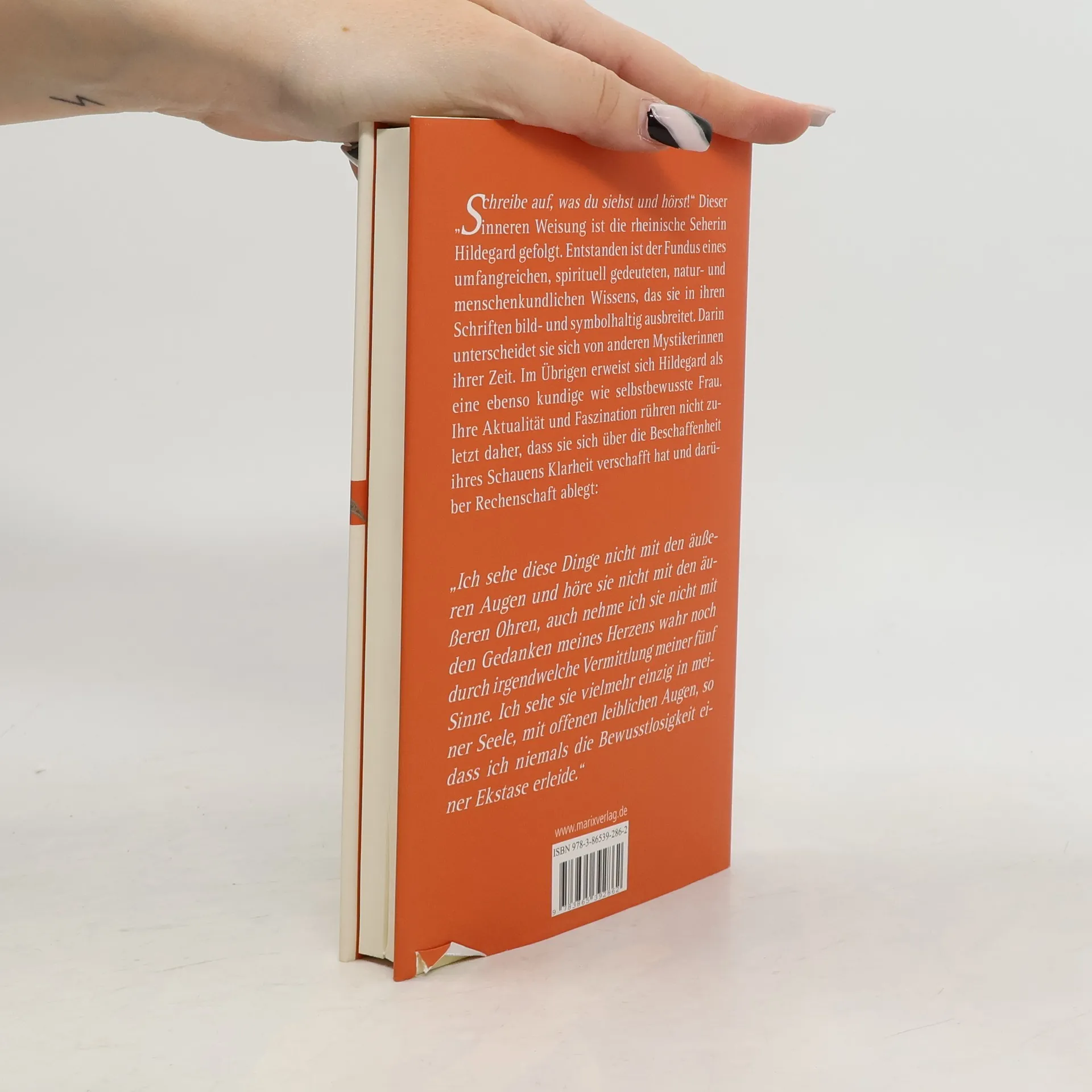 Als rheinische Seherin, als heilkundige Vertreterin einer den materiellen wie spirituellen Kosmos einbeziehenden Mystik hat sie einen immer noch wachsenden Kreis von Verehrerinnen und Freunden gewonnen. In ihrem ersten großen, der geisten Schau entsprungenen Werk Scivias – Wisse die Wege bezeugt sie dies. Ein Teil der Texte werden hier kommentiert geboten. Hinzu treten ausgewählte Briefe, in denen Hildegard ihr inneres Erleben schildert. Darüber hinaus ist es erstaunlich, ja bewundernswert, mit welchem Selbstbewusstsein sie als Ordensfrau des hohen Mittelalters Vorgesetzten, selbst Bischöfen und Päpsten, auch Kaisern wie Friedrich Barbarossa belehrend, nicht selten auch mahnend entgegentritt.