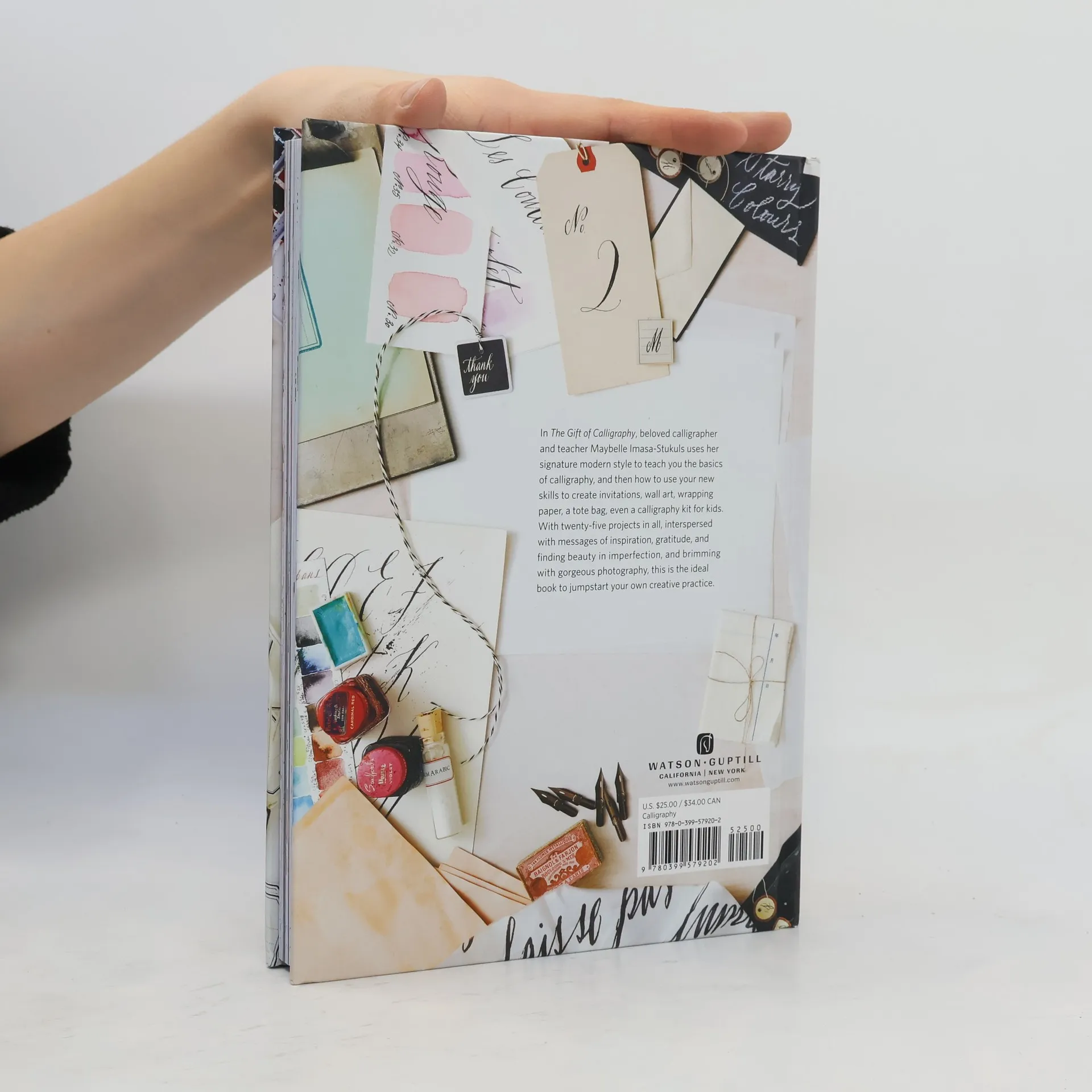 An easy-to-follow guide to learning the art of calligraphy, with 25 gorgeously photographed projects that use calligraphy to make beautiful gifts and home décor. Calligraphy and hand lettering have surged in popularity as people rediscover traditional handicrafts as a creative outlet and way to relax. Unlike other hand lettering books, The Gift of Calligraphy shows you how to use your calligraphy skills to create invitations, wall art, wrapping paper, a tote bag, even a calligraphy kit for kids. Maybelle Imasa-Stukuls, calligraphy teacher and author of Belle Calligraphy, brings her signature modern style to this traditional craft. The first quarter of the book provides a primer for creating a simple alphabet and how to find your own personal style of lettering, followed by wonderful projects that will delight your family, impress your friends, and beautify your home, all accompanied by clear step-by-step photography and inspiring shots of the finished pieces.