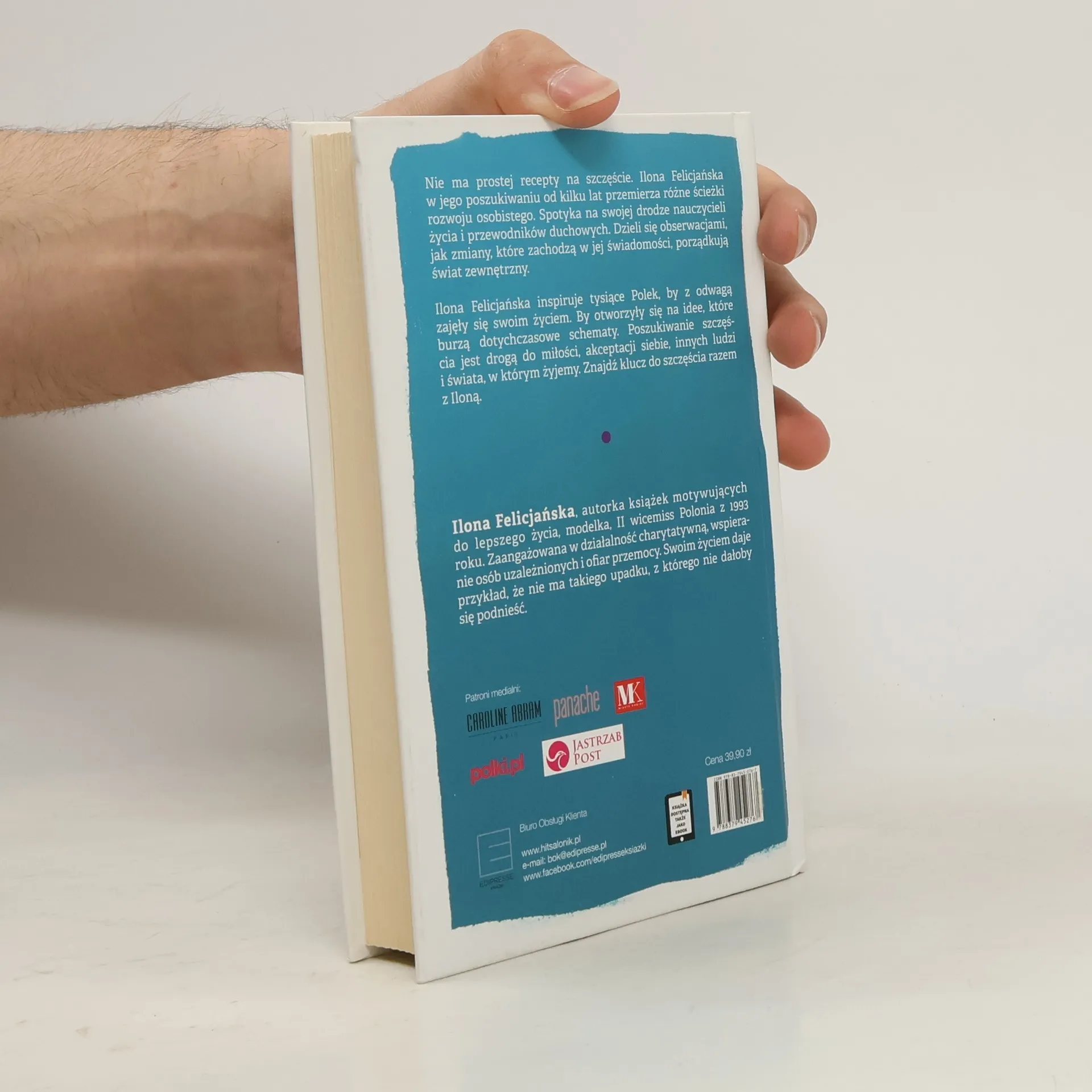 Napisałam, że jestem szczęśliwa, bo budzę się rano z uśmiechem, żyję tu i teraz, słucham emocji i jestem sobą. To oznacza, że każdą chwilę pr�buję zauważyć i wykorzystać w pełni.Pielęgnuję w sobie sztukę pozytywnego myślenia, daję sobie prawo do przeżywania emocji i przede wszystkim akceptuję siebie i życie, kt�re nie jest ani dobre, ani złe, po prostu jest takie, jakie jest.Pisząc te rzeczy nie zastanawiałam się nad definicją szczęścia. Wiedziałam jednak, że szczęście nie jest dane raz na zawsze, trzeba o nie dbać, pielęgnować ten stan. Ale najpierw trzeba je odnaleźć. I o poszukiwaniu szczęścia jest ta książka.