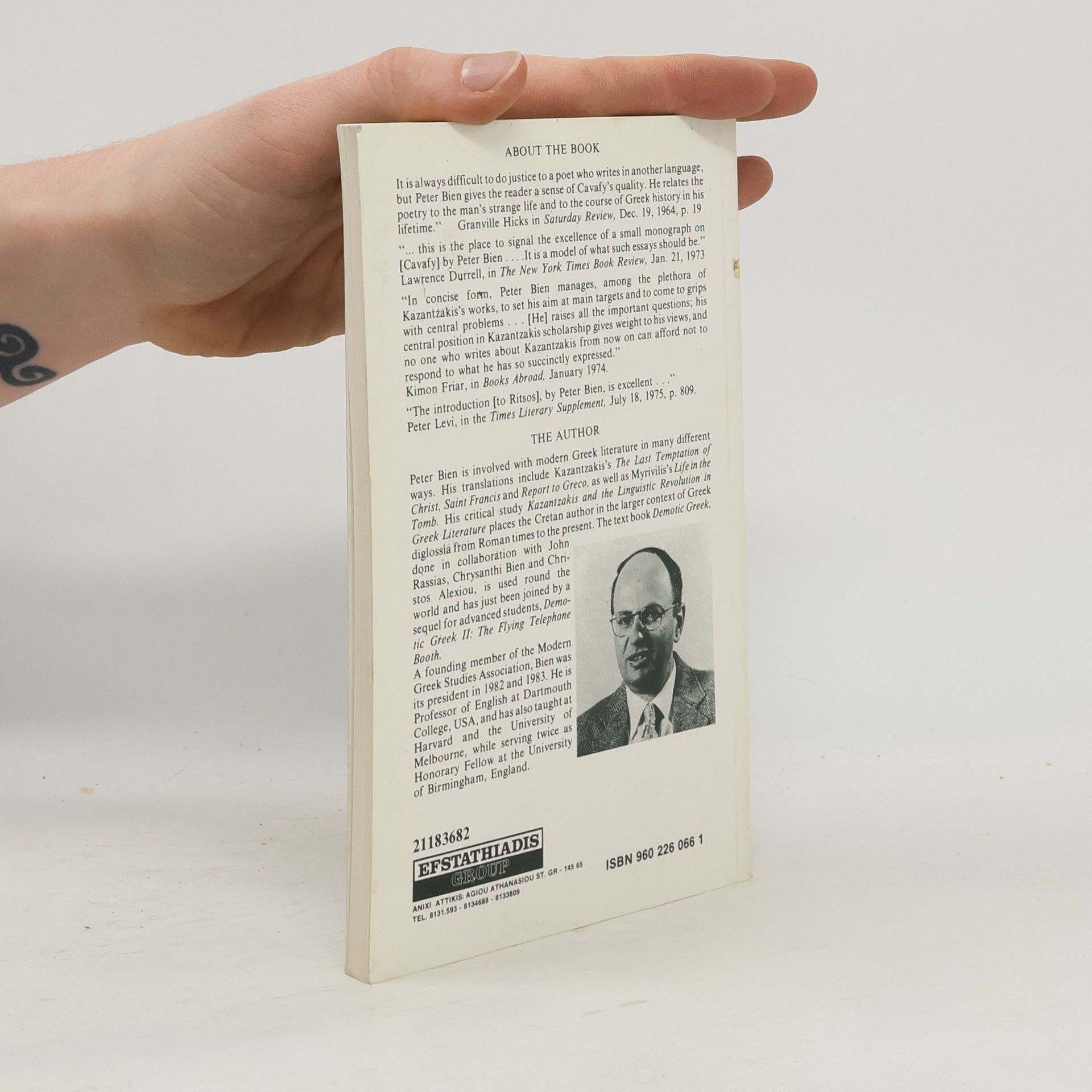 Three Generations of Greek Writers. Cavafy, Kazantzakis, Ritsos, Peter Bien