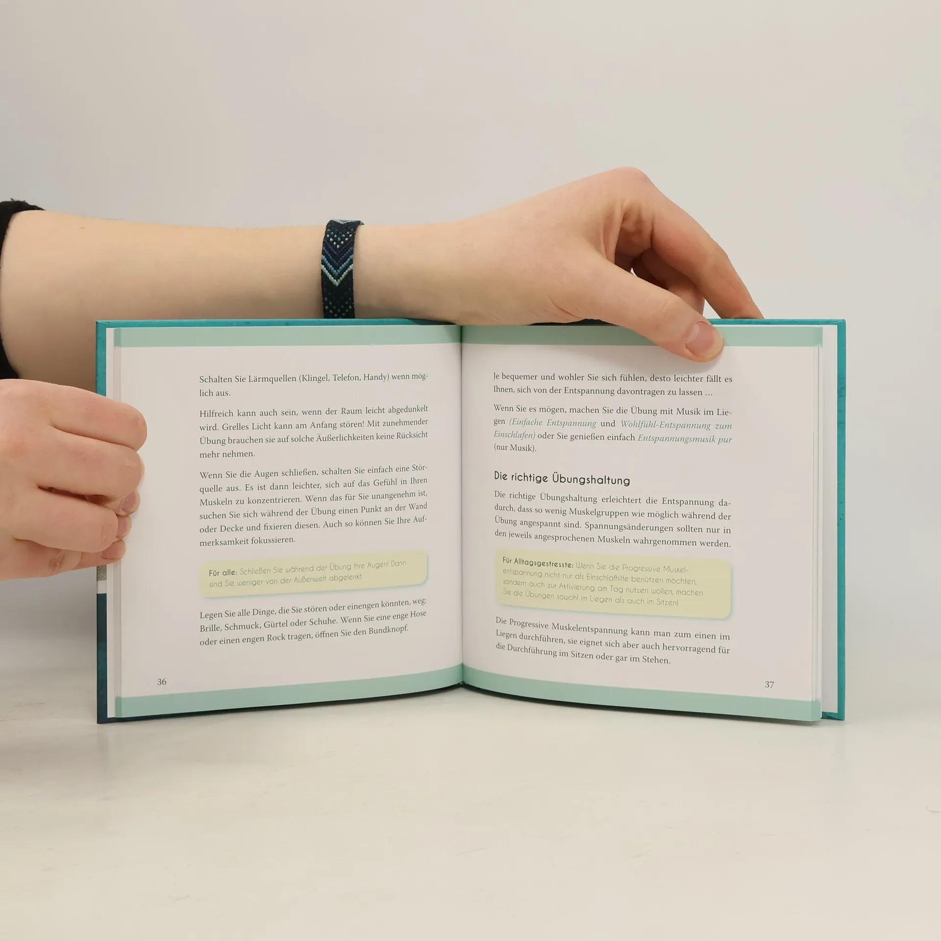 Stress kann mit Entspannungstechniken frühzeitig entgegengewirkt werden. Das motivierende Buch und die Anleitungen auf CD sind ideal für die einfache Nutzung der Progressiven Muskelentspannung nach Jacobsen. Die Entspannungstechnik ist unkompliziert und wirkungsvoll. Das Anspannen und Entspannen bestimmter Muskelgruppen wirkt insgesamt auf den Muskeltonus entspannend und über das vegetative Nervensystem beruhigend. Die Technik muss nicht erlernt werden, sondern wird mittels CD angeleitet, wodurch eine einfache Vertiefung körperlicher und seelischer Entspannung sofort ermöglicht wird. Hinzu kommt die Wirkung der mit Musik unterlegten Übungsvarianten, die mittels Aktivierung der rechten Gehirnhälfte die emotionale Entspannung fördern.