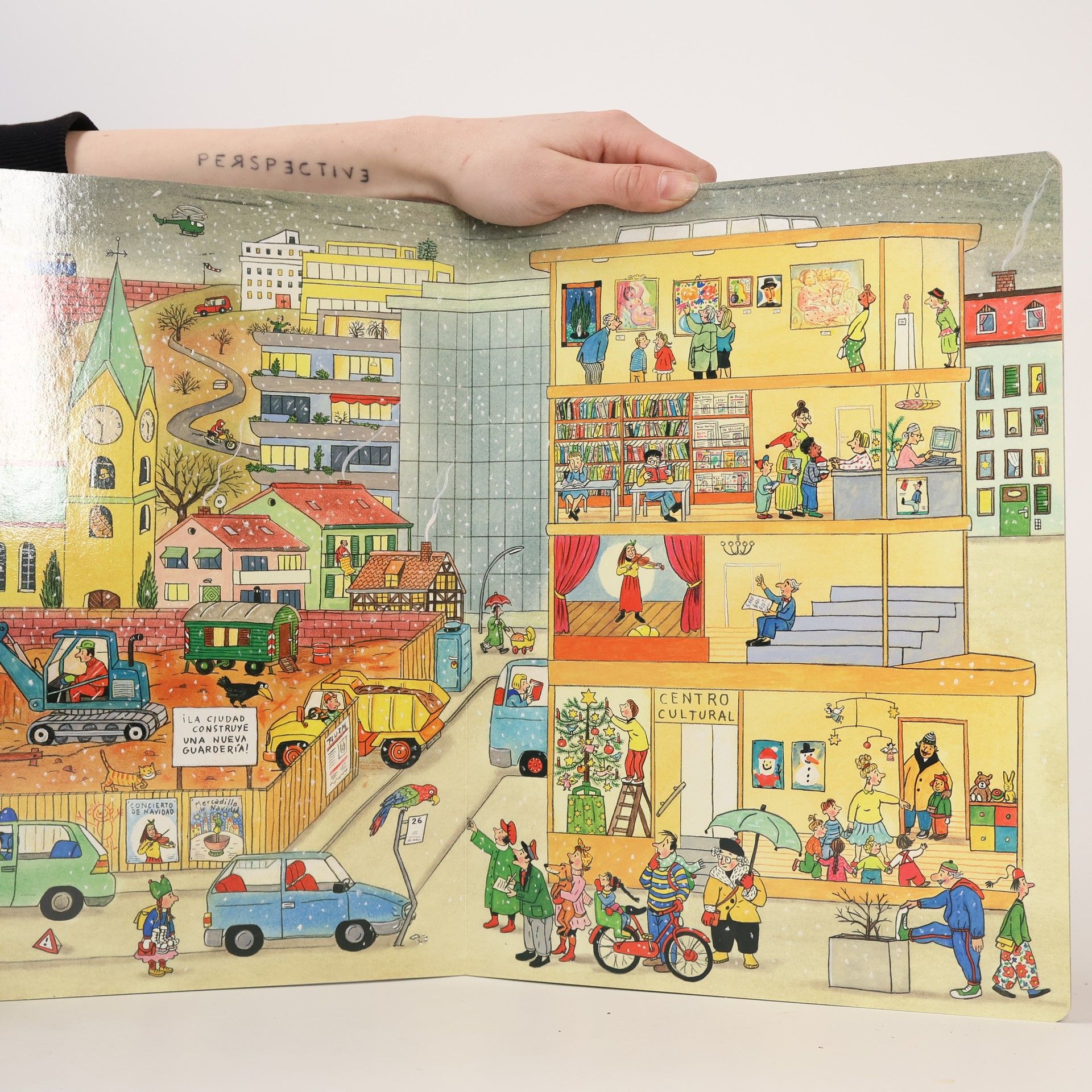 En este libro podrás ver una ciudad y sus alrededores, en los que además de casas y calles, hay muchas cosas más. Al mismo tiempo, podrás seguir con los dibujos las pequeñas aventuras que les suceden a las personas y a los animales en un día de invierno: Andrea vuelve a perder el autobús, el loro de Lena se va de excursión y, para colmo, aparece un monedero de color rojo y sin dueño...