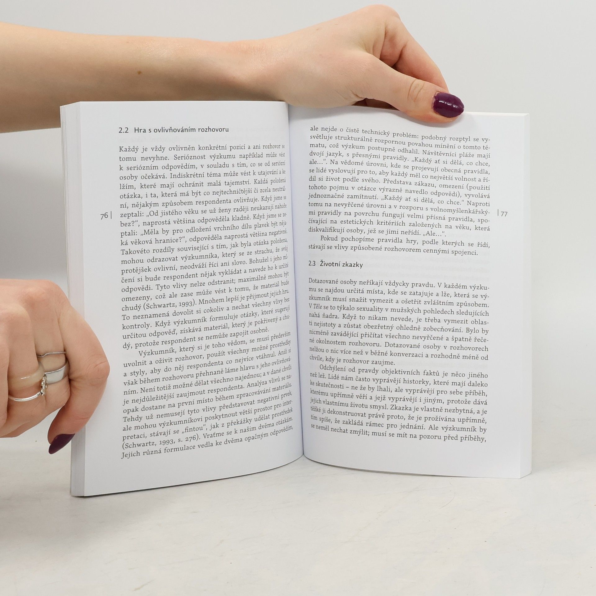 Kniha provádí čtenáře všemi fázemi kvalitativního výzkumu založeného na metodě chápajícího rozhovoru - od přípravy rozhovorů k sepsání závěrečné zprávy. Autor představuje metodu, ke které došel na základě svých bohatých zkušeností s terénním výzkumem. Dělá to nekonvenčně otevřeným způsobem a jako ilustraci používá dva své výzkumy. Vlastní postupy představuje jako možnosti a věc osobní volby, nikoliv jako rigidní pravidla. To však neznamená, že lze chápající rozhovor používat nahodile jako pouhou techniku sběru dat. Naopak - metoda má svoje pevné zakotvení v určitých sociologických přístupech a má být východiskem pro hypotézy a další teoretickou práci. Ostatně otázka, do jaké míry lze vytvářet teorii na základě terénní práce, je jednou z těch, které zde autor klade.