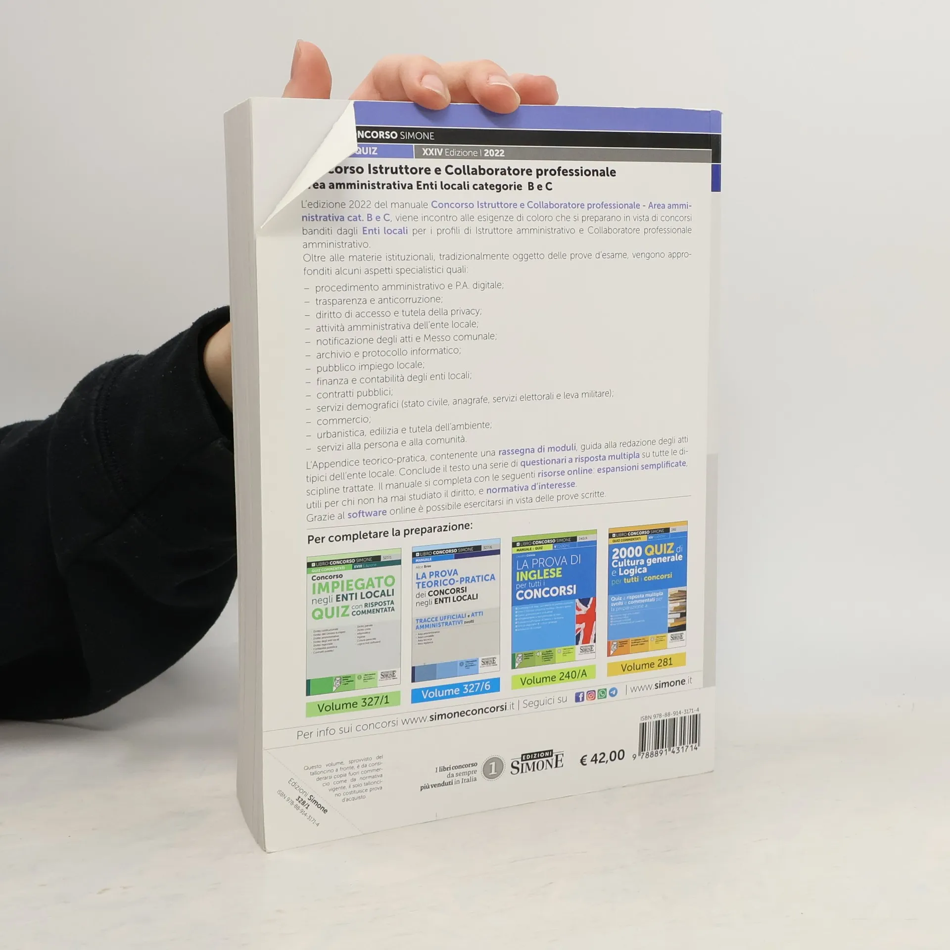 L’edizione 2022 del manuale Concorso Istruttore amministrativo e Collaboratore professionale viene incontro alle esigenze di coloro che si preparano ad affrontare concorsi banditi dagli enti locali per le categorie B e C dell’Area amministrativa. Oltre alle materie giuridiche di base (diritto costituzionale, diritto amministrativo, diritto regionale, ordinamento istituzionale, finanziario e contabile degli enti locali), vengono approfonditi argomenti sempre più spesso richiesti nei bandi: procedimento amministrativo, diritto di accesso e tutela della privacy, trasparenza e anticorruzione, pubblico impiego locale, contratti pubblici, reati contro la P.A. L’Appendice teorico-pratica, che guida alla redazione degli atti tipici degli enti locali in vista di eventuali prove pratiche, contiene anche una rassegna di moduli. Il manuale Concorso Istruttore amministrativo si conclude con una serie di quesiti a risposta multipla, inerenti le singole materie, per esercitarsi e verificare il grado di preparazione raggiunto. Utilizzando l’apposito QR Code (rinvenibile nell’ultima pagina) sono disponibili ulteriori batterie di quiz ed altre risorse, tra cui Espansioni semplificate che riprendono i concetti fondamentali e le parole chiave di ogni disciplina trattata, utili per coloro che non hanno una formazione giuridica. Tutti i libri per l’area amministrativa enti locali.