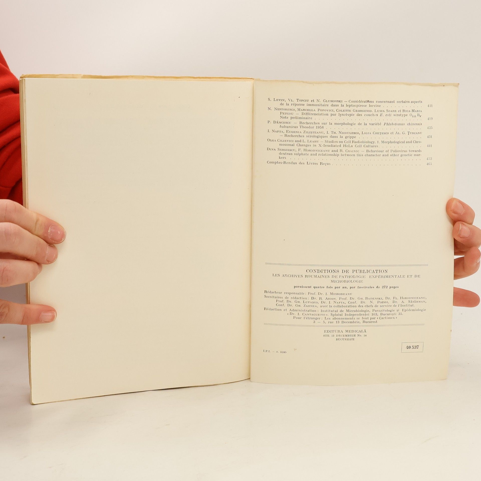 Archives Roumaines de Pathologie Expérimentale et de Microbiologie, Autores varios