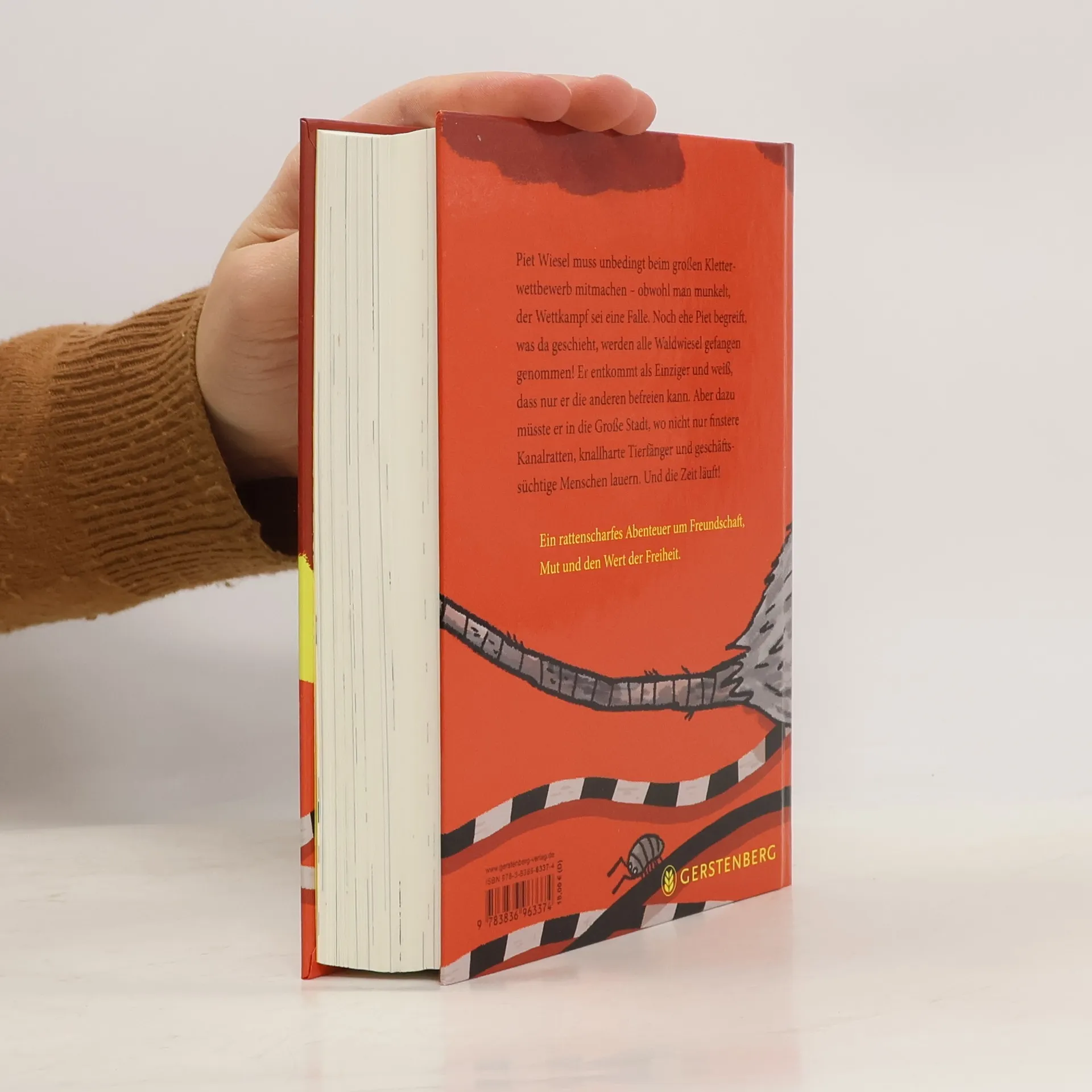 Piet Wiesel muss unbedingt beim großen Kletterwettbewerb mitmachen – obwohl man munkelt, der Wettkampf sei eine Falle. Noch ehe Piet begreift, was da geschieht, werden alle Waldwiesel gefangen genommen! Er entkommt als einziger und weiß, dass nur er die anderen befreien kann. Aber dazu müsste er in die Große Stadt, wo nicht nur düstere Kanalratten, knallharte Tierfänger und geschäftssüchtige Menschen lauern. Und die Zeit läuft! Ein rattenscharfes Abenteuer um Freundschaft, Mut und den Wert der Freiheit.