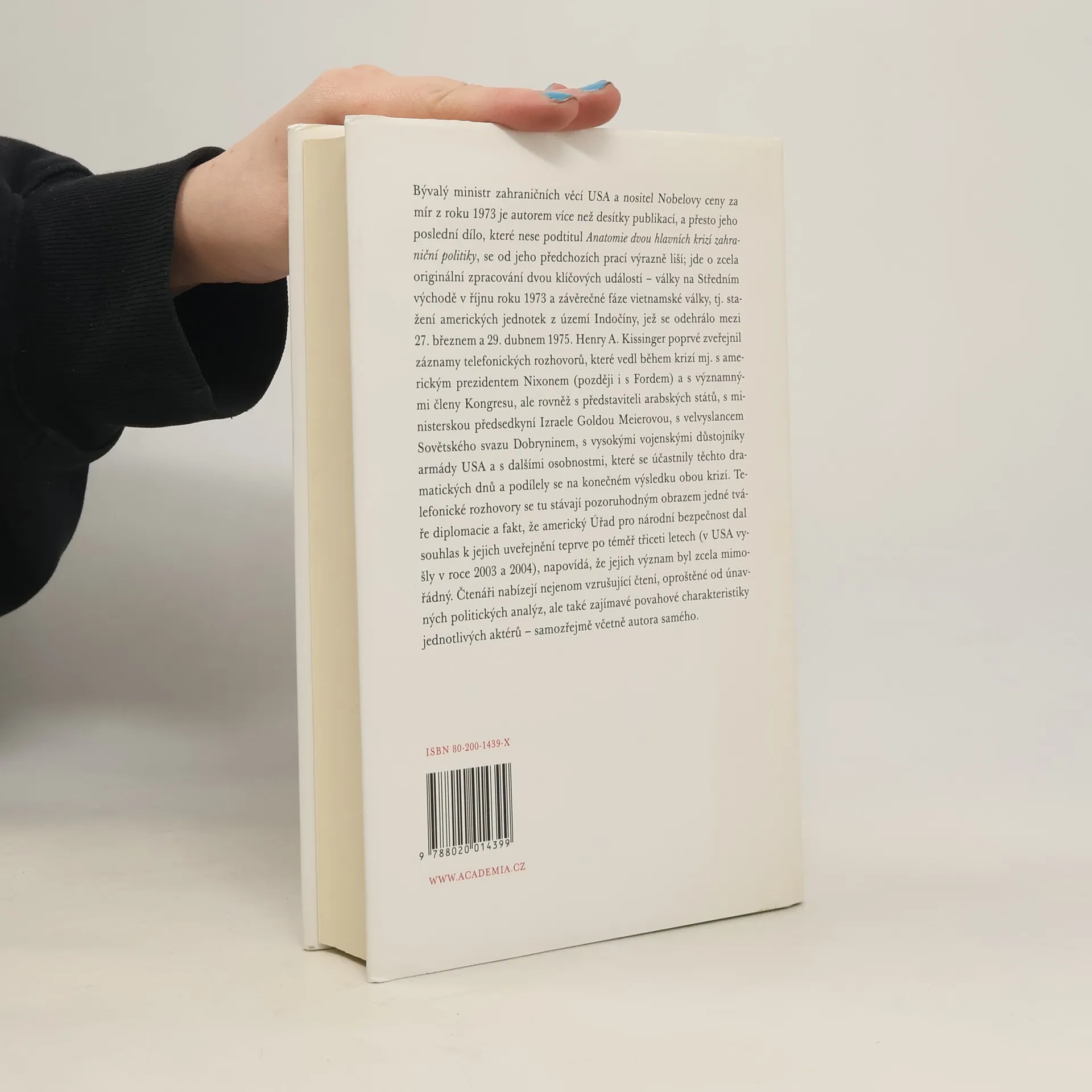 Jde o zcela originální zpracování dvou klíčových událostí - války na Středním východě v říjnu roku 1973 a závěrečné fáze vietnamské války, tj. stažení amerických jednotek z území Indočíny, jež se odehrálo mezi 27. březnem a 29. dubnem 1975. Henry Kissinger poprvé zveřejnil záznamy telefonických rozhovorů, které vedl během krizí mj. s americkým prezidentem Nixonem (později i Fordem) a s významnými členy kongresu, ale rovněž s představiteli arabských států , s ministerskou předsedkyní Izraele Goldou Meierovou, s velvyslancem Sovětského svazu Dobryninem, s vysokými vojenskými důstojníky armády USA a dalšími osobnostmi.