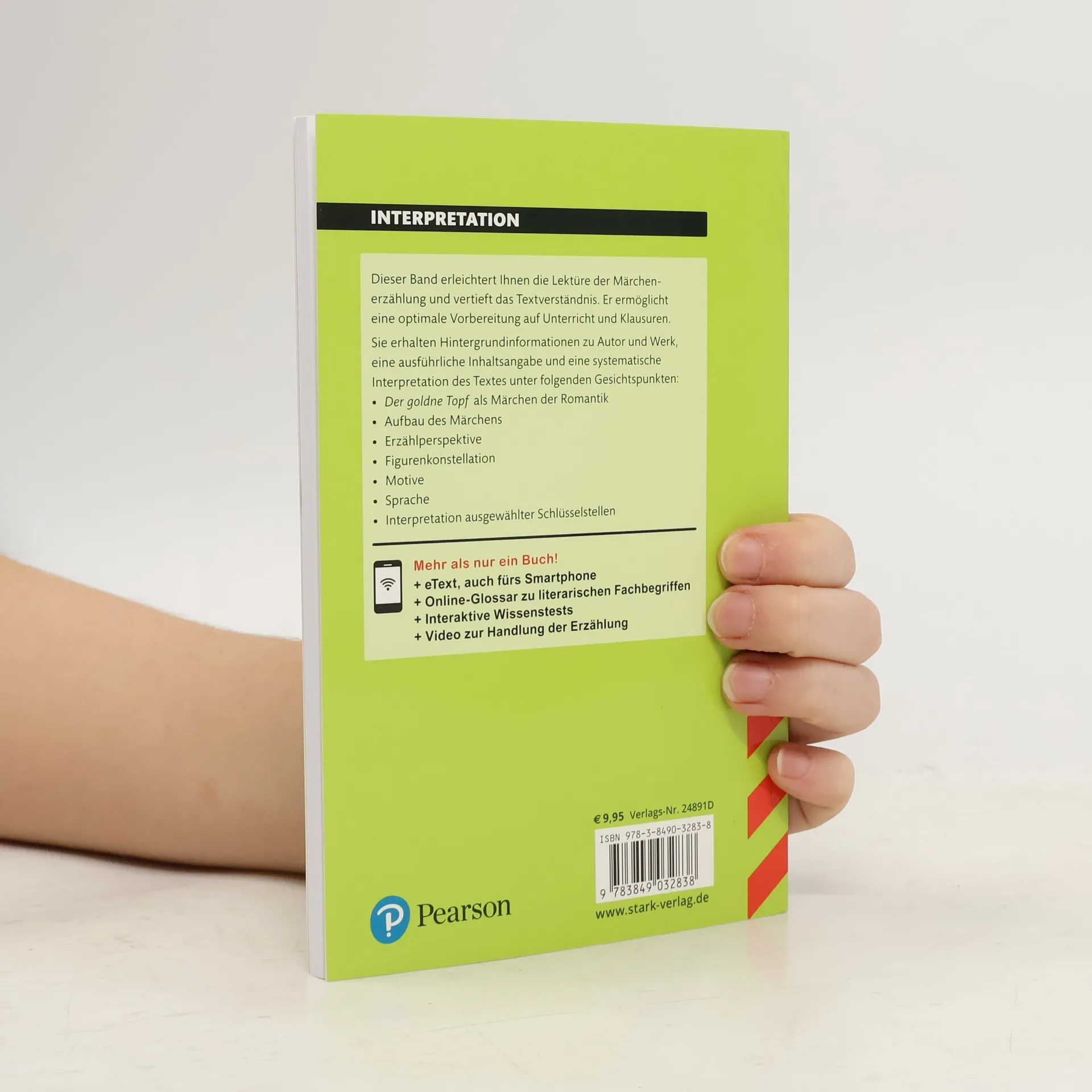 Interpretationen Deutsch – E. T. A Hoffmann: Der goldne Topf Dieser Band erleichtert Ihnen die Lektüre der Märchenerzählung und vertieft das Textverständnis. Die perfekte Vorbereitung auf Unterricht, Klausuren und das Abitur ! Die Interpretationshilfe enthält: Hintergrundinformationen zur Biografie des Autors und zur Entstehungsgeschichte des Textes eine ausführliche Inhaltsangabe eine systematische Interpretation des Textes unter folgenden Gesichtspunkten: Märchen der Romantik, Aufbau, Erzählperspektive, Figurenkonstellation, Motive, Sprache Interpretation von Schlüsselstellen , die auch in Klausuren und im Abitur vorkommen könnten erläuternde Schaubilder zu wichtigen Aspekten Glossar zu Motiven der Romantik Mehr als nur ein Buch Inkl. eText , auch fürs Smartphone Online-Glossar zu literarischen Fachbegriffen Interaktives Wissensquiz zur Überprüfung des eigenen Wissens Video zum Inhalt