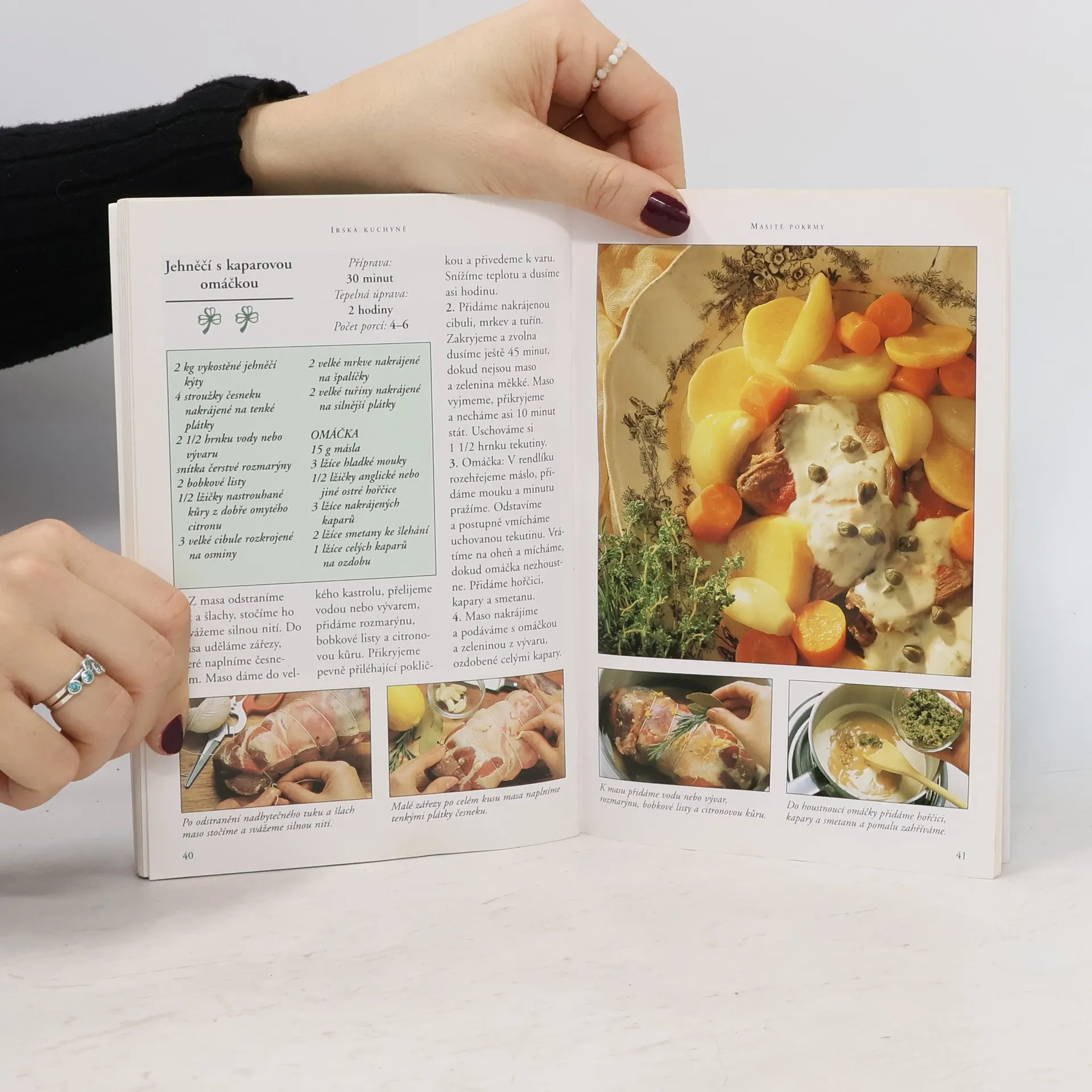 Irská kuchyně je poměrně prostá, nepoužívá exotické suroviny, vaří se z toho, co zem dá. Hlavní potravinou jsou brambory a používají se všude, do chleba i koláčů, k snídani i k večeři. Často se také připravuje drůbež, hovězí a především jehněčí maso. Irsko je známé svými dušenými pokrmy, jako je dušené jehněčí nebo hovězí na pivě. V této kuchařce najdete průřez těmi nejlepšími jídly a tradičními pokrmy irského venkova.