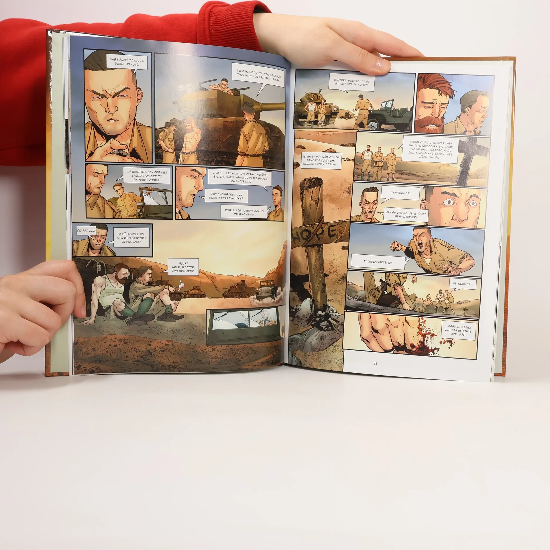 Zlomová bitva na severoafrické frontě druhé světové války z pohledu posádky britského tanku Crusader. Pouštní oblast mezi Libyí a Egyptem skýtá nádherné scenérie, ale život je zde neobyčejně tvrdý. A co teprve, když zuří válka. Tento komiks není jen příběhem bitvy, v níž se střetly německé a italské tanky vedené „Pouštní liškou“ Erwinem Rommelem s Brity a jejich spojenci pod velením Bernarda „Montyho“ Montgomeryho, ale i silným příběhem o mužích, kteří se ocitli v pekle zvaném El Alamein.