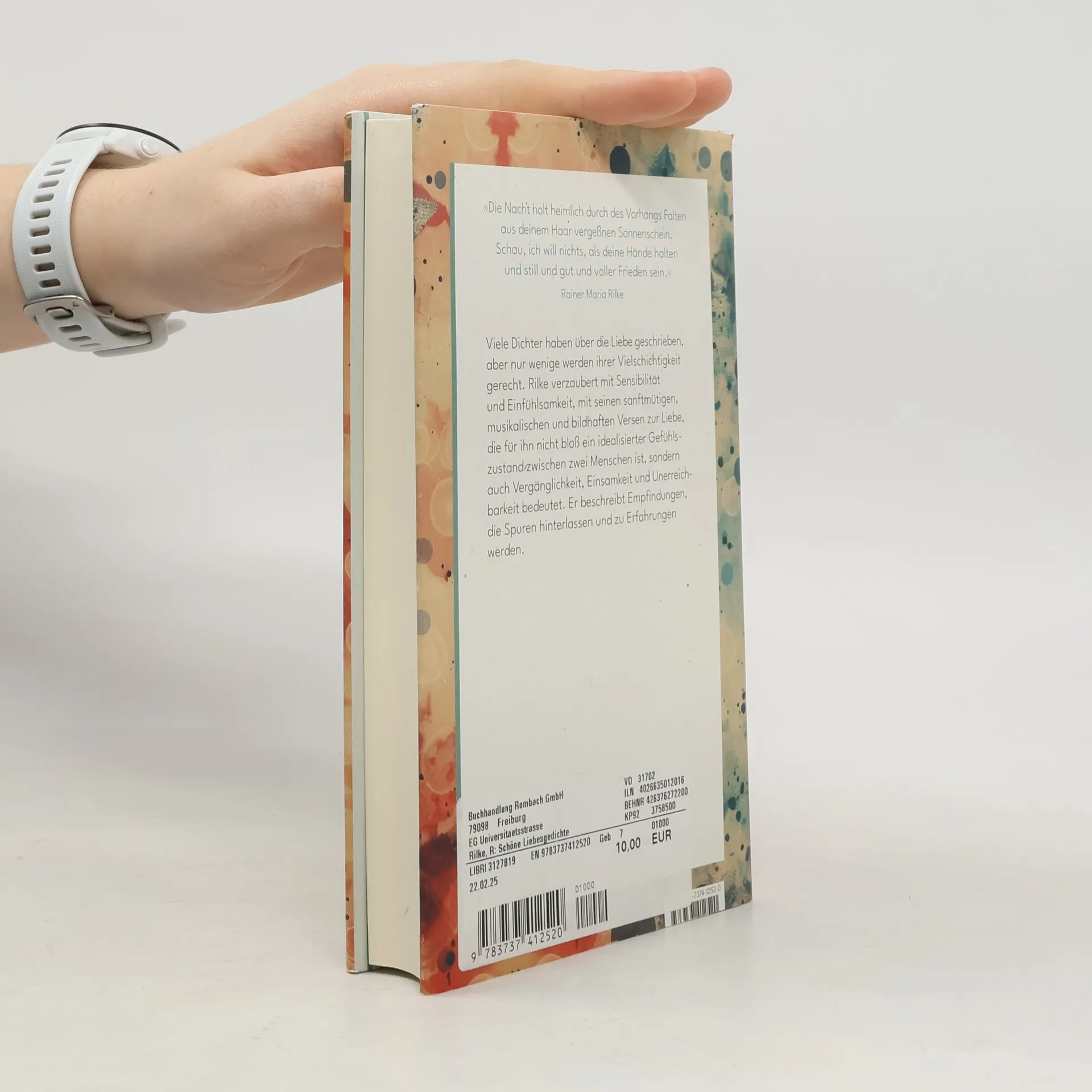 Viele Dichter haben über die Liebe geschrieben, aber nur wenige werden ihrer Vielschichtigkeit gerecht. Rilke verzaubert mit Sensibilität und Einfühlsamkeit, mit seinen sanftmütigen, musikalischen und bildhaften Versen zur Liebe, die für ihn nicht bloß ein idealisierter Gefühlszustand zwischen zwei Menschen ist, sondern auch Vergänglichkeit, Einsamkeit und Unerreichbarkeit bedeutet. Er beschreibt Empfindungen, die Spuren hinterlassen und zu Erfahrungen werden.
