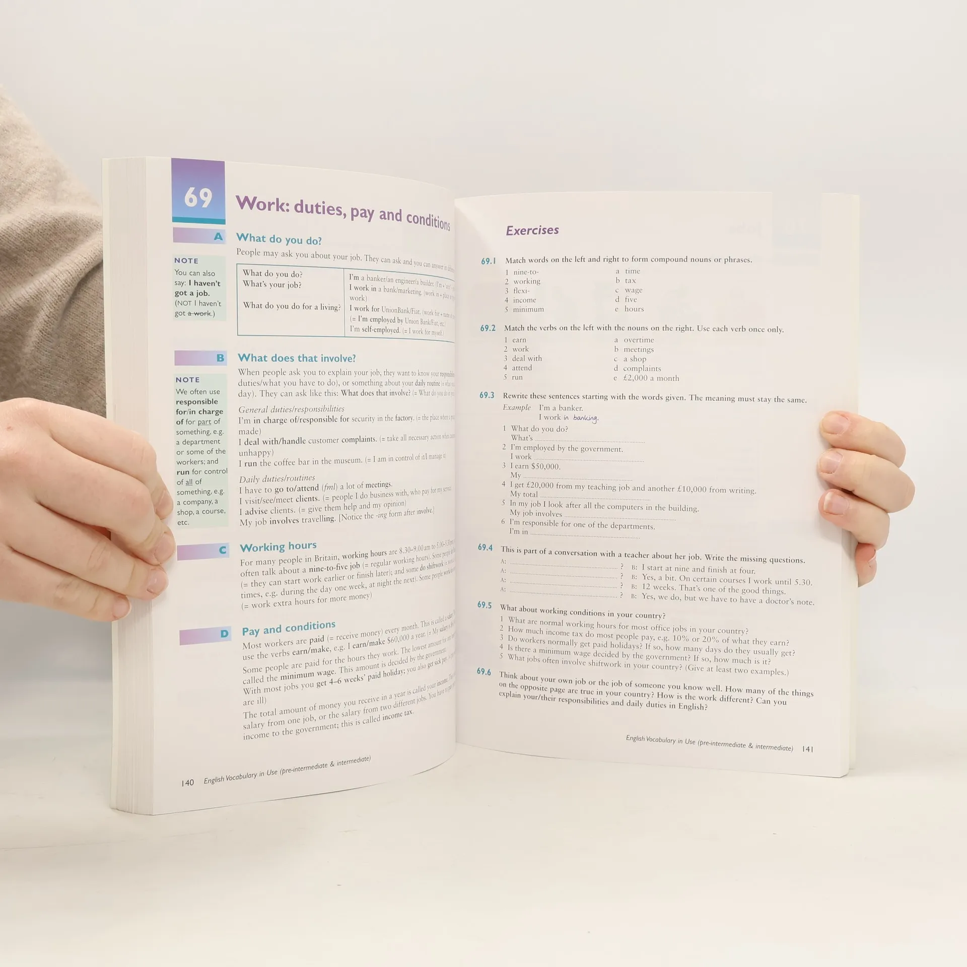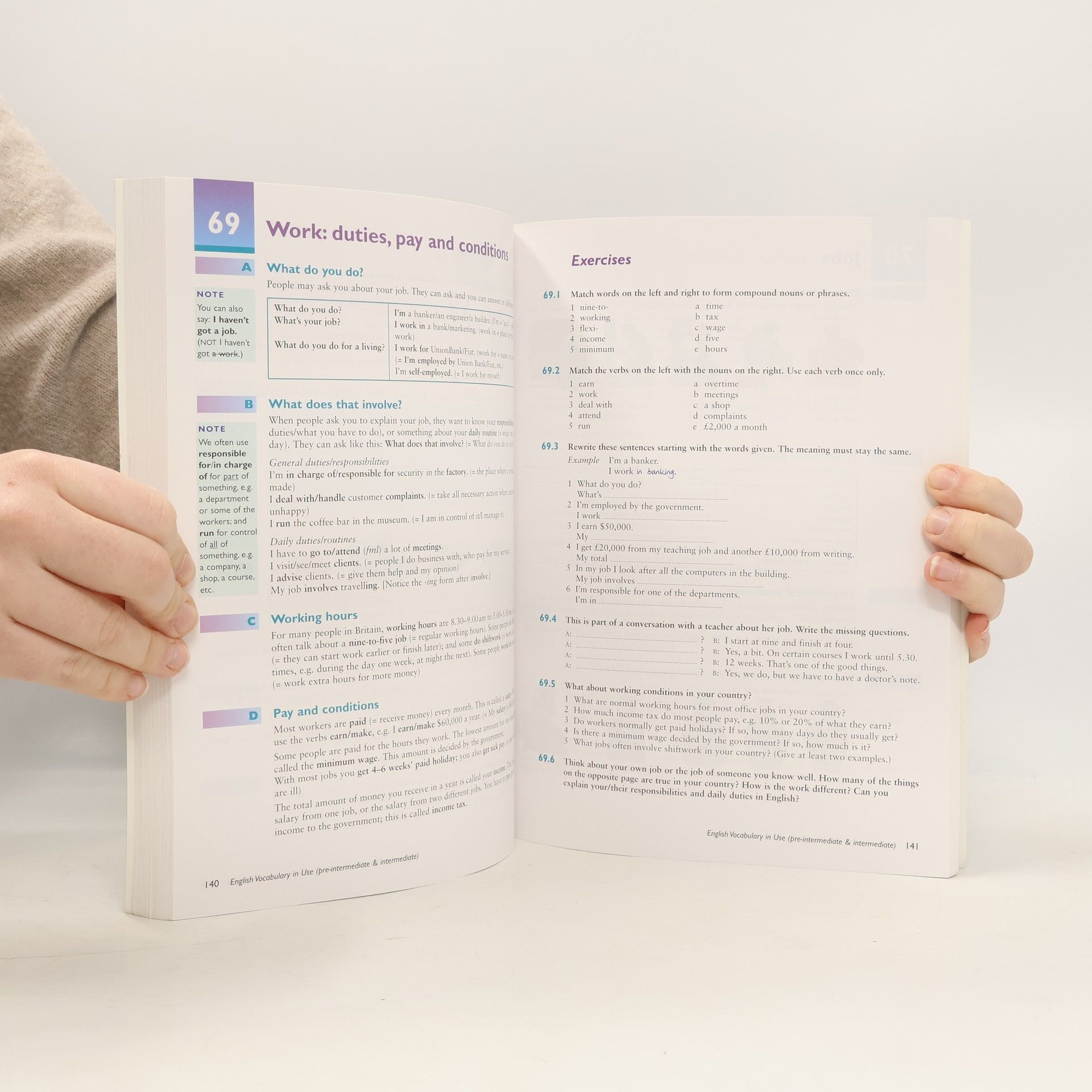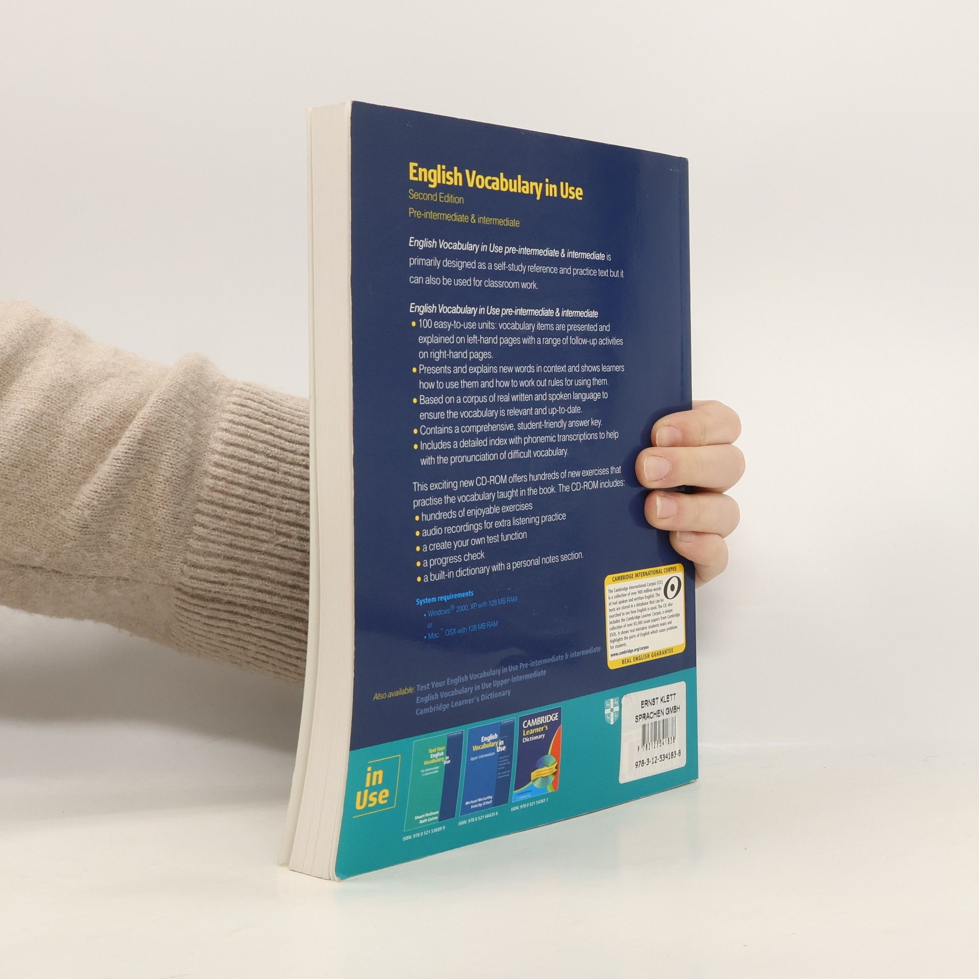 English Vocabulary in Use is a self-study and classroom text for vocabulary development. The books format presents new vocabulary on the left-hand pages and practice exercises on the facing right-hand pages. There are currently 4 levels of English Vocabulary in Use from Elementary to Advanced.