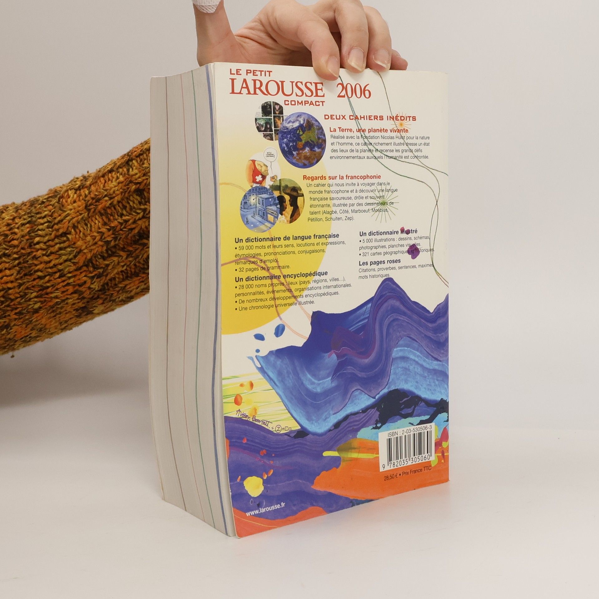 Réunit 87.000 articles dont 59.000 noms communs, un cahier sur les mots nouveaux, 28.000 noms propres, 3 cahiers de planches visuelles et une chronologie universelle, ainsi que les pages roses de dictons et de grammaire.