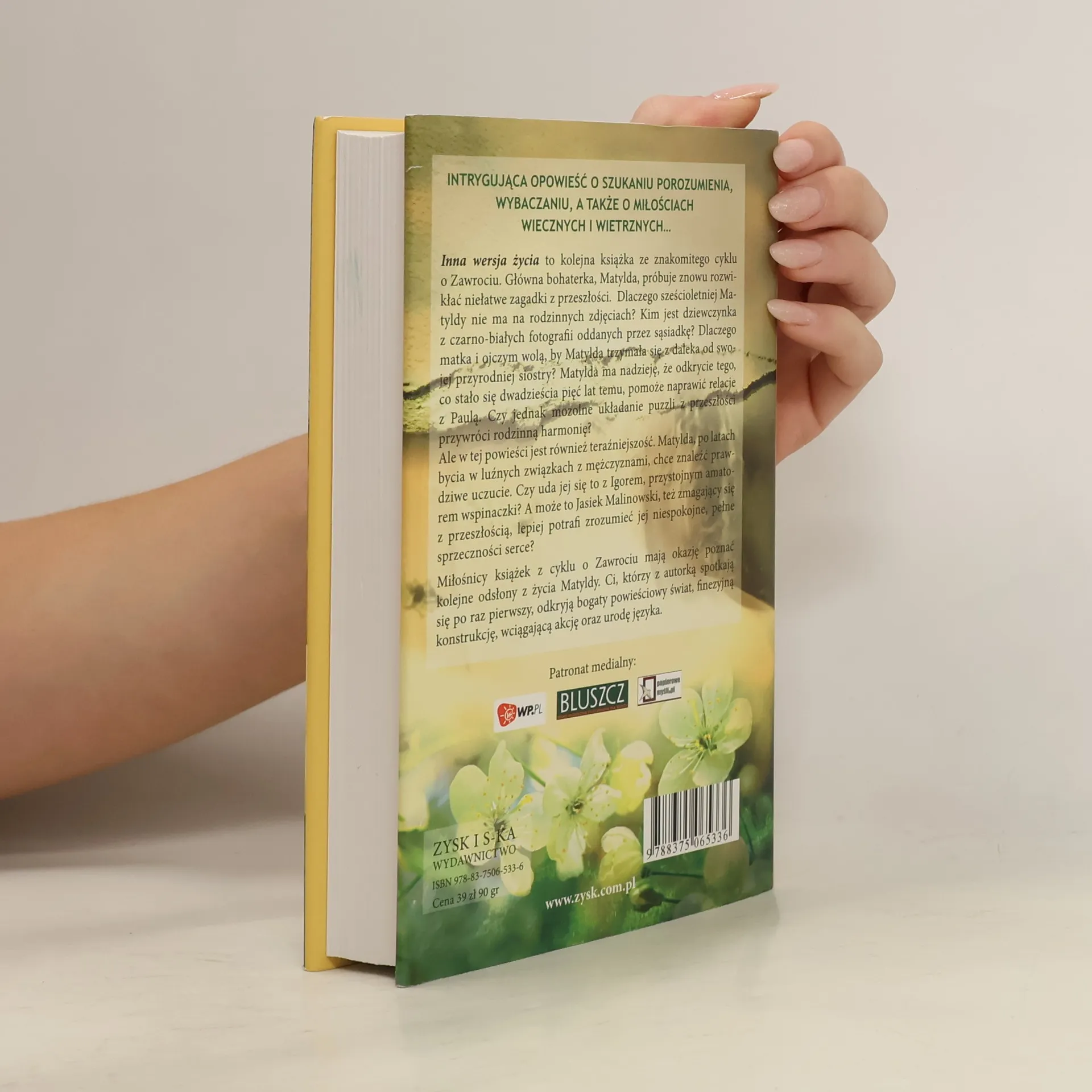 'Inna wersja życia' to kolejna książka ze znakomitego cyklu o Zawrociu. Główna bohaterka, Matylda, jeszcze raz musi zmierzyć się z przeszłością. Dlaczego sześcioletniej Matyldy nie ma na rodzinnych zdjęciach? Kim jest dziewczynka z czarno-białych fotografii oddanych przez sąsiadkę? Dlaczego matka i ojczym wolą, by Matylda trzymała się z daleka od swojej młodszej siostry? Matylda ma nadzieję, że odkrycie tego, co stało się dwadzieścia pięć lat temu, pomoże naprawić relacje z Paulą. Czy jednak mozolne układanie puzzli z przeszłości przywróci rodzinną harmonię? W książce tej jest też teraźniejszość. Matylda, po latach bycia w luźnych związkach z mężczyznami, chce ułożyć sobie życie. Czy uda jej się to z Igorem? A może lepszy będzie Jasiek Malinowski? Miłośnicy książek z cyklu o Zawrociu mają okazję poznać kolejne odsłony z życia Matyldy. Ci, którzy z autorką spotkają się po raz pierwszy, odkryją bogaty powieściowy świat, finezyjną konstrukcję, wciągającą i zaskakującą akcję oraz urodę języka.