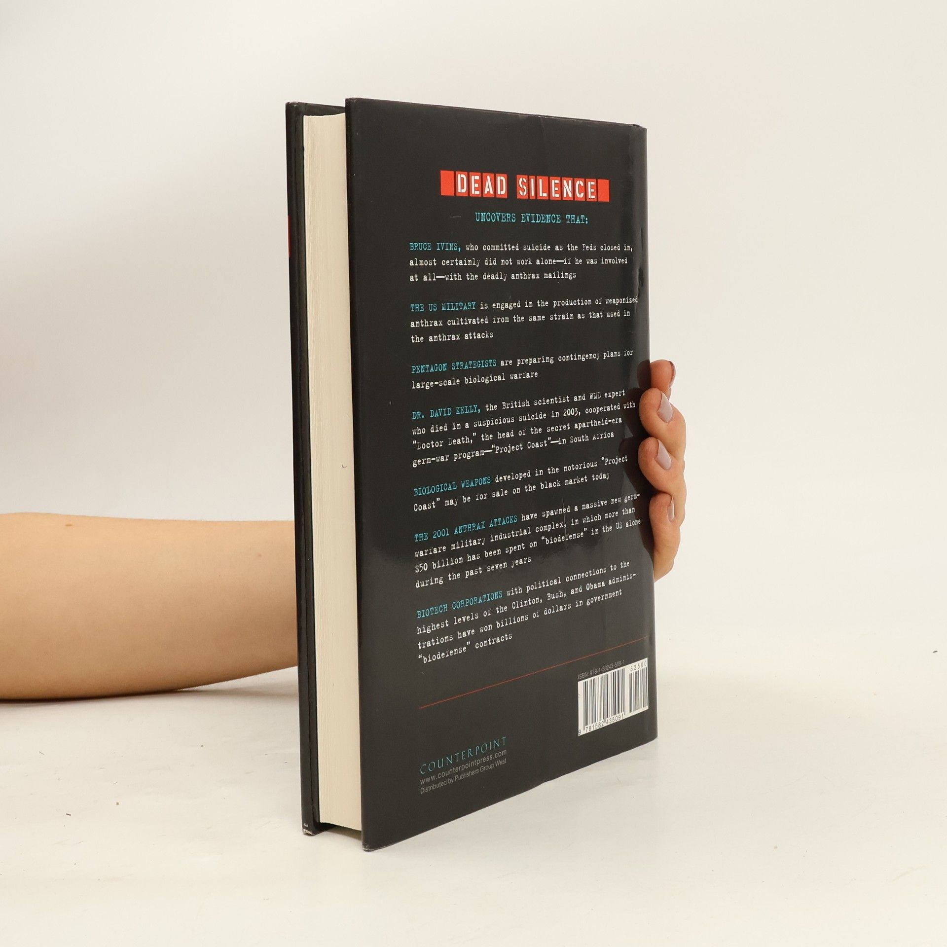 Dead Silence —the first in-depth look into the new biological arms race—tells the inside story of the U.S. anthrax attacks and their connection to the existence of a frightening global germ warfare underworld.Dead Silence follows a journalist and a private eye as they pursue leads that take them across four continents, inside classified labs in the U.S., and to an off-limits Russian military compound. In South Africa they track down “Doctor Death,” the apartheid army scientist who—using the expertise of his U.S. and U.K. intelligence contacts—worked on an array of germ weapons, including one targeting black people, a weapon that may be for sale on the black market today.Their investigation intensifies to include the mysterious deaths of some of the world’s leading germ war scientists in the wake of 9/11, including that of Bruce Ivins—the man the tabloids called “Doctor Doom” and the FBI controversially insists is the lone perpetrator of the anthrax attacks.