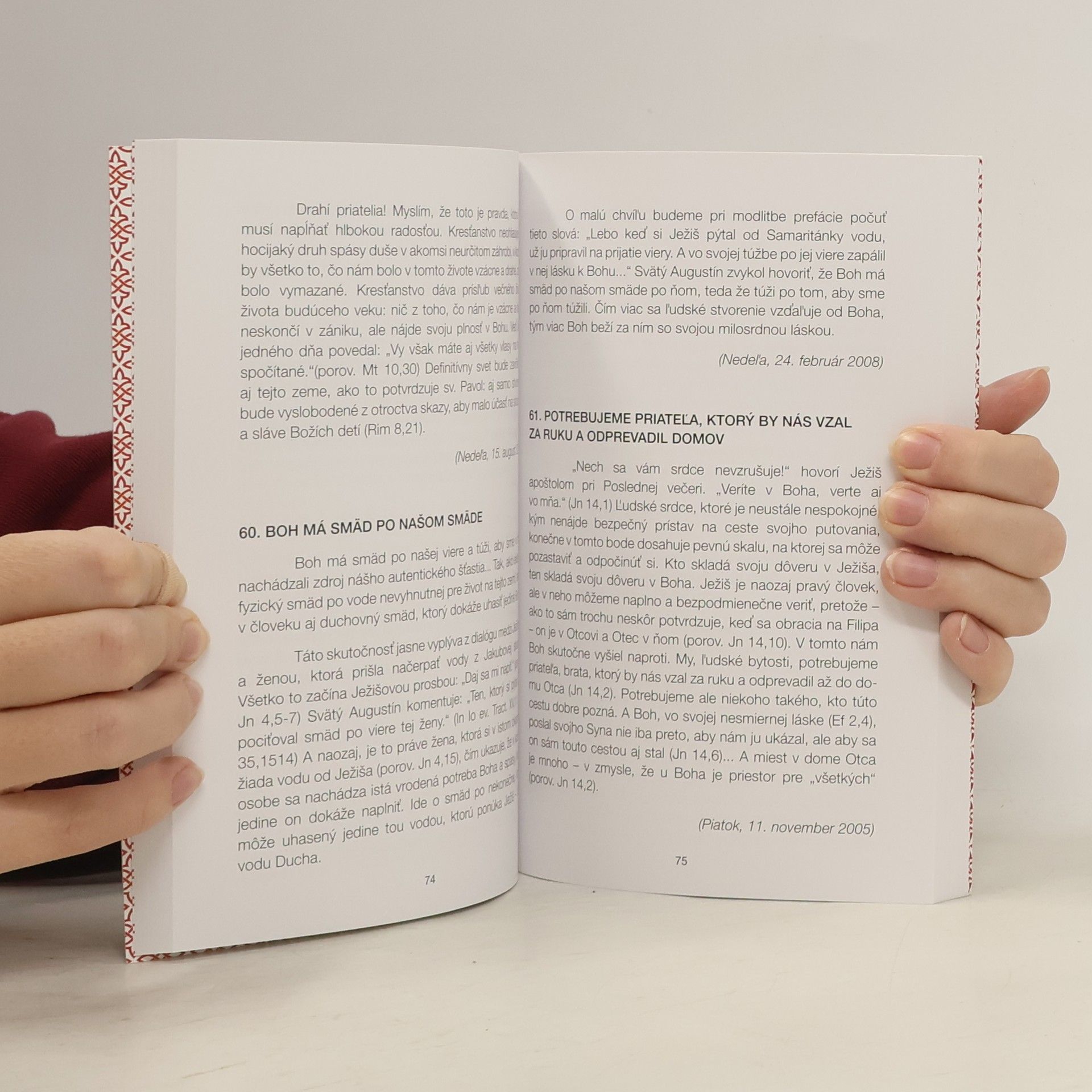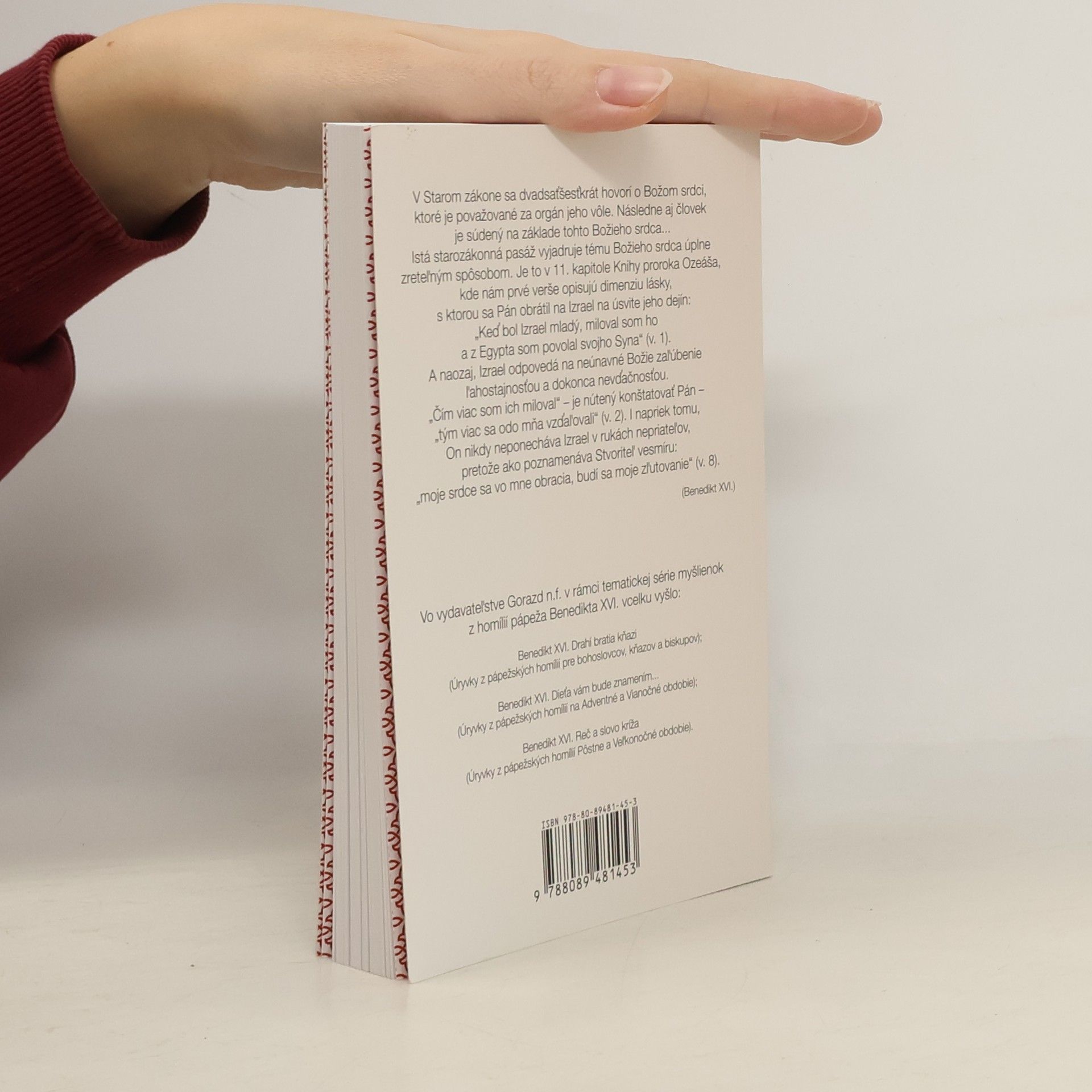 Úryvky z pápežských homílií do všedného dňa v Období cer rok V Starom zákone sa dvadsaťšesťkrát hovorí o Božom srdci, ktoré je považované za orgán jeho vôle. Následne aj človek je súdený na základe tohto Božieho srdca... Istá starozákonná pasáž vyjadruje tému Božieho srdca úplne zreteľným spôsobom. Je to v 11. kapitole Knihy proroka Ozeáša, kde nám prvé verše opisujú dimenziu lásky, s ktorou sa Pán obrátil na Izrael na úsvite jeho dejín: „Keď bol Izrael mladý, miloval som ho a z Egypta som povolal svojho Syna“ (v. 1). A naozaj, Izrael odpovedá na neúnavné Božie zaľúbenie ľahostajnosťou a dokonca nevďačnosťou. „Čím viac som ich miloval“ - je nútený konštatovať Pán - „tým viac sa odo mňa vzďaľovali“ (v. 2). I napriek tomu, On nikdy neponecháva Izrael v rukách nepriateľov, pretože ako poznamenáva Stvoriteľ vesmíru: „moje srdce sa vo mne obracia, budí sa moje zľutovanie“ (v. 8). (Benedikt XVI.)