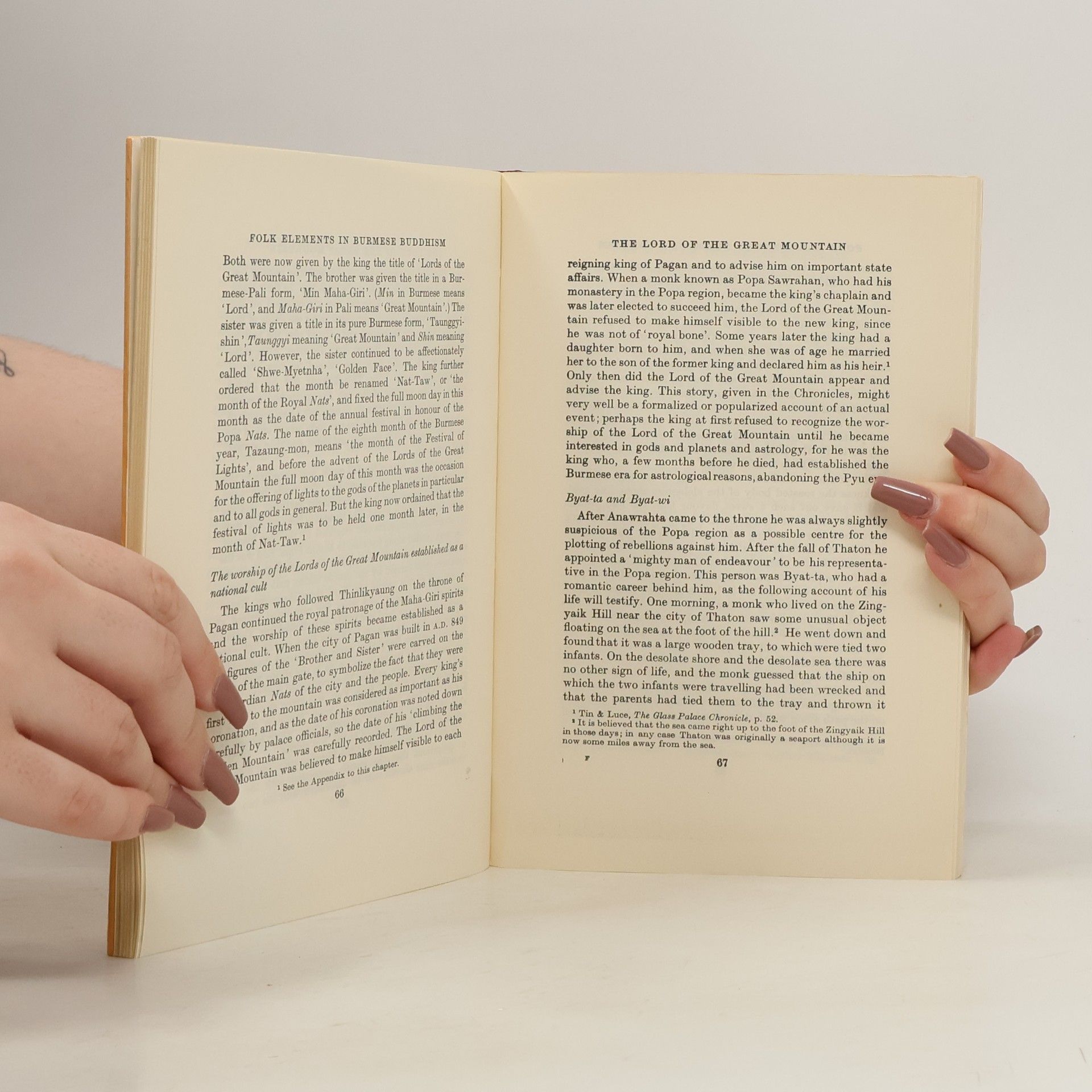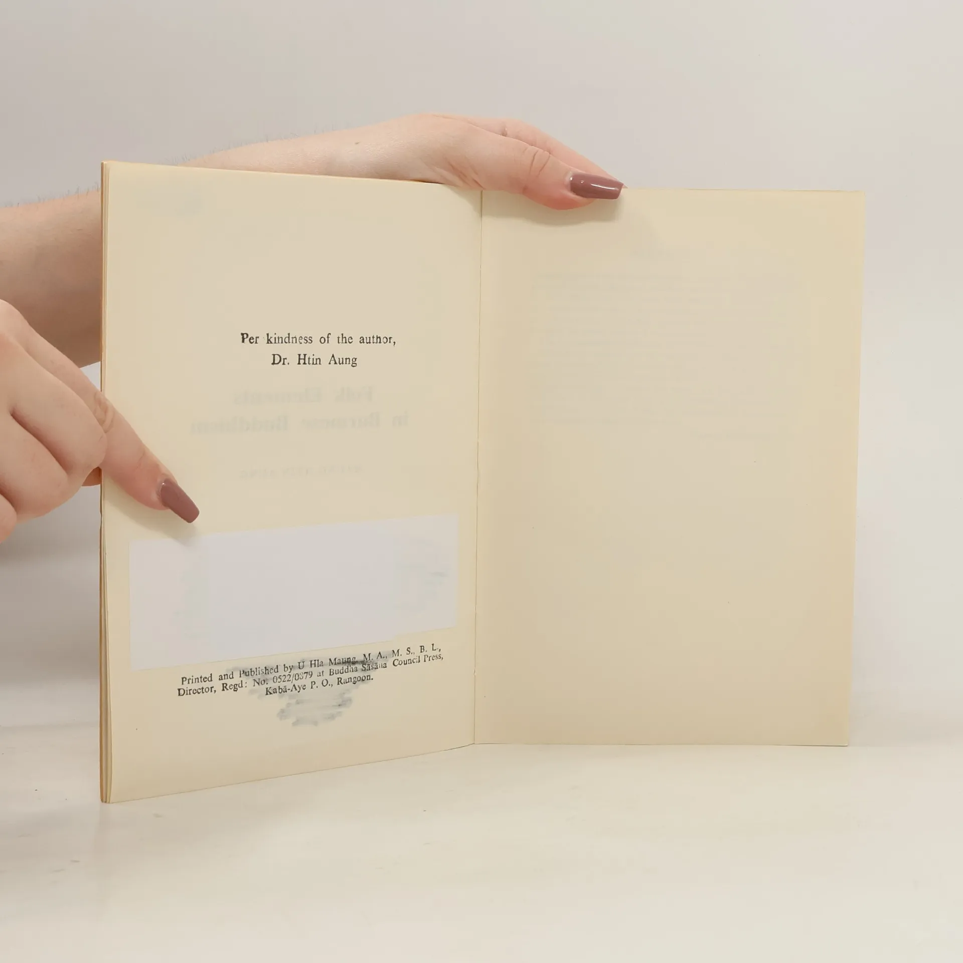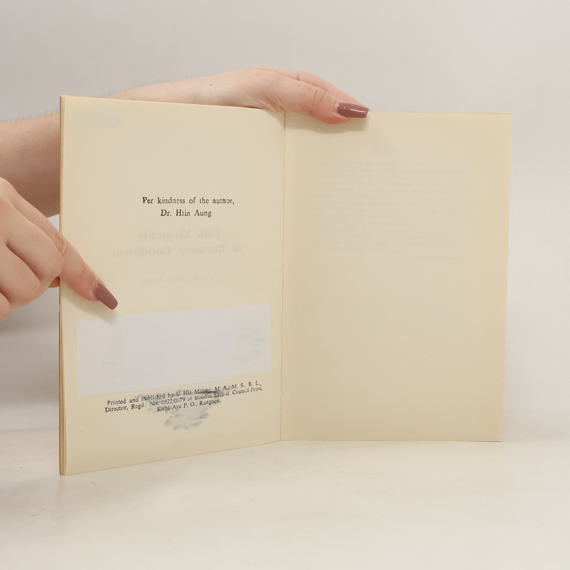 A work on the integrating power of Burmese Buddhism. When Theravada Buddhism became the national religion in the 11th century there already existed a number of primitive religious cults, the most important and most popular of which were the worship of nat spirits, astrology, and alchemy. In addition there also existed Mahayana Buddhism and Tantric or magical Buddhism. All the different cults were given an artificial unity by the fact that they were all under the patronage of the Ari monks. These Ari monks had some acquaintance with the Buddhist scriptures, gloried in the name of Buddha, and wore dark brown robes and conical hats. But they also presided over the nat spirit festival at which hundreds of animals were sacrificed. The nine chapters of this book deal folk elements in Burmese Buddhism; the nine Gods; the feast of the New Year; the cult of alchemy; the cult of the magus; the Lord of the Great Mountain; the thirty-seven Lords; initiation ceremonies; and the Ari monks and the introduction of Buddhism.