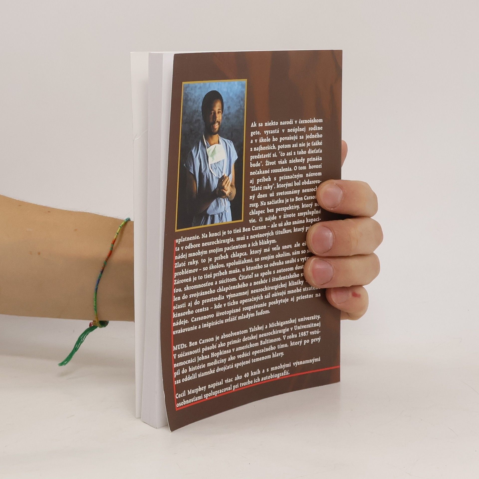 Narodenie v černošskom gete, vyrastanie v neúplnej rodine a povesť jedného z najhorších žiakov v škole predurčujú chlapca na beznádejný osud. Avšak život môže priniesť nečakané zmeny. Príbeh sa sústreďuje na Ben Carsona, chlapca bez perspektívy, ktorý sa nielenže vyrovnáva s problémami v škole a sám so sebou, ale aj sníva o lepšej budúcnosti. Na konci jeho cesty sa z neho stáva svetoznámy neurochirurg, ktorý prináša nádej mnohým pacientom a ich rodinám. Príbeh „Zlaté ruky“ zachytáva Benovu odvahu, vytrvalosť, skromnosť a súcit, pričom čitateľ má možnosť nahliadnuť do jeho chlapčenského a neskôr študentského života, ako aj do prostredia významnej neurochirurgickej kliniky – Hopkinsovho centra. Carsonovo autobiografické rozprávanie inšpiruje najmä mladých ľudí, povzbudzuje ich k premýšľaniu o vlastných snoch a prekonávaní prekážok. MUDr. Ben Carson, absolvent Yalskej a Michiganskej univerzity, je primárom detskej neurochirurgie v Univerzitnej nemocnici Johna Hopkinsa v Baltimore a v roku 1987 vstúpil do histórie medicíny ako vedúci tímu, ktorý oddelil siamské dvojčatá spojené temenom hlavy. Cecil Murphey, autor viac ako 40 kníh, spolupracoval s mnohými osobnosťami na ich autobiografiách.