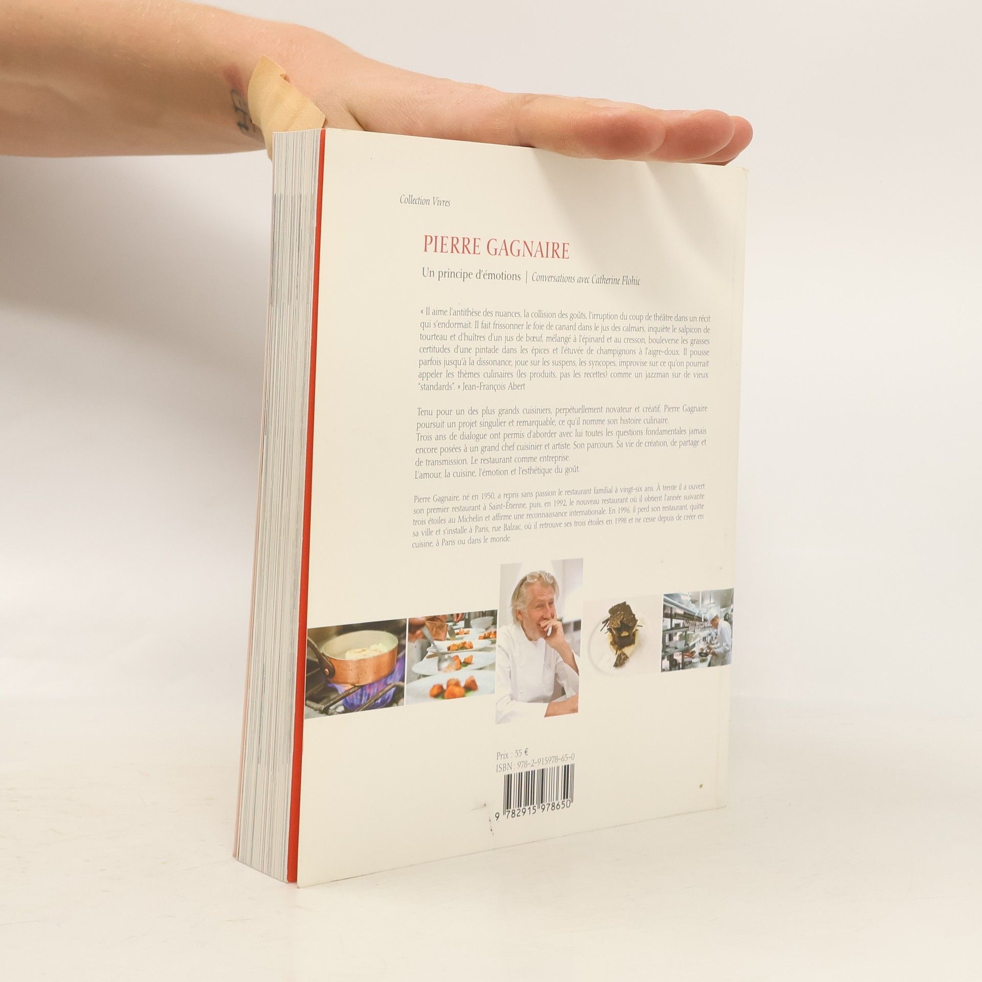 « Il aime l’antithèse des nuances, la collision des goûts, l’irruption du coup de théâtre dans un récit qui s’endormait. Il fait frissonner le foie de canard dans le jus des calmars, inquiète le salpicon de tourteau et d’huîtres d’un jus de boeuf, mélangé à l’épinard et au cresson, bouleverse les grasses certitudes d’une pintade dans les épices et l’étuvée de champignons à l’aigre-doux. Il pousse parfois jusqu’à la dissonance, joue sur les suspens, les syncopes, improvise sur ce qu’on pourrait appeler les thèmes culinaires (les produits, pas les recettes) comme un jazzman sur de vieux “standards” ». Jean-François Abert. Tenu pour un des plus grands cuisiniers, perpétuellement novateur et créatif, Pierre Gagnaire poursuit un projet singulier et remarquable, ce qu’il nomme son histoire culinaire. Trois ans de dialogue ont permis d’aborder avec lui toutes les questions fondamentales jamais encore posées à un grand chef cuisinier et artiste. Son parcours. Sa vie de création, de partage et de transmission. Le restaurant comme entreprise. L’amour, la cuisine, l’émotion et l’esthétique du goût.