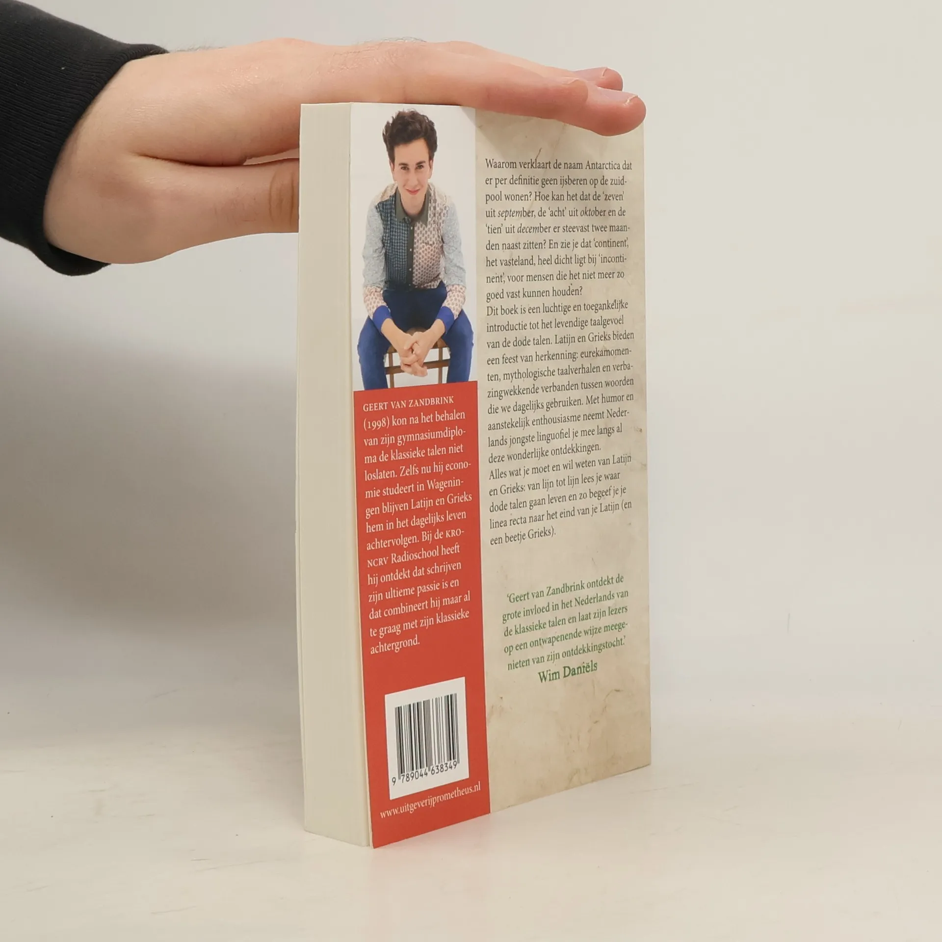 Waarom verklaart de naam Antarctica dat er per definitie geen ijsberen op de zuidpool wonen? Hoe kan het dat de ‘zeven’ uit september, de ‘acht’ uit oktober en de ‘tien’ uit december er steevast twee maanden naast zitten? En zie je dat ‘continent’, het vasteland, heel dicht ligt bij ‘incontinent’, voor mensen die het niet meer zo goed vast kunnen houden?Latijn en Grieks zijn al eeuwen uitgestorven, maar leven voort in de Nederlandse taal. En als je de klassieke oorsprong van woorden kent, dan snap je hun betekenissen niet alleen, maar vóel je ze ook. En daar heb je het: taalgevoel. Dit boek is een luchtige en toegankelijke introductie tot dat taalgevoel, maar ook een feest van herkenning: eurekamomenten, mythologische taalverhalen en verbazingwekkende verbanden tussen woorden die we dagelijks gebruiken. Met humor en aanstekelijk enthousiasme neemt Nederlands jongste linguofiel je mee langs al deze wonderlijke ontdekkingen.