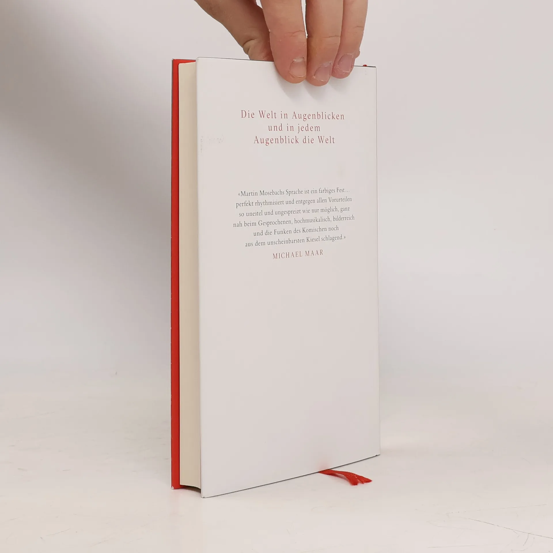 Planvoll oder zufällig, hier kommen sie zusammen, Menschen von allen Ecken und Enden des Lebens: eine Malerin, die über den Aufbau eines Stilllebens (Kiesel und Koralle, Schmetterling, Perle und Taubenei) mit einer Freundin streitet; ein Junge auf einem Fahrrad, glücklich dahinrasend wie außerhalb der Zeit; eine Liebhaberin des Weins, die sich auf dem Sterbebett endlich die kostbare, seit Jahrzehnten aufgesparte Flasche bringen läßt; ein Mann vor einem Spalt im Vorhang einer Umkleidekabine, gebannt erlebend, wie sich der Spalt erst mit einem warmen Farbton füllt, dann mit gerundeten Formen, dann mit dunklen Linien - eines Beins?, eines Arms? -, die sich vor seinen Augen hin und her bewegen, „langsam und schwimmend wie ein Wels am Grund eines Flusses“. Die Miniaturen dieses Buchs erfassen die Welt in Augenblicken. Sie sind Erzählpracht auf engstem Raum, lassen im Handumdrehen Szenen und Figuren entstehen, und so kurz sie sind, so vielgestaltig sind sie in Darstellung und Ton - komisch oder ernst, romanhaft ausgreifend oder dramatisch oder satirisch, dann wieder gelöst, beruhigt. Nur in Sinnlichkeit und Intensität gleichen sich die winzigen Progressionen in der Zeit, die Martin Mosebach beschreibt; es sind die Augenblicke, die unser Leben vor allem ausmachen, die Augenblicke, in denen man, beglückt oder überrascht wie beim Lesen dieser Geschichten auch, etwas von seiner Kürze und Unwiederholbarkeit begreift.