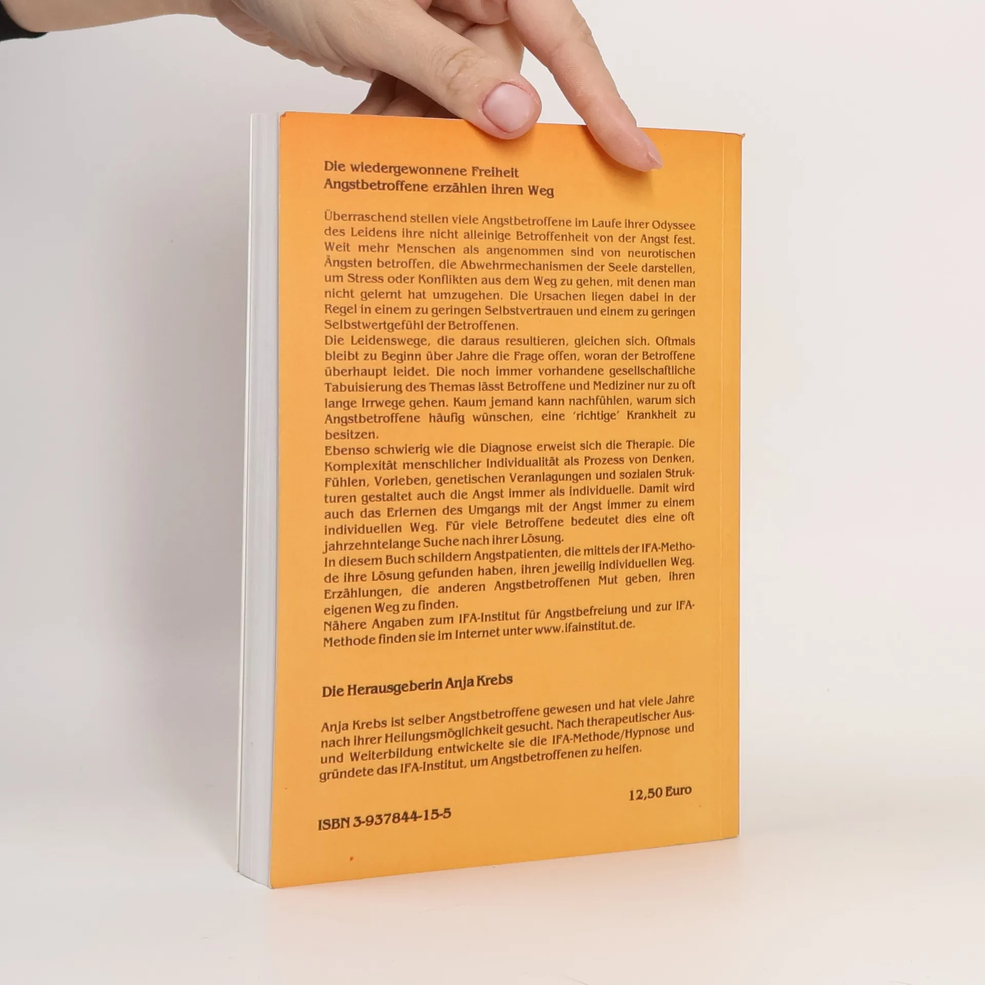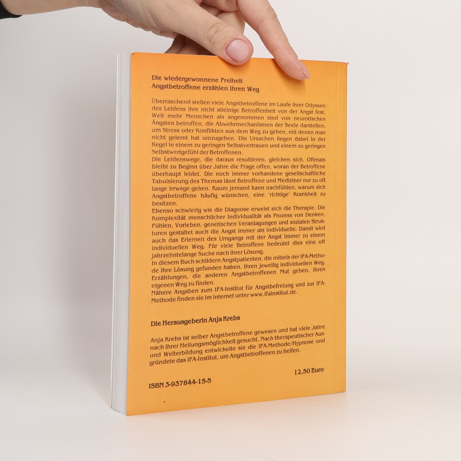Viele Angstbetroffene erkennen im Laufe ihrer Leidensgeschichte, dass sie nicht allein sind. In diesem Buch schildern zahlreiche Frauen ihren Weg durch das Leiden und die Heilung. Weit mehr Menschen als angenommen leiden unter neurotischen Ängsten, die als Abwehrmechanismen gegen Stress oder ungelöste Konflikte fungieren. Oft sind die Ursachen ein geringes Selbstvertrauen und Selbstwertgefühl. Die Leidenswege ähneln sich, und häufig bleibt über Jahre unklar, woran Betroffene leiden. Die gesellschaftliche Tabuisierung des Themas führt dazu, dass sowohl Betroffene als auch Mediziner oft lange Irrwege gehen. Viele wünschen sich, eine "richtige" Krankheit zu haben, da die Diagnose und Therapie von Ängsten komplex sind. Die Individualität des Menschen – geprägt von Denken, Fühlen, genetischen Veranlagungen und sozialen Strukturen – macht den Umgang mit Angst zu einem persönlichen Prozess. Für viele bedeutet dies eine jahrzehntelange Suche nach Lösungen. Betroffene, die mit der IFA-Methode ihre Wege gefunden haben, teilen ihre Erfahrungen und ermutigen andere, ihren eigenen Weg zu finden. Nähere Informationen zur IFA-Methode und dem IFA-Institut sind online verfügbar. Die Herausgeberin Anja Krebs, selbst eine ehemalige Angstbetroffene, hat die IFA-Methode entwickelt, um anderen zu helfen.