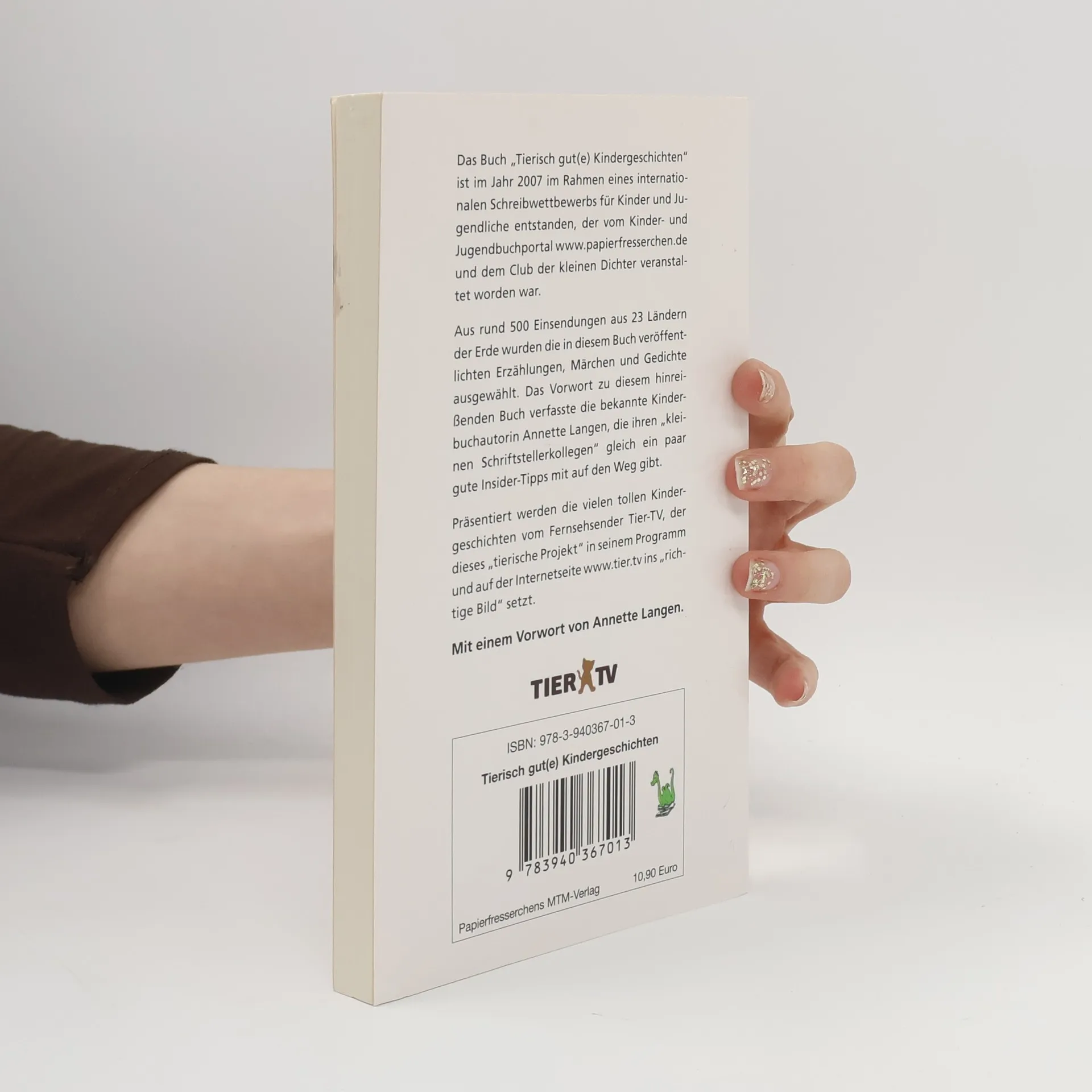 Das Buch "Tierisch gut(e) Kindergeschichten" ist im Jahr 2007 im Rahmen eines internationalen Schreibwettbewerbs für Kinder und Jugendliche entstanden, der vom Kinder- und Jugendbuchportal www.papierfresserchen.de und dem Club der kleinen Dichter veranstaltet worden war. Aus rund 500 Einsendungen aus 23 Ländern der Erde wurden die in diesem Buch veröffentlichten Erzählungen, Märchen und Gedichte ausgewählt. Das Vorwort zu diesem hinreißenden Buch verfasste die bekannte Kinderbuchautorin Annette Langen, die ihren "kleinen Schriftstellerkollegen" gleich ein paar gute Insider-Tipps mit auf den Weg gibt. Präsentiert werden die vielen tollen Kindergeschichten vom Fernsehsender Tier-TV, der dieses "tierische Projekt" in seinem Programm und auf der Internetseite www.tier.tv ins "richtige Bild" setzt. Mit einem Vorwort von Annette Langen.