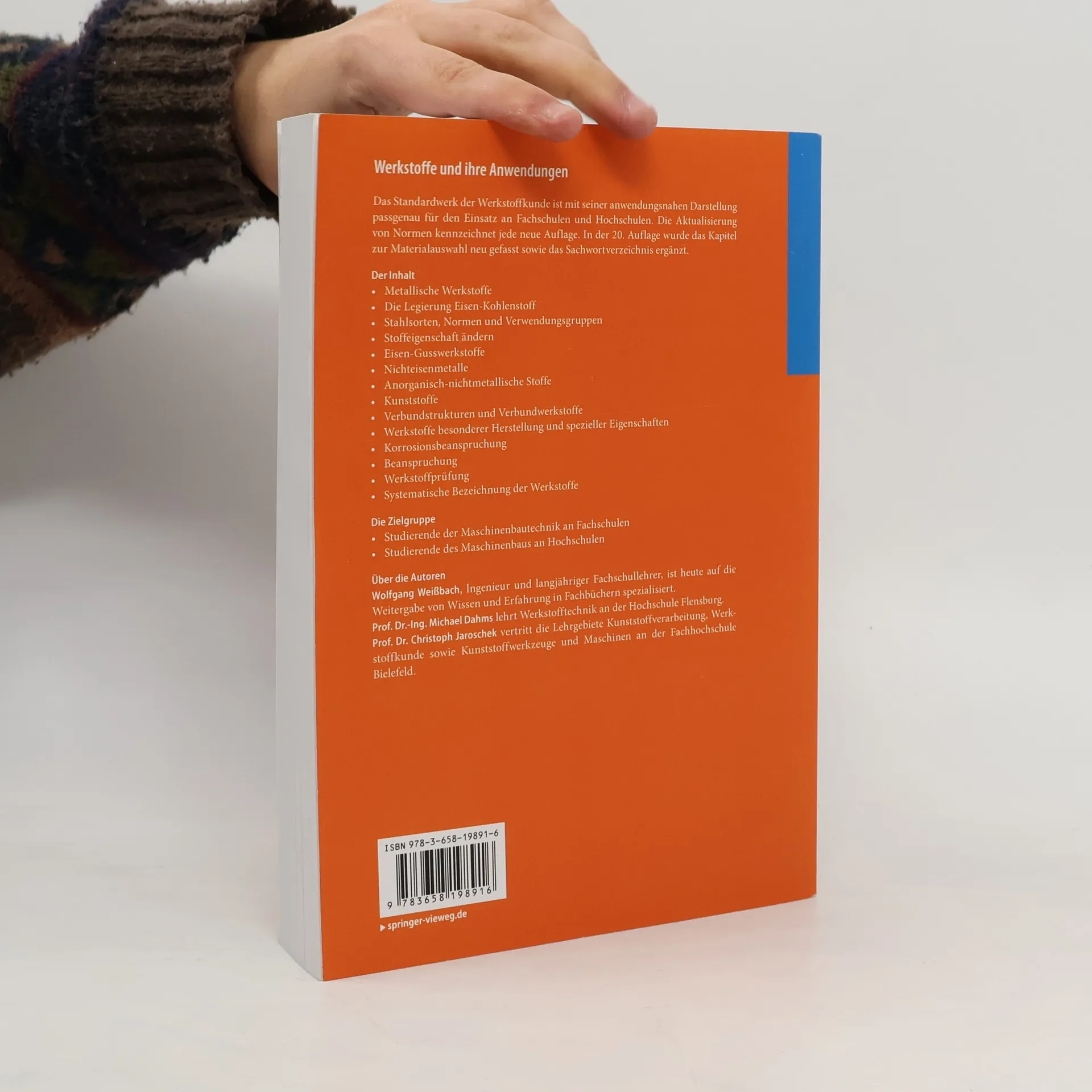 „Der Weißbach“ ist mittlerweile zum Standardwerk der Werkstoffkunde geworden. Die anwendungsnahe Darstellung ist passgenau für den Einsatz an Fachschulen und Fachhochschulen konzipiert. Das Buch behandelt die wichtigsten Werkstoffe, deren Herstellung und Eigenschaften in prägnanter und verständlicher Form: metallische Werkstoffe, Eisen-Gusswerkstoffe, Nichteisenmetalle, anorganisch-nichtmetallische Stoffe, Kunststoffe sowie Verbundstrukturen und Verbundwerkstoffe. Weiterhin sind in dem Lehrbuch die Themen Werkstoffprüfung, Qualitätskontrolle, Korrosion, Materialauswahl sowie die Wärmebehandlung von Stahl und tribologische Beanspruchung für Studierende kompakt und übersichtlich aufbereitet. Zu allen Themengebieten finden Leser am Kapitelende Hinweise auf weiterführende Literatur sowie die entsprechenden DIN- und EN-Normen sowie. Ein Sachwortverzeichnis erleichtert das Nachschlagen. Für jede Neuauflage wurden die Normen aktualisiert, so auch für die 20. Auflage. Zudem wurde das Kapitel zur Materialauswahl neu gefasst und das Sachwortverzeichnis ergänzt. Das Lehrbuch deckt den Stoff der Werkstoffkunde, Werkstoffprüfung, Materialkunde und Werkstofftechnik an Fachschulen und Hochschulen ab. Es richtet sich an Studierende der Maschinenbautechnik an Fachschulen sowie an Studierende des Maschinenbaus an Fachhochschulen und Hochschulen.