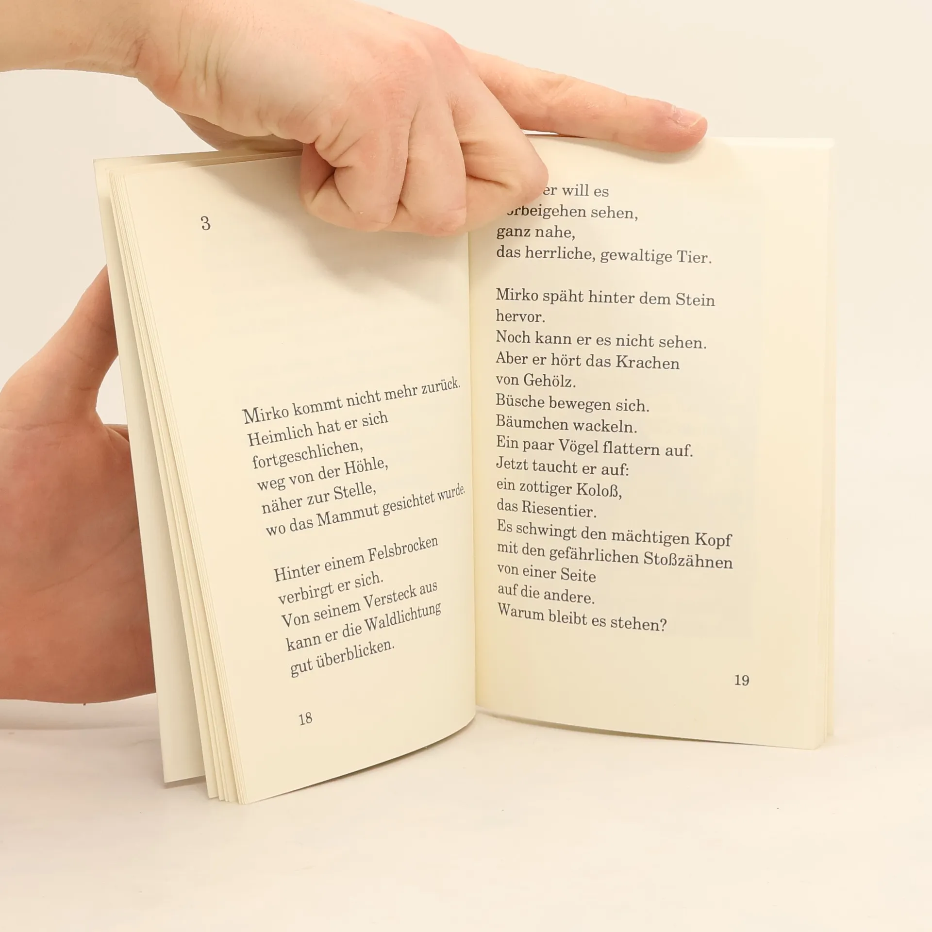 Mirko, ein Jägerjunge und Höhlenbewohner, rettet ein Mammut vor dem Tod durch Jäger und gewinnt dadurch die Freundschaft des Riesentieres. Auf der gemeinsamen Flucht finden sie Freunde bei bereits ansässig gewordenen Hüttenbewohnern. Mirko und das Mammut werden dort beinahe Opfer eines Verrates. Es gelingt Mirko, den Überfall der hungrigen Jäger auf das Hüttendorf zu verhindern, so dass einer neuen Lebensform nichts mehr im Wege steht. Das jagdbare Tier wird zum Freund des Menschen. (Quelle: Verzeichnis ZKL).
