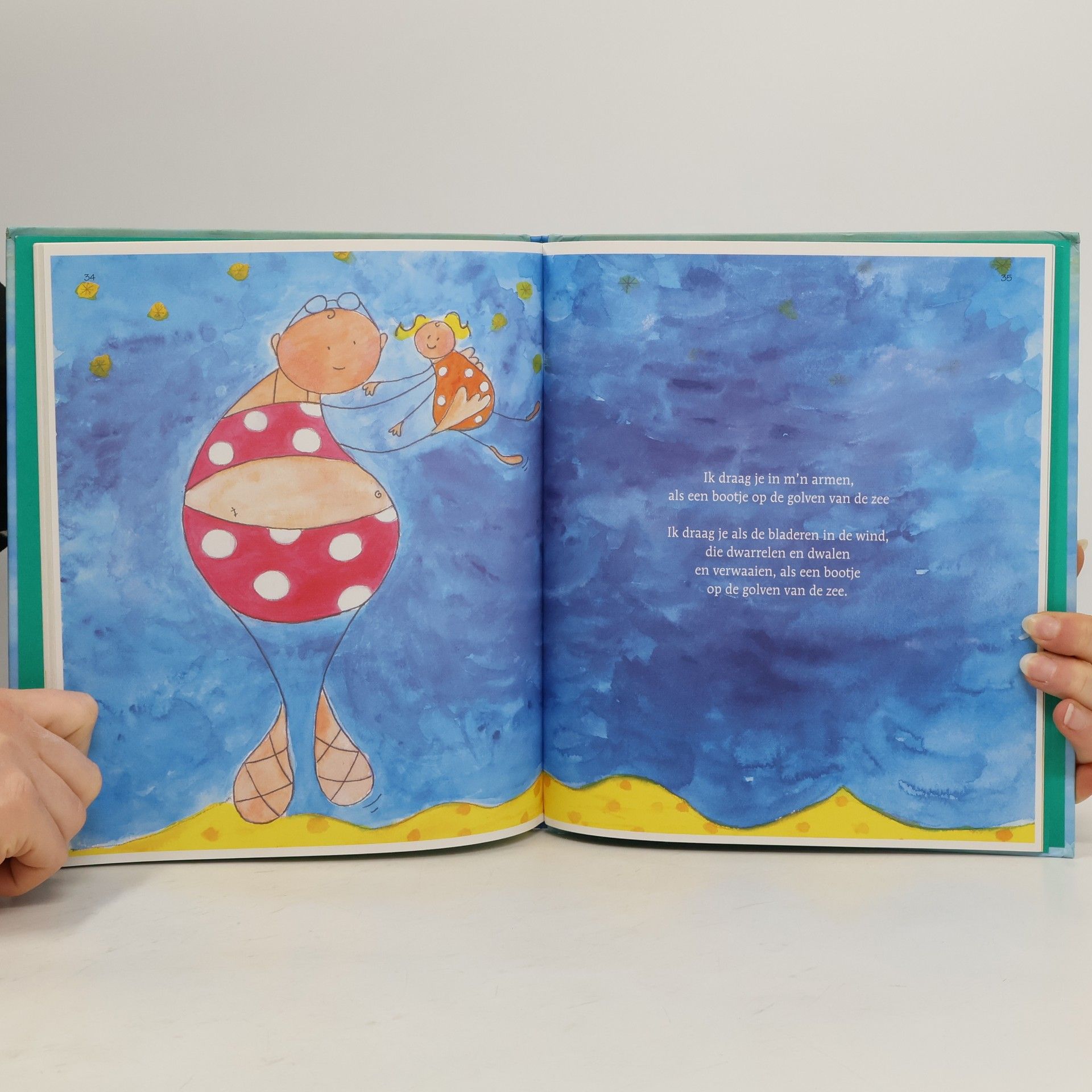 Verzameling gedichten en liedjes, met muzieknotatie, rond het thema zee. Met gekleurde tekeningen. Vanaf ca. 3 jaar.