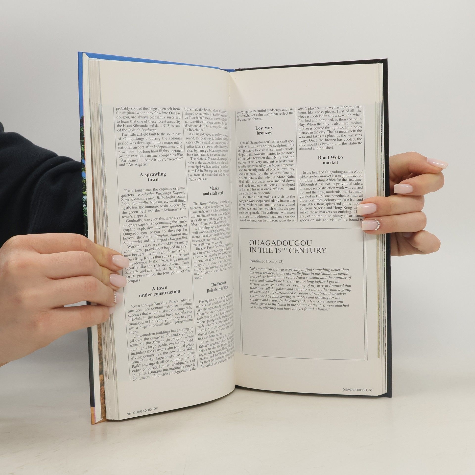 Explore Burkina Faso with this Today travel guide, published by Jaguar. It contains a lot of cultural information on what to see and what to visit in this place, as well as practical tips and colourful illustrations.Nestled in the Niger Bend, in the heart of West Africa, Burkina Faso, which means « country of integrity », is the symbol of meeting and exchanging. It is a country mostly made up of savannah, with hardly any mountains. One of the most remarkable is the Banfora Cliffs and the Sindou Peaks in the West. In the North, the great Oursi dunes give visitors a taste of the wide open Saharan spaces to be found in Mali and Niger, its neighbours.Everywhere, villages stud the savannah, with big dams here and there to provide water to the surrounding areas. Rice paddies and market gardens stretch as far as the eye can see. Tourists are invited to take a elephant- and lion-spotting safari in the W and Arli National Parks, while the capital, Ouagadougou, comes to life according to local and international festivals. There is no shortage of shopping, cinema, crafts, restaurants, museums, and monuments. But what most tourists retain is the hospitality of its wealth of people. Discover the smile of this incredible country!26 x 15 cm; colourful pictures and photographs; hard cover.