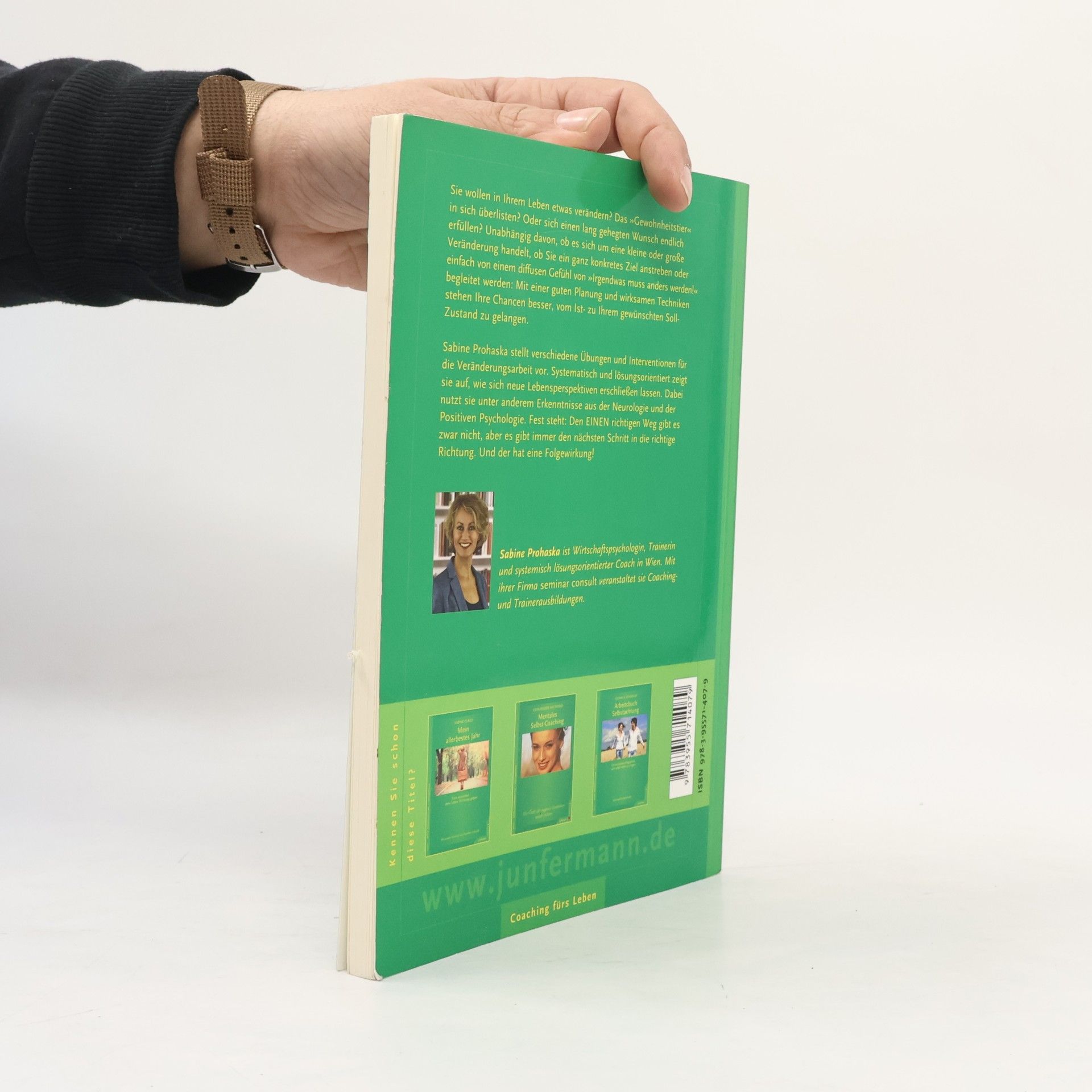 Sie wollen in Ihrem Leben etwas verändern? Das „Gewohnheitstier“ in sich überlisten? Oder sich einen lang gehegten Wunsch endlich erfüllen? Unabhängig davon, ob es sich um eine kleine oder große Veränderung handelt, ob Sie ein ganz konkretes Ziel anstreben oder einfach von einem diffusen Gefühl von „Irgendwas muss anders werden!“ begleitet werden: Mit einer guten Planung und wirksamen Techniken stehen Ihre Chancen besser, vom Ist- zu Ihrem gewünschten Soll-Zustand zu gelangen. Sabine Prohaska stellt verschiedene Übungen und Interventionen für die Veränderungsarbeit vor. Systematisch und lösungsorientiert zeigt sie auf, wie sich neue Lebensperspektiven erschließen lassen. Dabei nutzt sie unter anderem Erkenntnisse aus der Neurologie und der Positiven Psychologie. Fest steht: Den EINEN richtigen Weg gibt es zwar nicht, aber es gibt immer den nächsten Schritt in die richtige Richtung. Und der hat eine Folgewirkung!