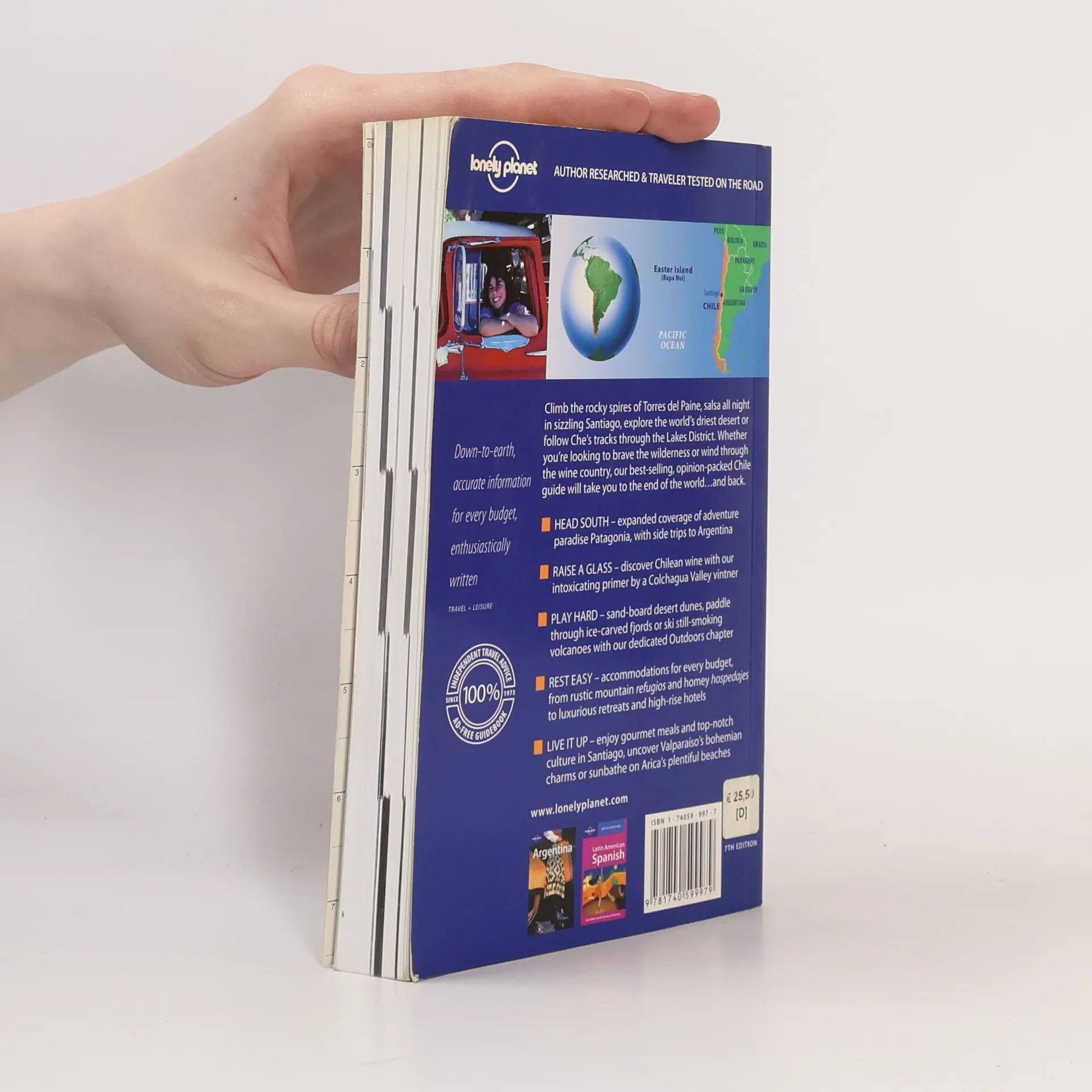 Climb the rocky spires of Torres del Paine, salsa all night in sizzling Santiago, explore the world’s driest desert or follow Che’s tracks through the Lakes District. Whether you’re looking to brave the wilderness or wind through the wine country, our best-selling, opinion-packed Chile guide will take you to the end of the world…and back.Head South – expanded coverage of adventure paradise Patagonia, with side trips to Argentina.Raise A Glass – discover Chilean wine with our intoxicating primer by a Colchagua Valley vintner.Play Hard – sand-board desert dunes, paddle through ice-carved fjords or ski still-smoking volcanoes with our dedicated Outdoors chapter.Rest Easy – accommodations for every budget, from rustic mountain refugios and homey hospedajes to luxurious retreats and high-rise hotels.Live It Up – enjoy gourmet meals and top-notch culture in Santiago, uncover Valparaíso’s bohemian charms or sunbathe on Arica’s plentiful beaches.