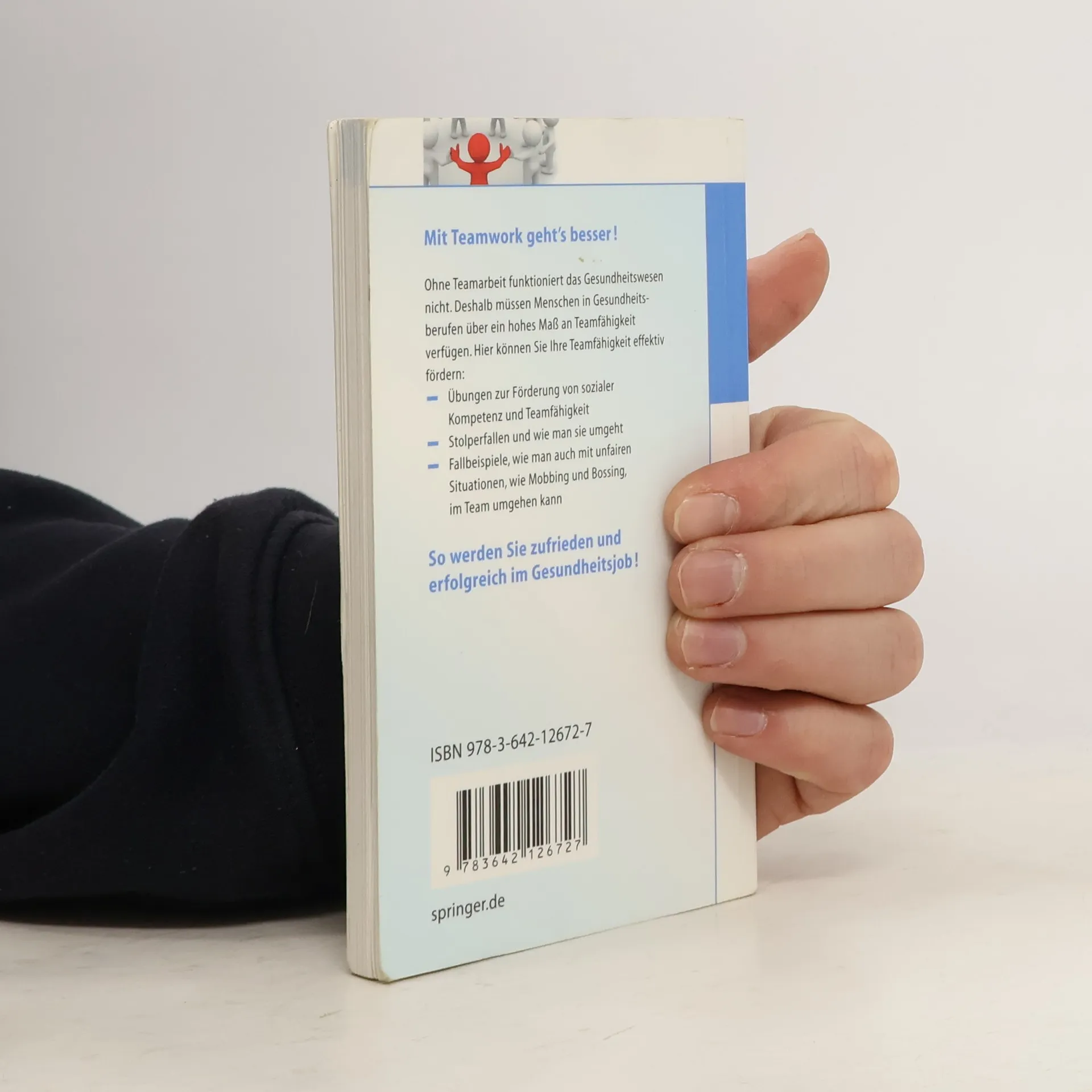 Ohne Teamarbeit funktioniert das Gesundheitswesen nicht – ob bei der Aufnahme, während des Aufenthalts eines Patienten oder im Praxisteam. Mitarbeiter müssen über ein hohes Maß an Teamfähigkeit verfügen. Wie hier Verbesserung umgesetzt werden können, mit dieser Frage beschäftigt sich das kompakte Ratgeberbuch. Die Autorin vermittelt anhand von Fallbeispielen und vielen praktischen Tipps, wie man Stolpersteine umgeht, wie soziale Kompetenz gestärkt werden kann und wie man sich am besten in unfairen Situationen wie Mobbing und Bossing verhält.