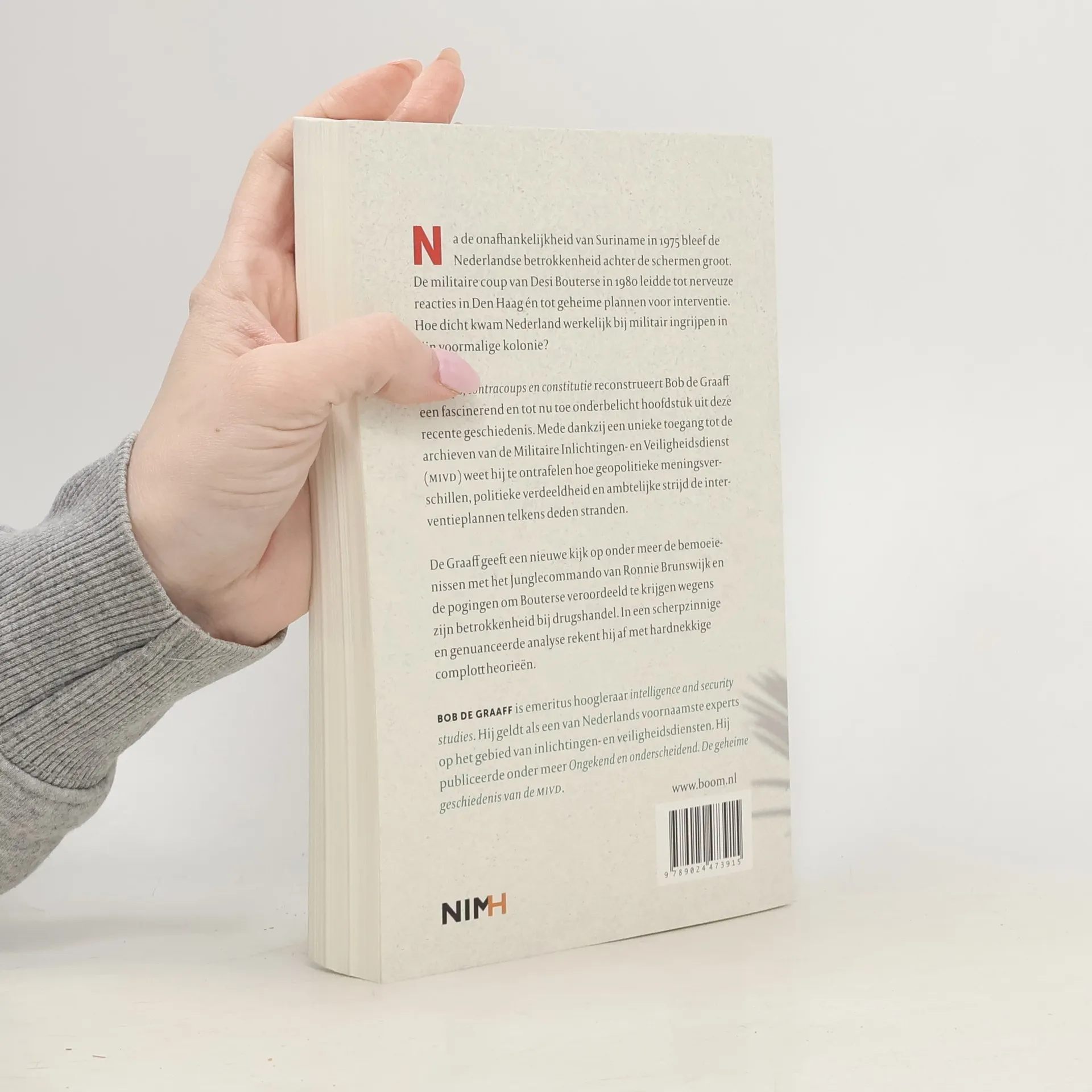 "Ook na de onafhankelijkheid van Suriname in 1975 was de Nederlandse belangstelling voor de voormalige kolonie groot. Na de coup van Desi Bouterse in 1980 maakten de Nederlandse militaire inlichtingendiensten plannen om in te grijpen, al dan niet met internationale steun. Er ontstonden daarnaast particuliere initiatieven om het militaire bewind een halt toe te roepen. Vijftig jaar na dato is het Bob de Graaff gelukt de beoogde interventiepogingen in kaart te brengen. Dankzij een unieke toegang tot de archieven van de Militaire Inlichtingen- en Veiligheidsdienst (MIVD) kreeg hij ook boven tafel waarom er uiteindelijk niet werd ingegrepen. Doorslaggevend hierbij waren de verschillen van opvatting tussen de regeringen in Washington en Den Haag, het gebrek aan eensgezindheid bij de Nederlandse regeringspartijen en uiteenlopende visies van de betrokken ministeries. In Coups, contracoups en constitutie geeft Bob de Graaff een nieuwe kijk op het Nederlands beleid ten aanzien van Suriname na 1975, inclusief de bemoeienissen met het Junglecommando van Ronnie Brunswijk en de pogingen om Bouterse veroordeeld te krijgen wegens zijn betrokkenheid bij drugshandel. Met zijn genuanceerde beschrijving van de vrijwel steeds gestrande interventieplannen biedt hij een tegenwicht tegen allerlei complottheorieën over een heimelijk opererende neokoloniale Nederlandse overheid."--