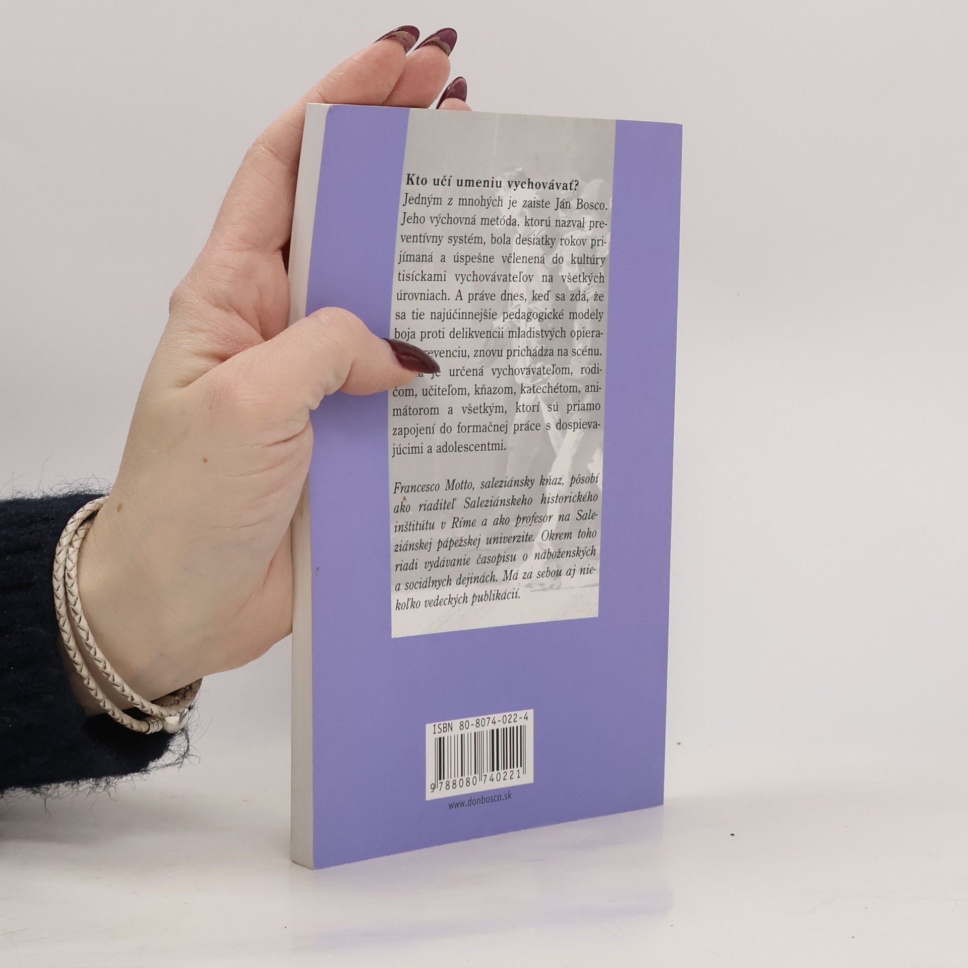 Kto učí umeniu vychovávať? Jedným z mnohých je zaiste Ján Bosco. Jeho výchovná metóda, ktorú nazval preventívny systém, bola desiatky rokov prijímaná a úspešne včlenená do kultúry tisíckami vychovávateľov na všetkých úrovniach. A práve dnes, keď sa zdá, že sa tie najúčinnejšie pedagogické modely boja proti delikvencii mladistvých opierajú o prevenciu, znovu prichádza na scénu. Kniha je určená vychovávateľom, rodičom, učiteľom, kňazom, katechétom, animátorom a všetkým, ktorí sú priamo zapojení do formačnej práce s dospievajúcimi a adolescentami. Táto kniha chce čitateľovi ponúknuť jednoduchý a moderný pohľad na základné prvky a oporné body vo výchove podľa Jána Bosca, ktorého účinnosť bola historický potvrdená. V závere každej kapitoly sú načrtnuté možnosti aktualizácie.