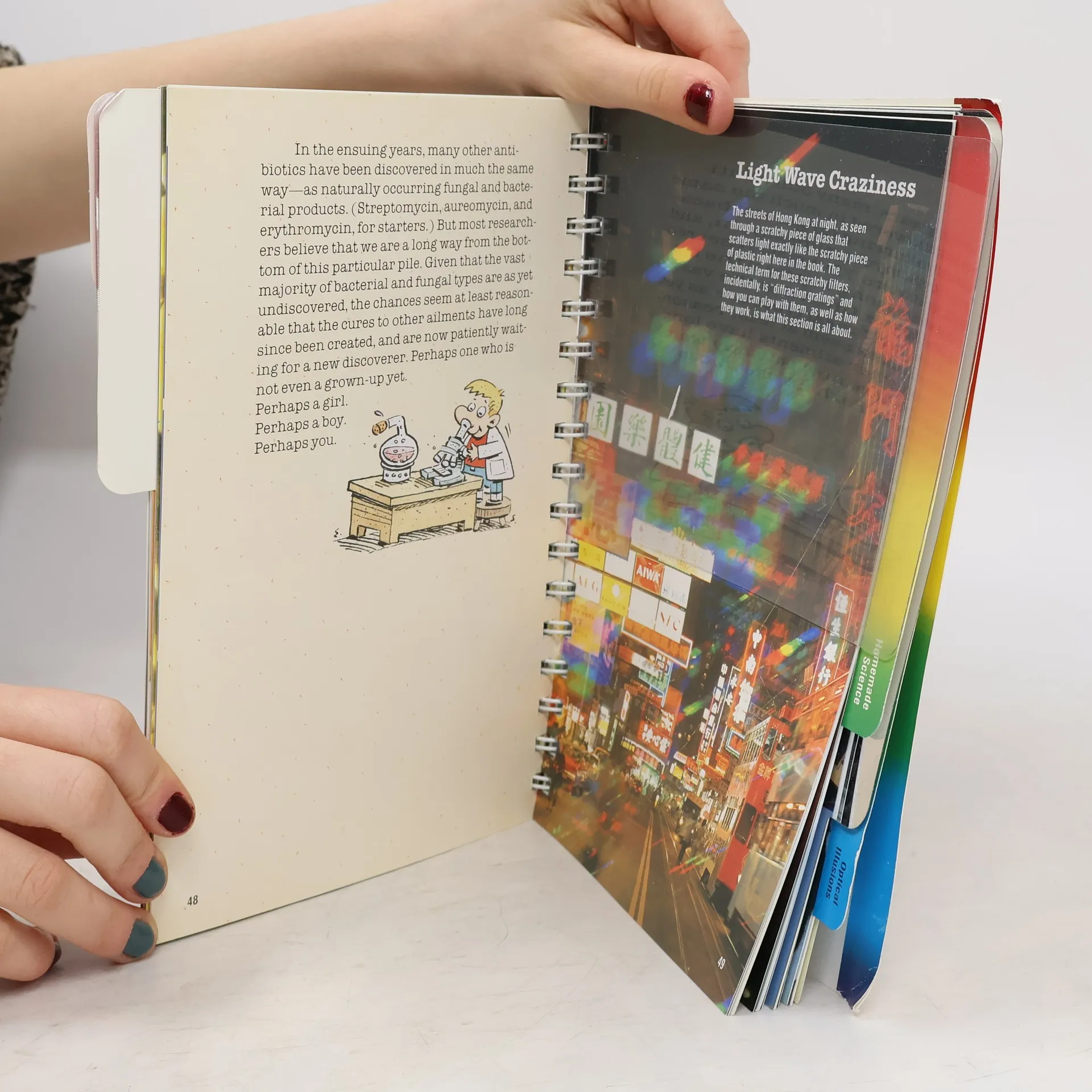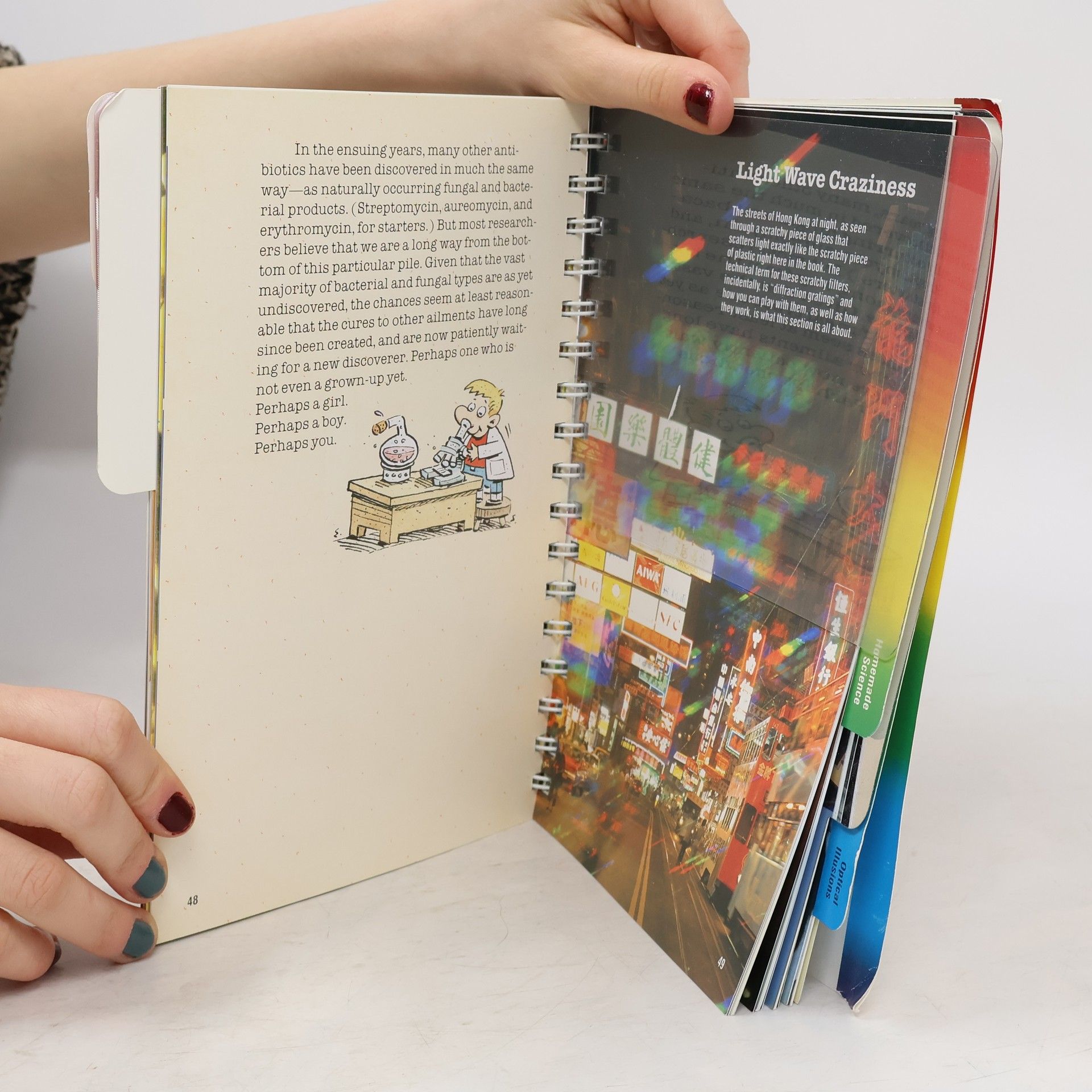 The San Francisco Exploratorium squeezed between the covers of a book! The "pages" reflect, magnify, or grow as you follow the instructions. Seven subjects are covered, including light wave craziness, ouchless physics, and hair dryer science.