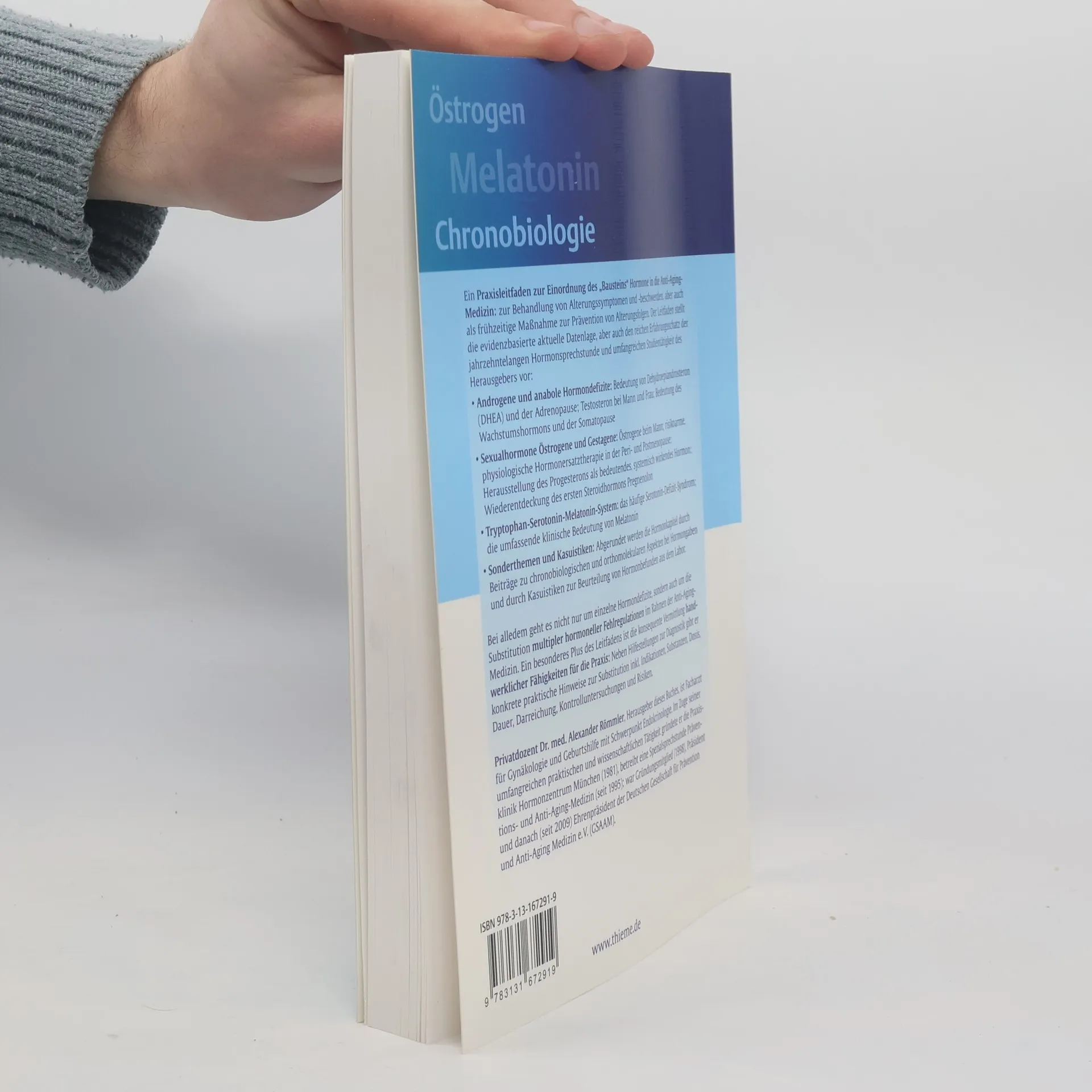 Ein Praxisleitfaden zur Einordnung des „Bausteins“ Hormone in die Anti-Aging-Medizin behandelt die Behandlung von Alterungssymptomen sowie präventive Maßnahmen gegen Alterungsfolgen. Der Leitfaden präsentiert die evidenzbasierte Datenlage und die langjährige Erfahrung des Herausgebers in der Hormonsprechstunde und Forschung. Themen umfassen: - Androgene und anabole Hormondefizite: die Rolle von Dehydroepiandrosteron (DHEA), Testosteron bei Männern und Frauen, sowie das Wachstumshormon und die Somatopause. - Sexualhormone: die Bedeutung von Östrogenen und Gestagenen, einschließlich risikoarmer Hormonersatztherapie in der Peri- und Postmenopause und die Wiederentdeckung von Progesteron und Pregnenolon. - Tryptophan-Serotonin-Melatonin-System: das Serotonin-Defizit-Syndrom und die klinische Bedeutung von Melatonin. Zusätzlich werden Sonderthemen und Kasuistiken behandelt, um Hormonbefunde zu bewerten. Der Leitfaden fokussiert nicht nur auf einzelne Hormondefizite, sondern auch auf die Substitution multipler hormoneller Fehlregulationen. Ein besonderes Merkmal ist die praxisorientierte Vermittlung handwerklicher Fähigkeiten, einschließlich Diagnostik, Substitution, Indikationen, Dosierung, Kontrolluntersuchungen und Risiken. Herausgeber Dr. med. Alexander Römmler ist Facharzt für Gynäkologie und Geburtshilfe mit Schwerpunkt Endokrinologie und Gründer der Praxisklinik Hormonzentrum München.