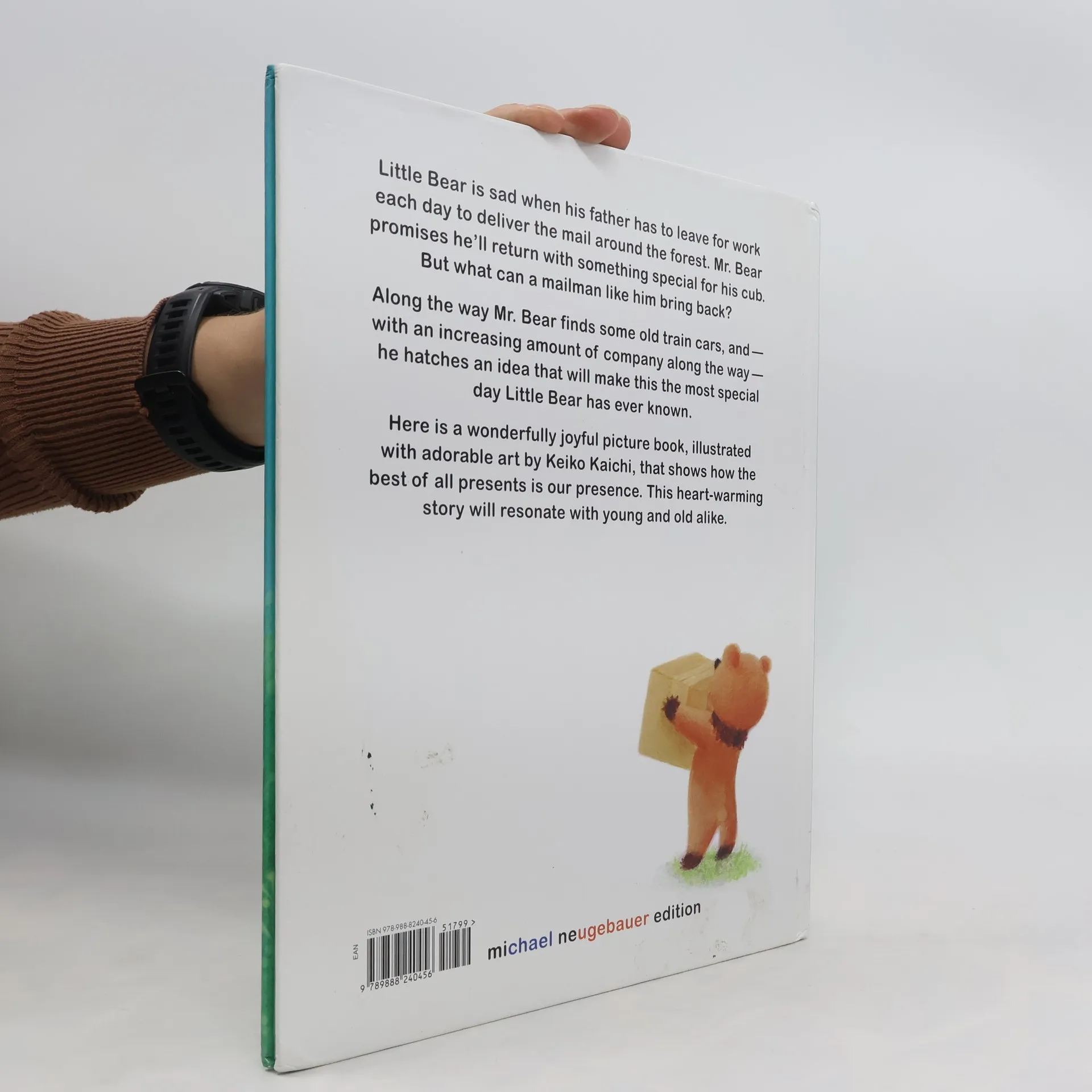 Little Bear is sad when his father has to leave for work each day to deliver the mail around the forest. Mr. Bear promises he’ll return with something special for his cub. But what can a mailman like him bring back? Along the way Mr. Bear finds some old train cars, and —with an increasing amount of company along the way —he hatches an idea that will make this the most special day Little Bear has ever known. Here is a wonderfully joyful picture book, illustrated with adorable art by Keiko Kaichi, that shows how the best of all presents is our presence. This heart-warming story will resonate with young and old alike.