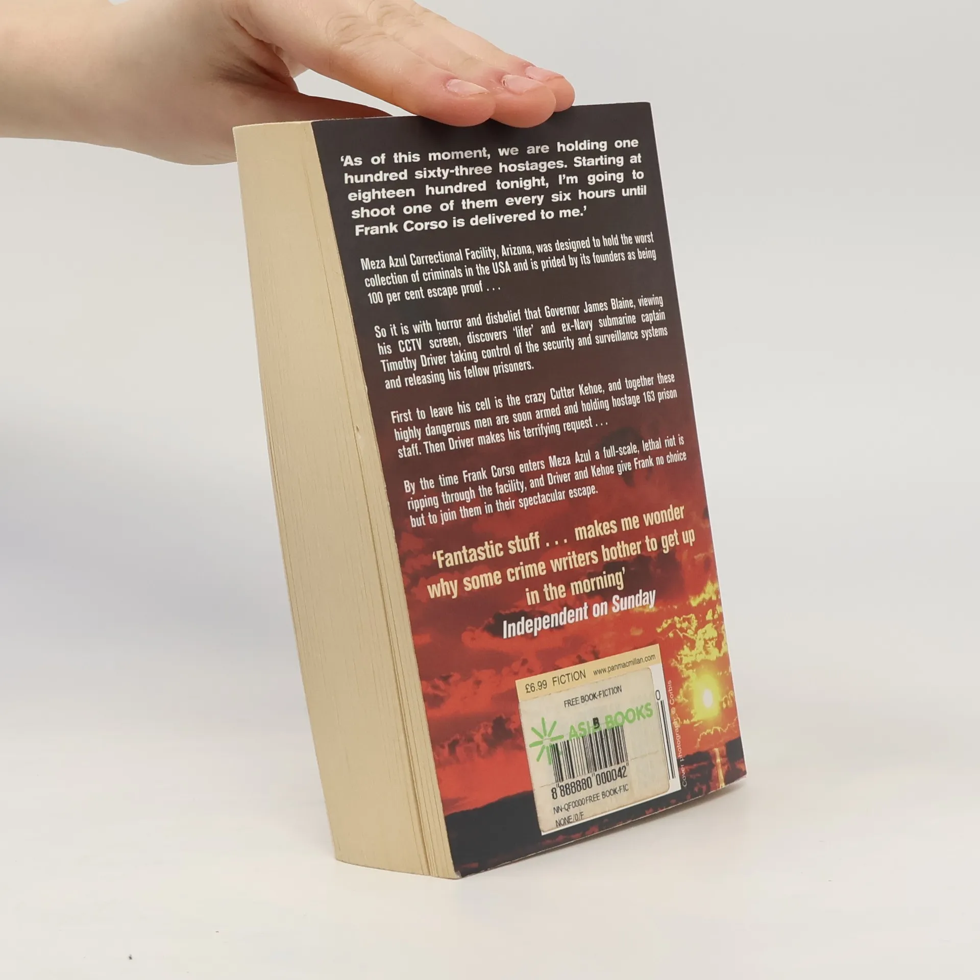Meza Azul Correctional Facility, Arizona is designed to hold the worst collection of criminals in the USA. It is also prided by its founders for being one hundred percent escape proof. So it is with mixed horror and disbelief that Governor James Blaine discovers 'lifer' and ex-Navy submarine captain Timothy Driver has somehow managed to take control of the security and surveillance systems and begin releasing his fellow prisoners. First to leave his cell is the crazy Cutter Kehoe, and together these highly dangerous men are soon armed and holding hostage 163 prison staff. Then Driver makes a single demand - that Frank Corso is delivered to him in person, or he and Kehoe will shoot one prison guard every six hours. By the time Frank Corso enters Meza Azul the riot has escalated out of control, and Driver and Kehoe give Frank no choice but to join them in their spectacular escape . . .
