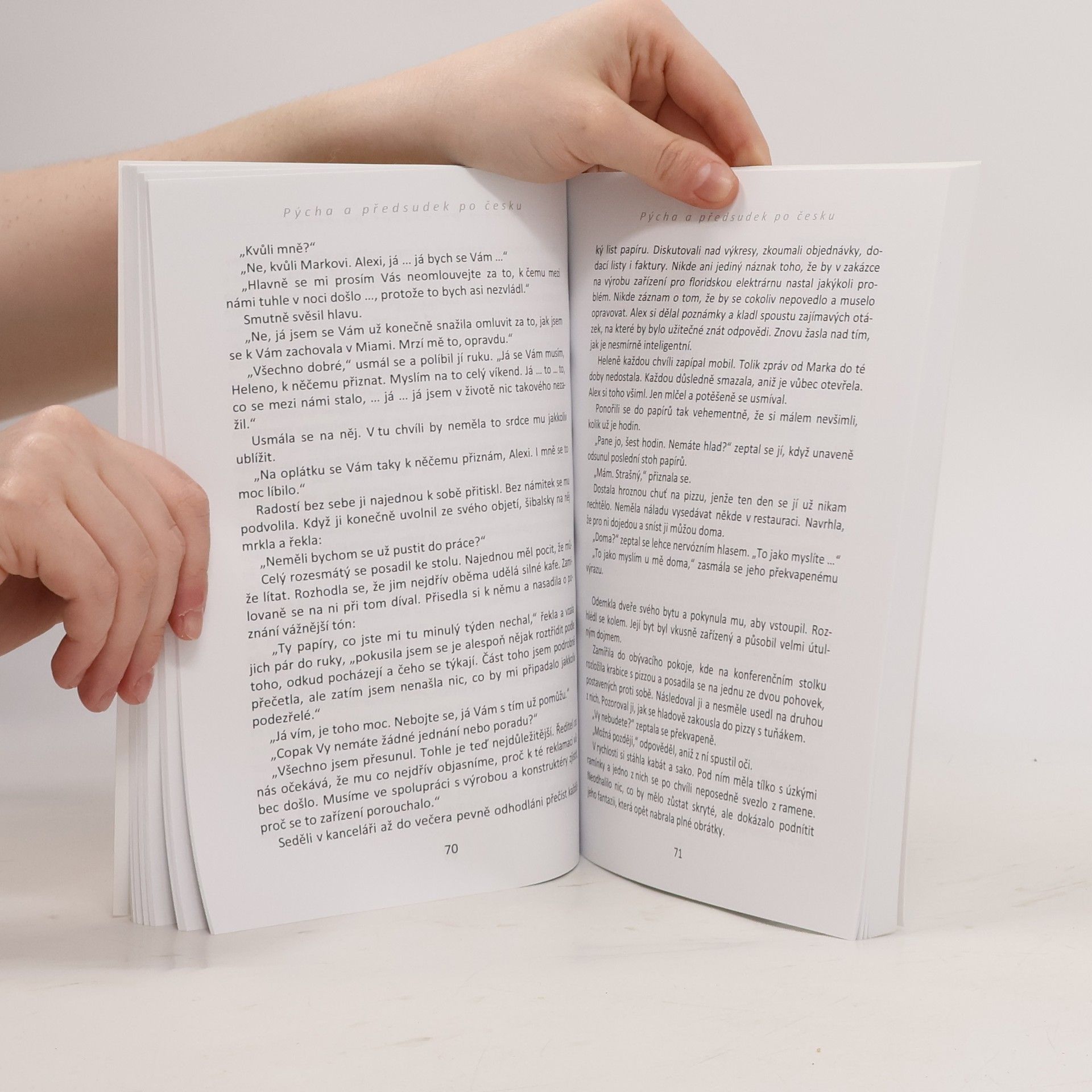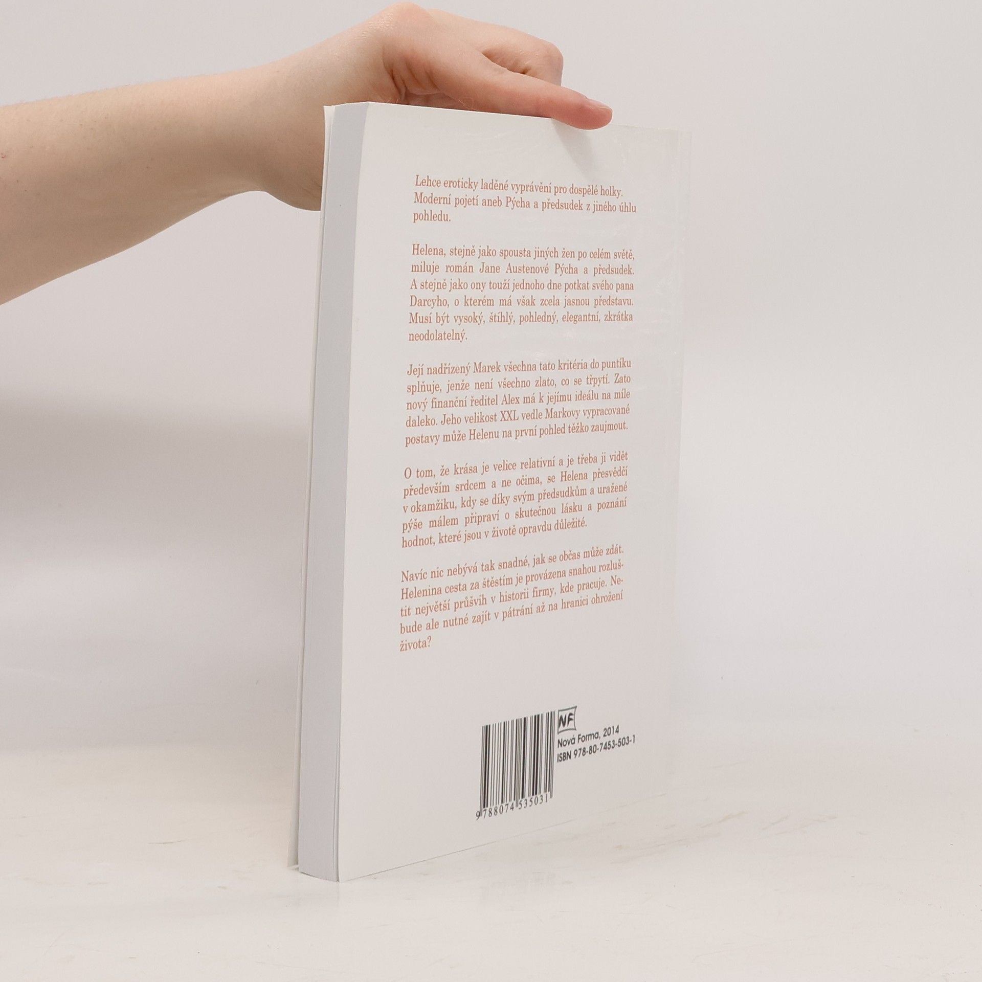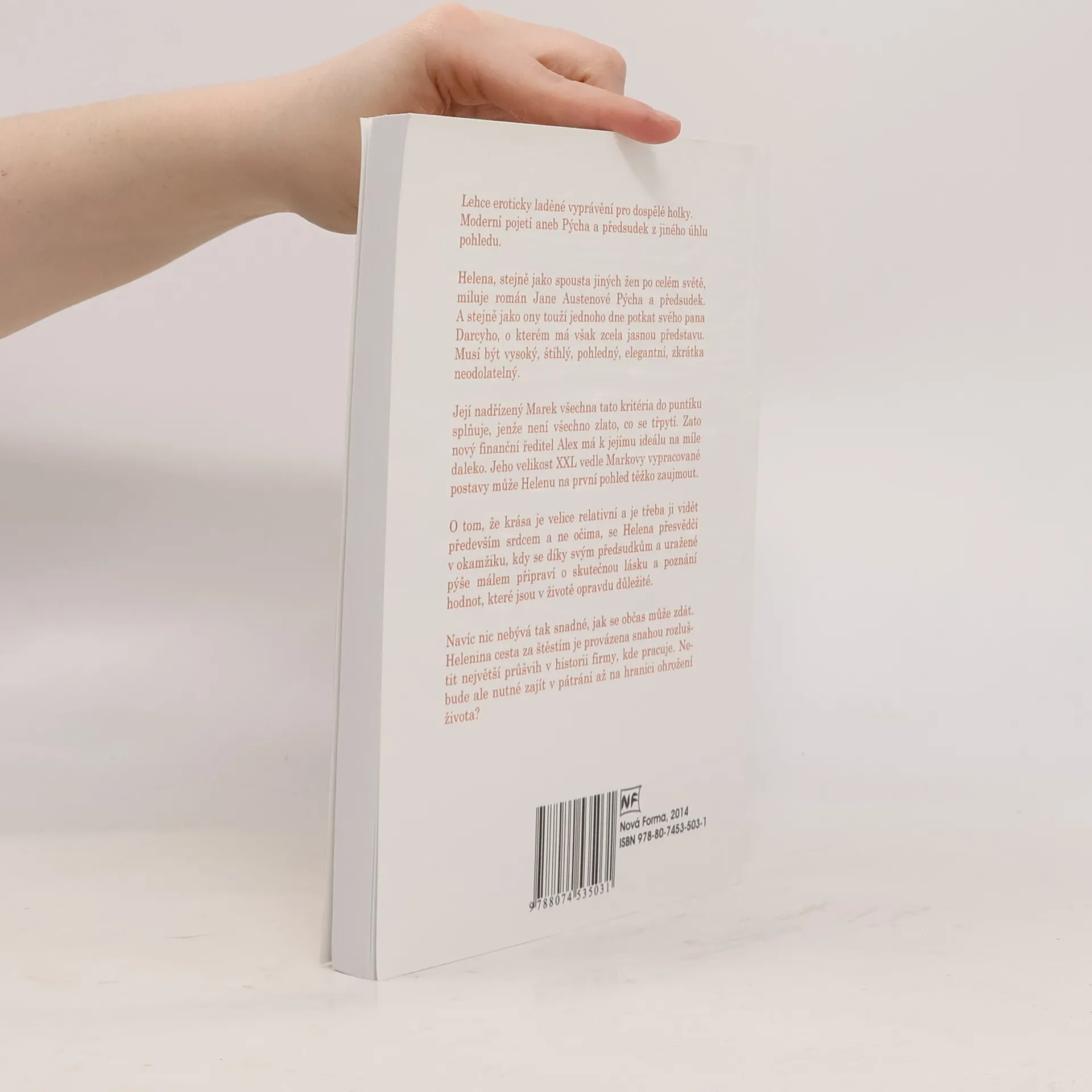 Moderní pojetí aneb Pýcha a předsudek z jiného úhlu pohledu. Helena, stejně jako spousta jiných žen po celém světě, miluje román Jane Austenové Pýcha a předsudek. A stejně jako ony touží jednoho dne potkat svého pana Darcyho, o kterém má však zcela jasnou představu. Musí být vysoký, štíhlý, pohledný, elegantní, zkrátka neodolatelný. Její nadřízený Marek všechna tato kritéria do puntíku splňuje, jenže není všechno zlato, co se třpytí. Zato nový finanční ředitel Alex má k jejímu ideálu na míle daleko. Jeho velikost XXL vedle Markovy vypracované postavy může Helenu na první pohled těžko zaujmout. O tom, že krása je velice relativní a je třeba ji vidět především srdcem a ne očima, se Helena přesvědčí v okamžiku, kdy se díky svým předsudkům a uražené pýše málem připraví o skutečnou lásku a poznání hodnot, které jsou v životě opravdu důležité. Navíc nic nebývá tak snadné, jak se občas může zdát. Helenina cesta za štěstím je provázena snahou rozluštit největší průšvih v historii firmy, kde pracuje. Nebude ale nutné zajít v pátrání až na hranici ohrožení života?
