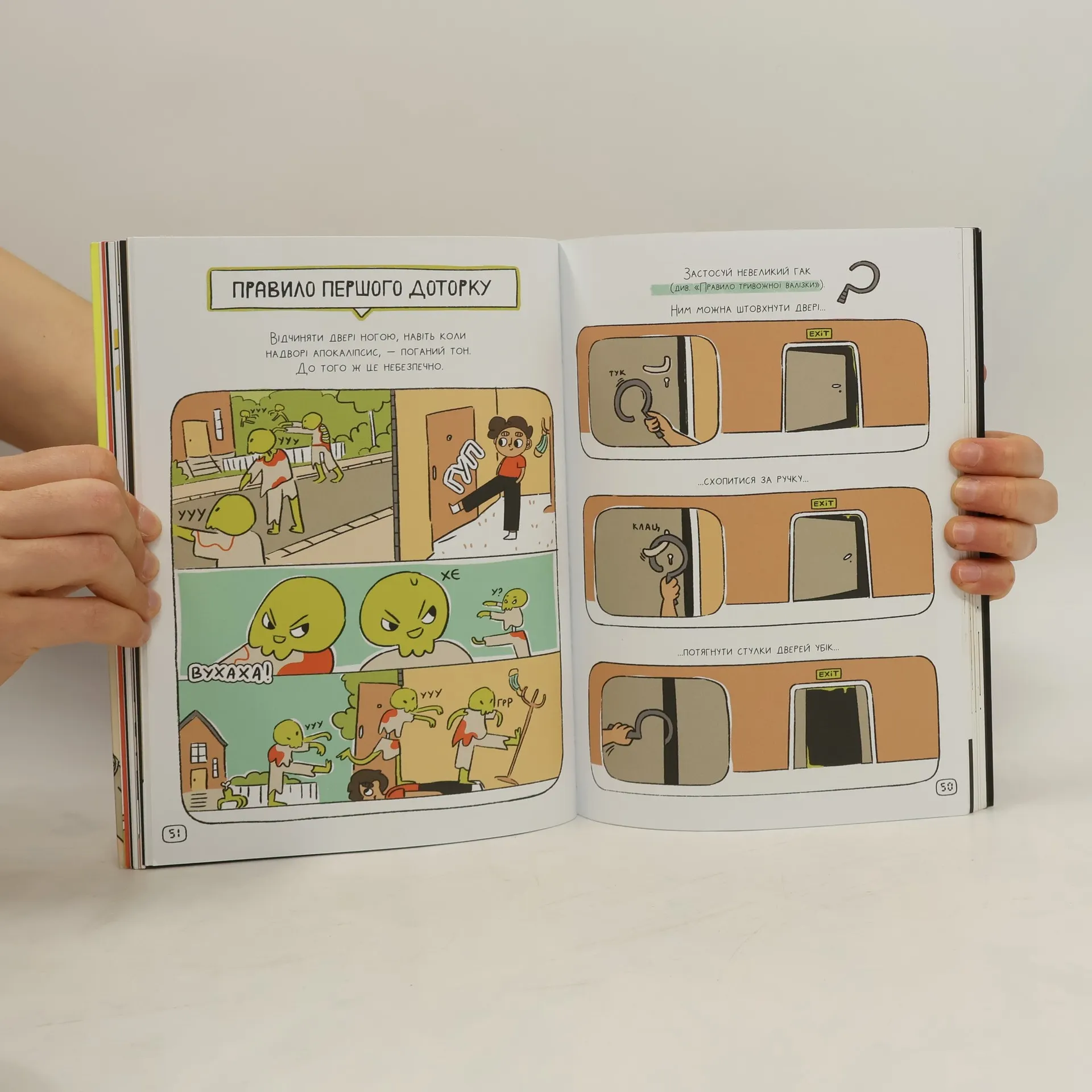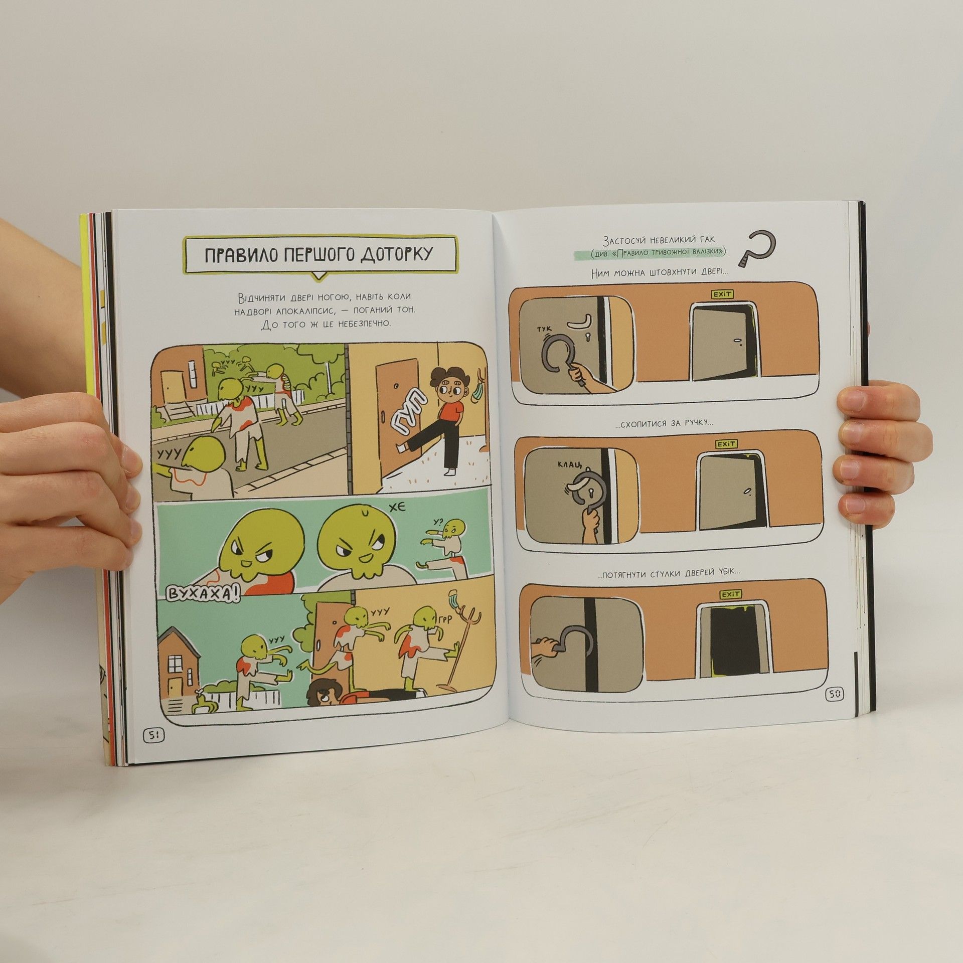 How to survive in an emergency in the form of a comic book. The book presents a countdown in reverse, like the one before an explosion.