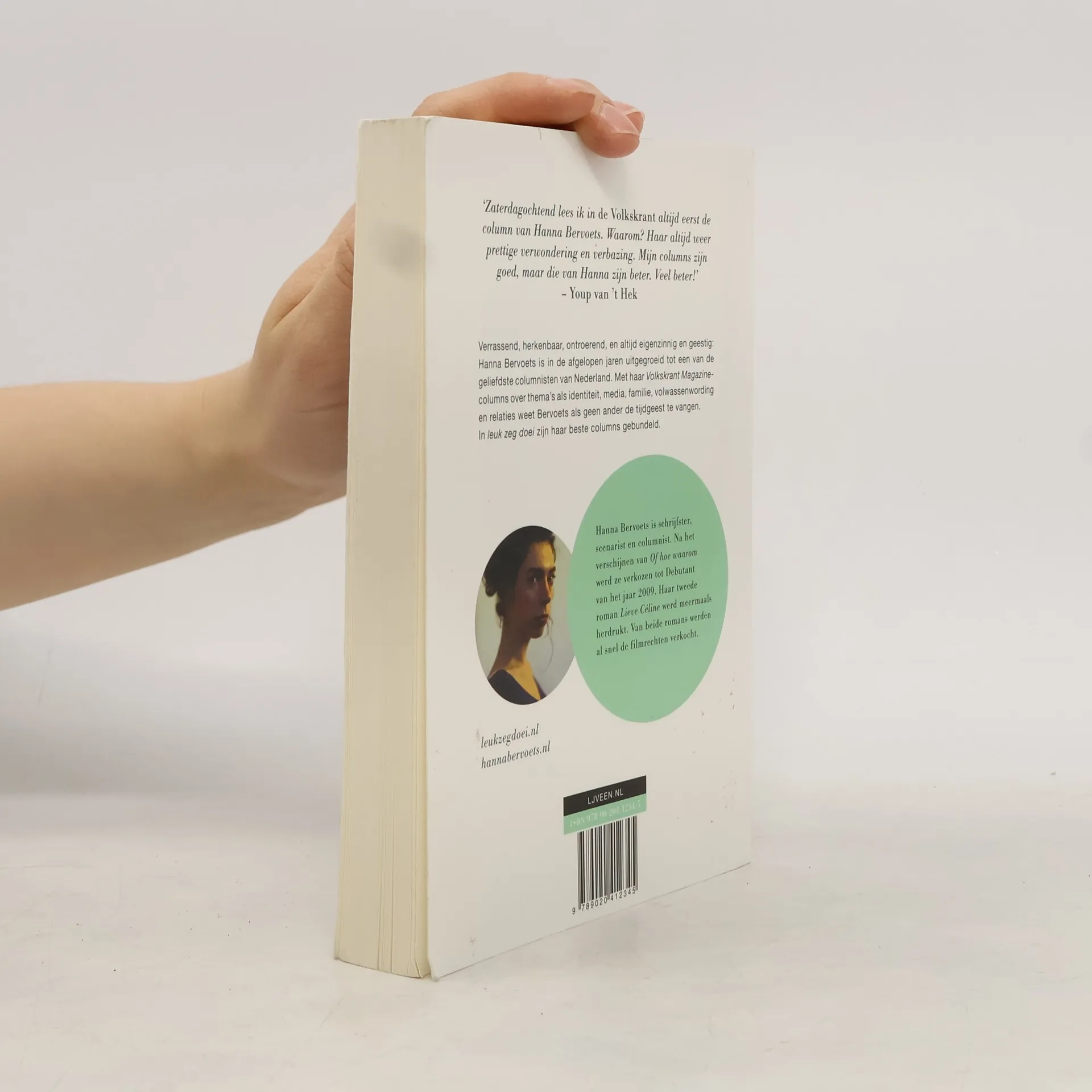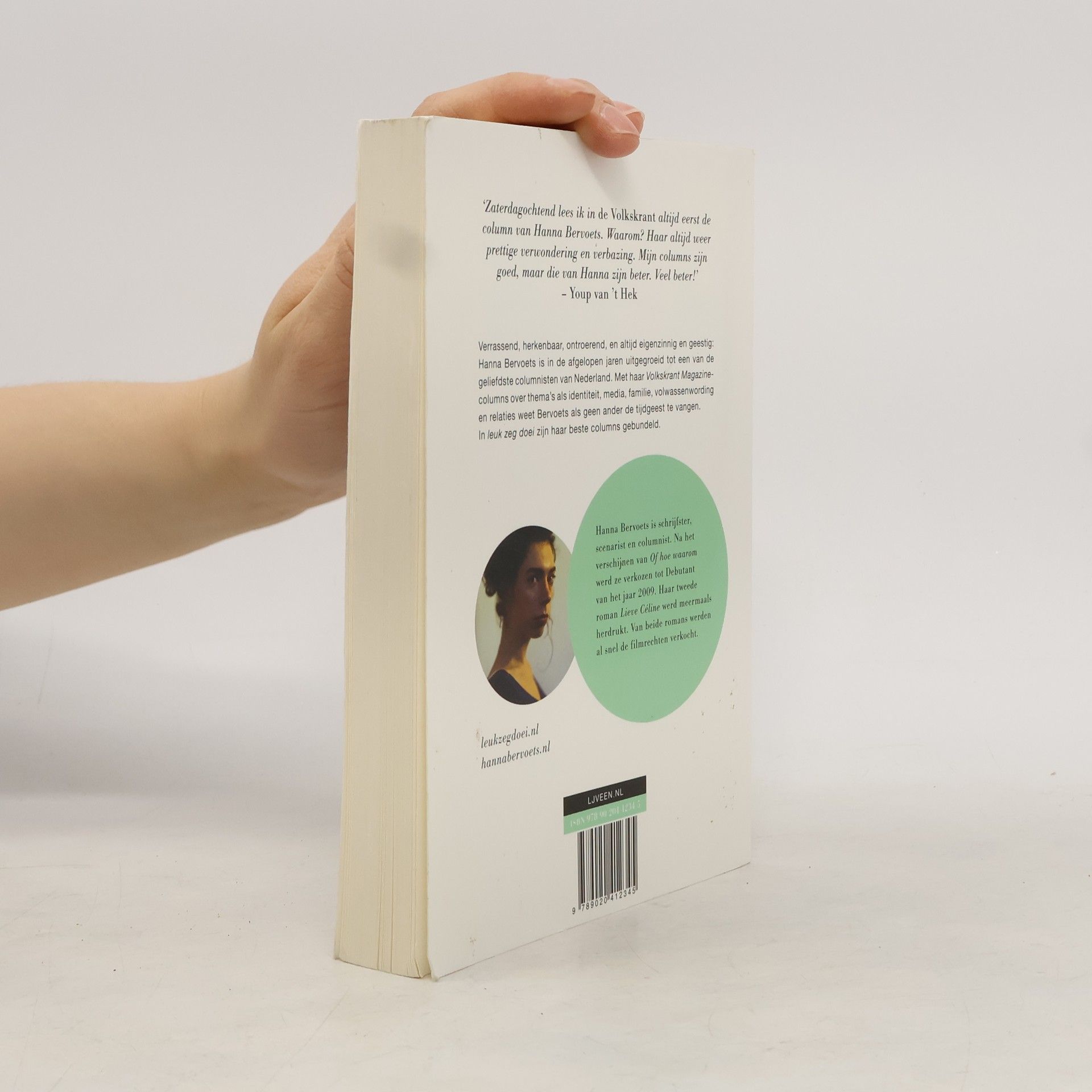 Mijn columns zijn goed, maar die van Hanna Bervoets zijn beter. Veel beter!' – Youp van 't Hek Hanna Bervoets is in de afgelopen jaren uitgegroeid tot een van de geliefdste columnisten van Nederland. Dankzij haar verrassende, herkenbare, ontroerende, en altijd eigenzinnige en geestige Volkskrant Magazine-columns over thema's als identiteit, media, familie, volwassenwording en relaties heeft ze honderdduizenden harten gestolen. In Leuk zeg doei zijn haar columns gebundeld.