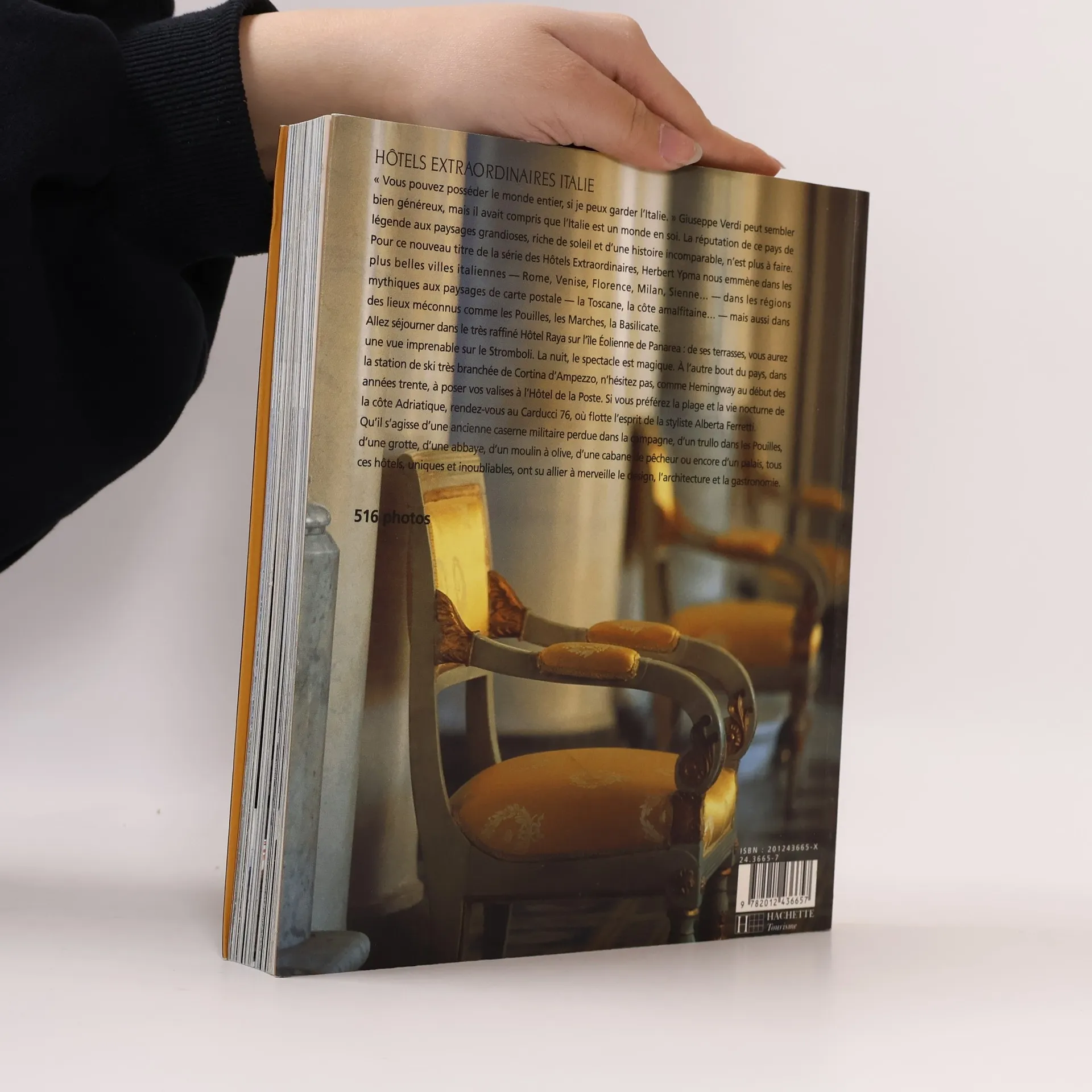 "Vous pouvez posséder le monde entier, si je peux garder l'Italie." Cette citation de Giuseppe Verdi souligne l'importance de l'Italie, un pays aux paysages grandioses, riche de soleil et d'une histoire incomparable. Dans ce nouvel opus de la série des Hôtels Extraordinaires, Herbert Ypma nous invite à explorer les plus belles villes italiennes telles que Rome, Venise, Florence, Milan et Sienne, ainsi que des régions mythiques comme la Toscane et la côte amalfitaine. Des destinations moins connues comme les Pouilles, les Marches et la Basilicate sont également mises en avant. Séjournez au raffiné Hôtel Raya sur l'île Eolienne de Panarea, où les terrasses offrent une vue imprenable sur le Stromboli, particulièrement magique la nuit. À l'opposé, dans la station de ski tendance de Cortina d'Ampezzo, l'Hôtel de la Poste vous attend, tout comme Hemingway dans les années 30. Pour ceux qui préfèrent la plage et la vie nocturne de la côte Adriatique, le Carducci 76, imprégné de l'esprit de la styliste Alberta Ferretti, est l'endroit idéal. Que ce soit dans une ancienne caserne militaire, un trullo, une grotte, une abbaye, un moulin à olives, une cabane de pêcheur ou un palais, ces hôtels uniques allient design, architecture et gastronomie, offrant des expériences inoubliables. 516 photos.