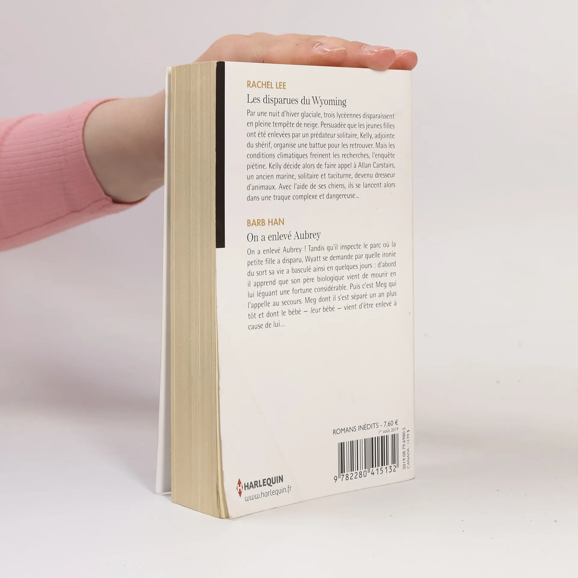 Les disparues du Wyoming, Rachel Lee. Par une nuit d'hiver glaciale, trois lycéennes disparaissent en pleine tempête de neige. Persuadée que les jeunes filles ont été enlevées par un prédateur solitaire, Kelly, adjointe du shérif, organise une battue pour les retrouver. Mais les conditions climatiques freinent les recherches, l'enquête piétine. Kelly décide alors de faire appel à Allan Carstairs, un ancien marine, solitaire et taciturne, devenu dresseur d'animaux. Avec l'aide de ses chiens, ils se lancent alors dans une traque complexe et dangereuse... On a enlevé Aubrey, Barb Han. On a enlevé Aubrey ! Tandis qu'il inspecte le parc où la petite fille a disparu, Wyatt se demande par quelle ironie du sort sa vie a basculé ainsi en quelques jours : d'abord il apprend que son père biologique vient de mourir en lui léguant une fortune considérable. Puis c'est Meg qui l'appelle au secours. Meg dont il s'est séparé un an plus tôt et dont le bébé leur bébé vient d'être enlevé à cause de lui...