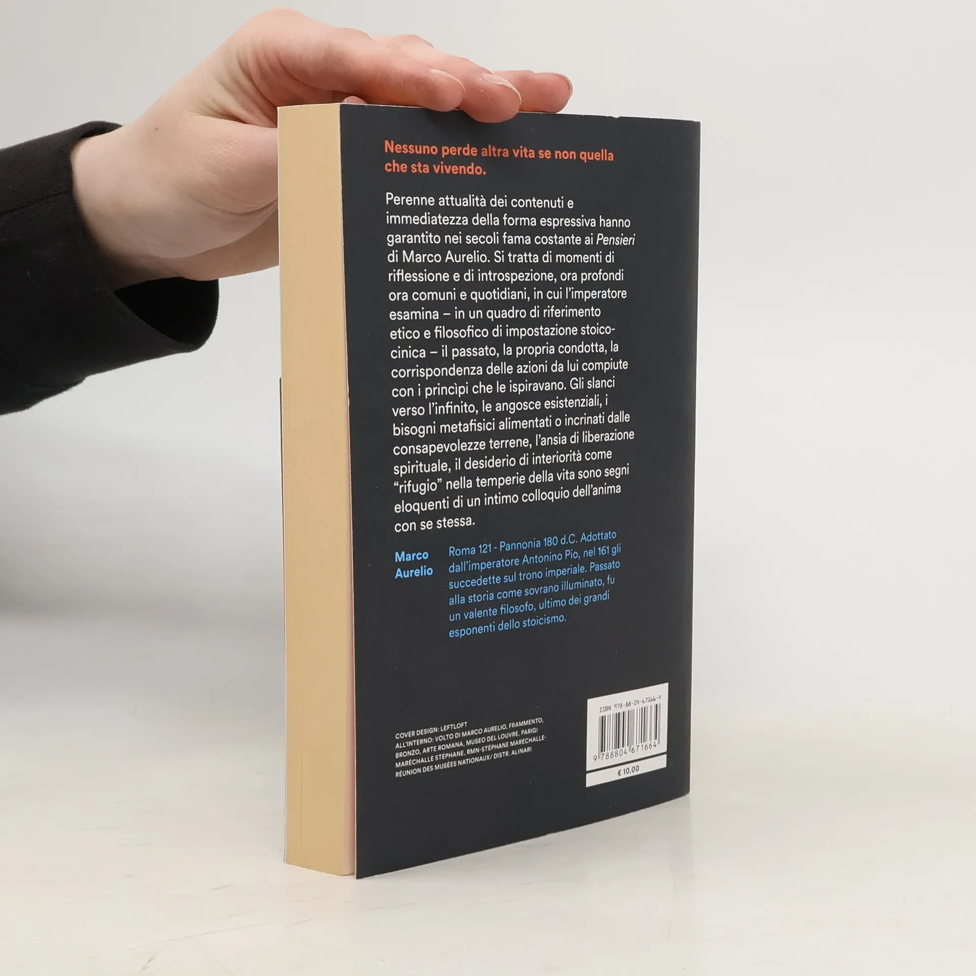 I Pensieri di Marco Aurelio, noti anche come Ricordi, sono un'opera fondamentale per chi desidera avvicinarsi alla saggezza antica, che affronta il conflitto tra l'essere e il voler essere, i principi filosofici e gli impulsi naturali, nonché la teoria e la pratica. L'imperatore, pur cercando di seguire la logica stoica, vive un tormento interiore che rende i suoi pensieri ambivalenti. Le sue riflessioni presentano spesso due facce, come una medaglia: crede nella provvidenza, ma non esclude il caos; confida negli dèi, ma si interroga sul perché i migliori non possano sopravvivere dopo la morte. I suoi dubbi emergono in contrasto con le certezze, ma due concetti chiave risaltano: «La vita è opinione», un gioco dialettico che il saggio sa decifrare, e «L’uomo non è responsabile delle sue azioni», poiché tutto avviene in armonia con le leggi della natura. Questa affermazione, pur contraddittoria, rappresenta la sintesi dell'opera. L'imperatore esprime la sua serenità interiore, affermando che nulla può turbare la sua anima, invitando a riflettere su ciò che realmente ha valore.