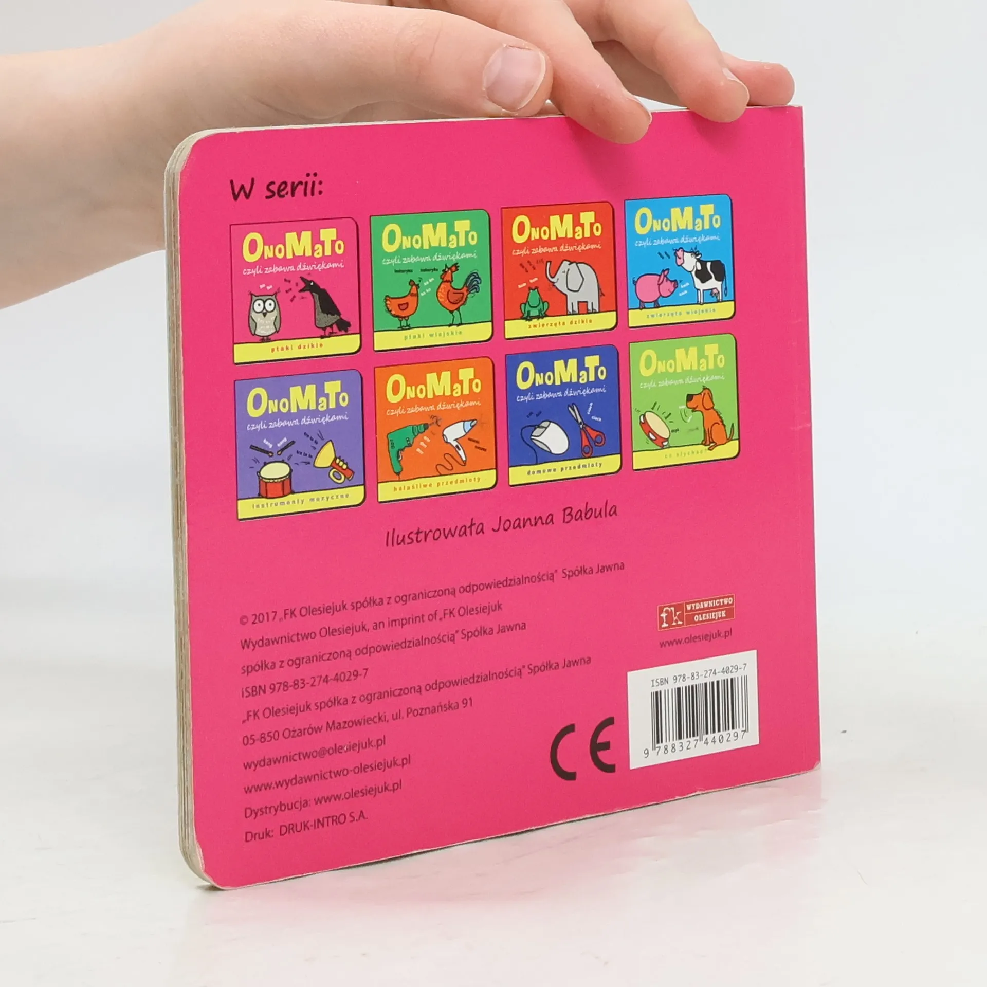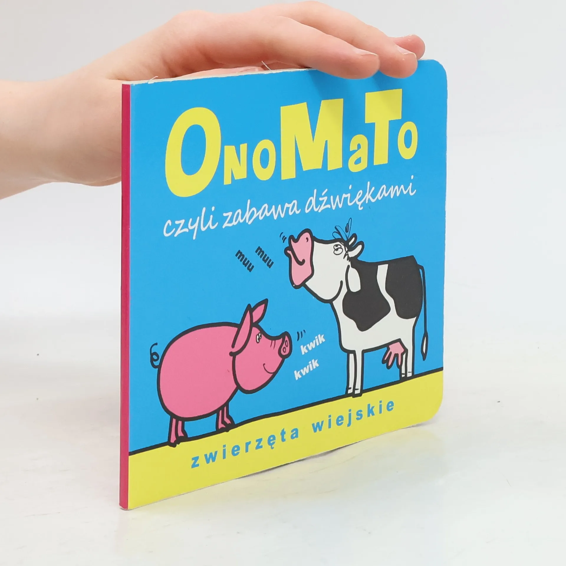 Maluchom ciekawym świata proponujemy serię kartonowych książeczek pt. OnoMaTo. Każda z nich mówi o dźwiękach. Zwierzęta wiejskie nauczą maluchy rozpoznawać głosy świnki, krowy czy konia. Tytuły w serii: Co słychać? Instrumenty muzyczne, Zwierzęta dzikie, Zwierzęta wiejskie, Domowe przedmioty, Ptaki wiejskie, Hałaśliwe przedmioty, Ptaki dzikie.